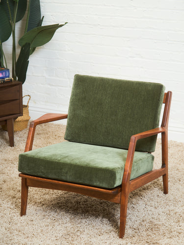 • Ziggy Walnut Lounge Chair in Orange Corduroy