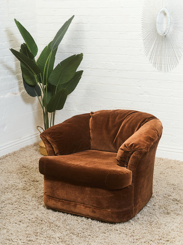 Plum Velvet Art Deco Channel-Back Lounge Chair