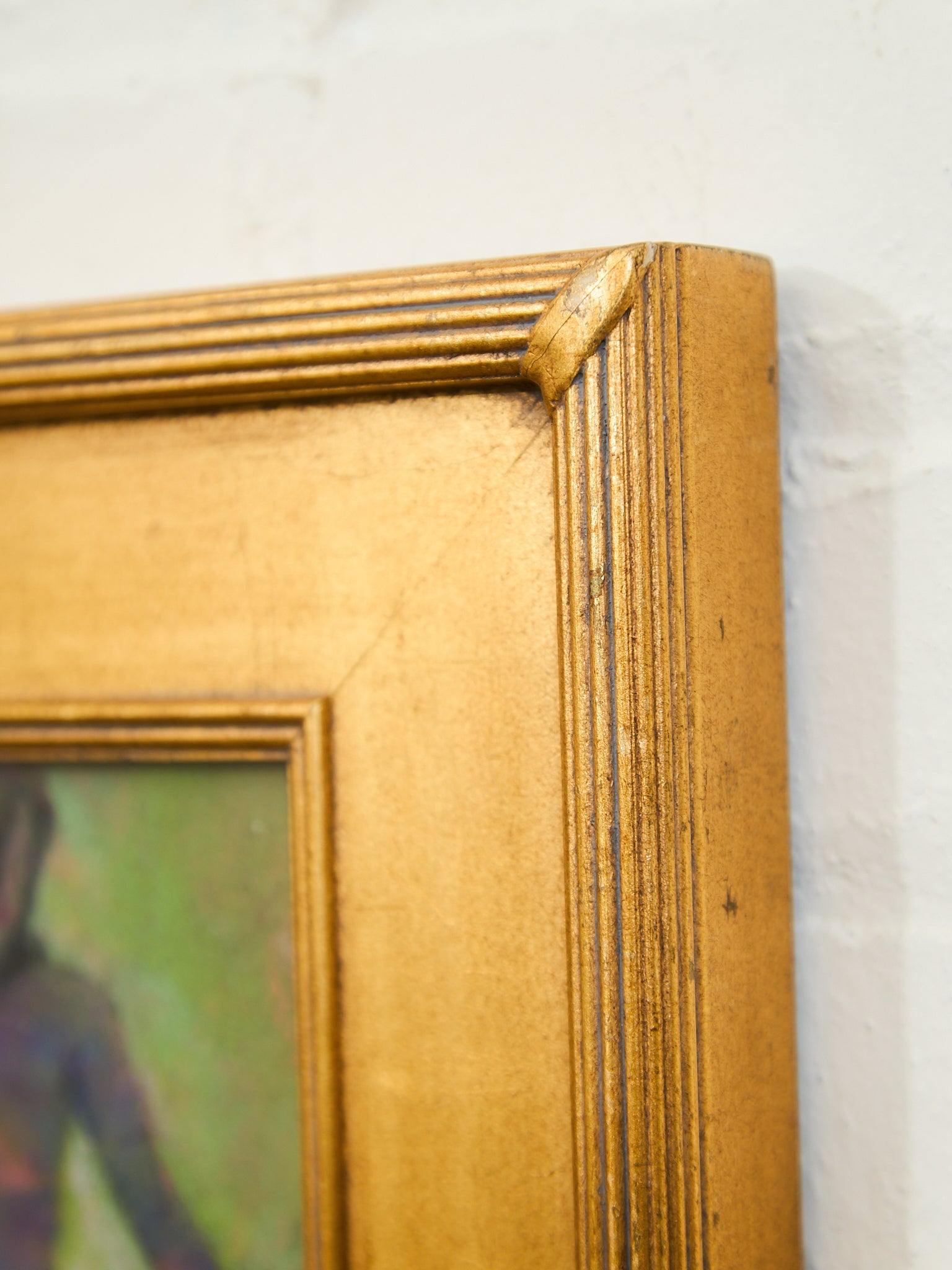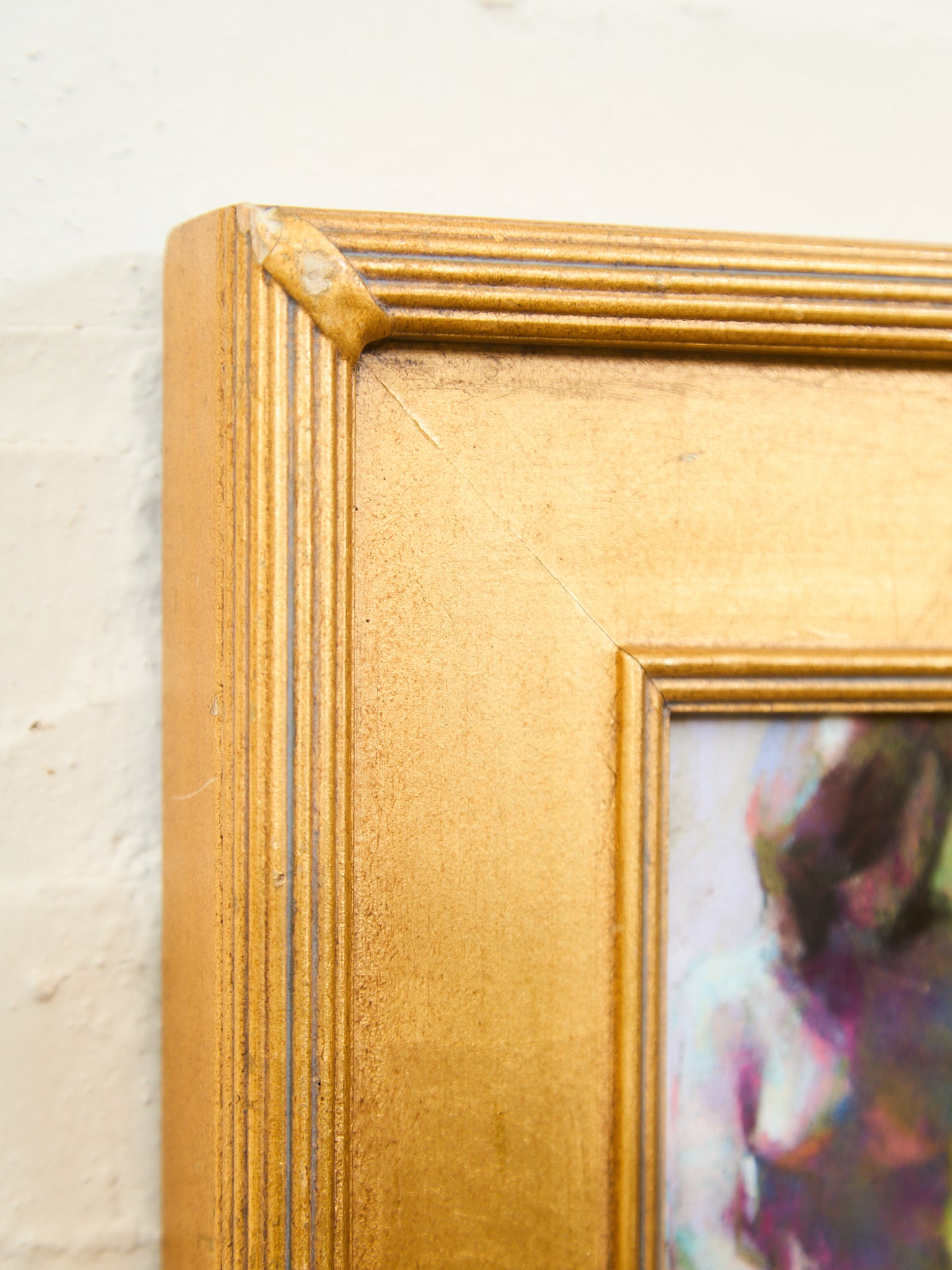 An expressive small-scale figurative work capturing the quiet grace of the human form through bold color and fluid movement. Rendered in rich pastel tones of pink, lilac, and olive green, the artist’s loose brushwork and softened contours evoke emotion and intimacy. Signed by the artist, this piece balances abstraction with realism—perfect for collectors who appreciate modern figurative art with a painterly, atmospheric touch.