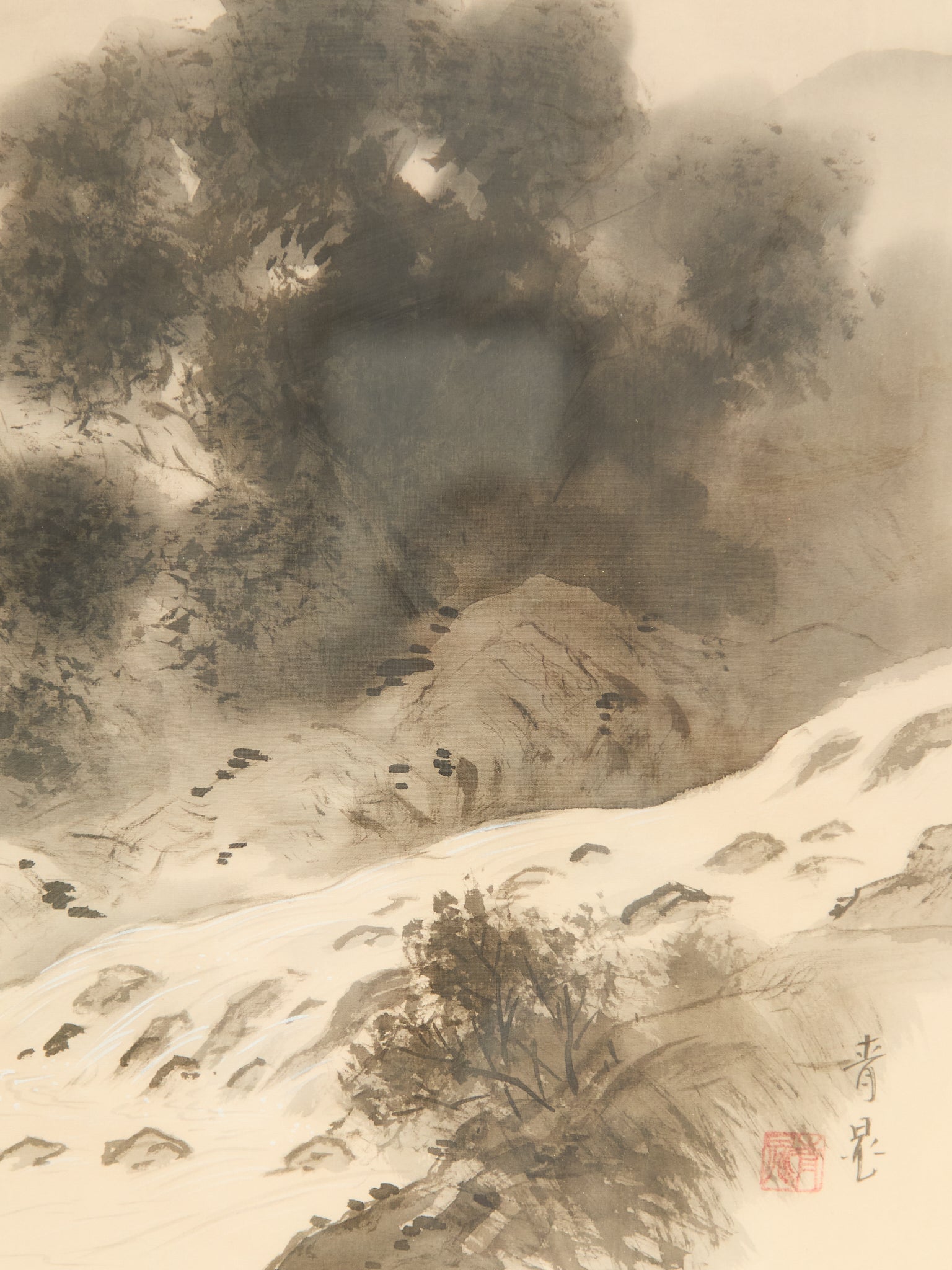 Chinese Mid Century Figures on a Mountain Path Framed Signed