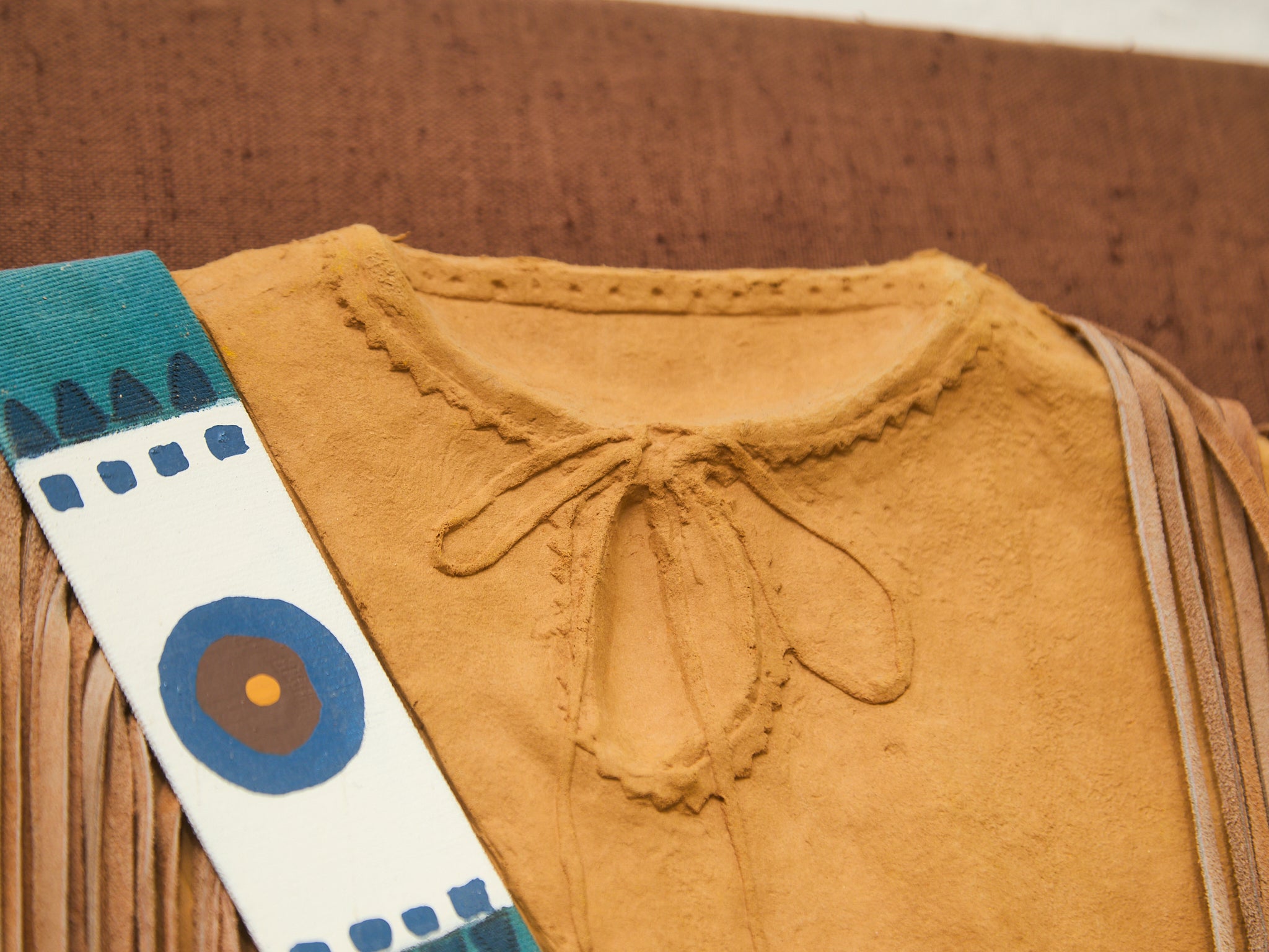 Fringed Buckskin Shirt with Beaded Sash Wall Display