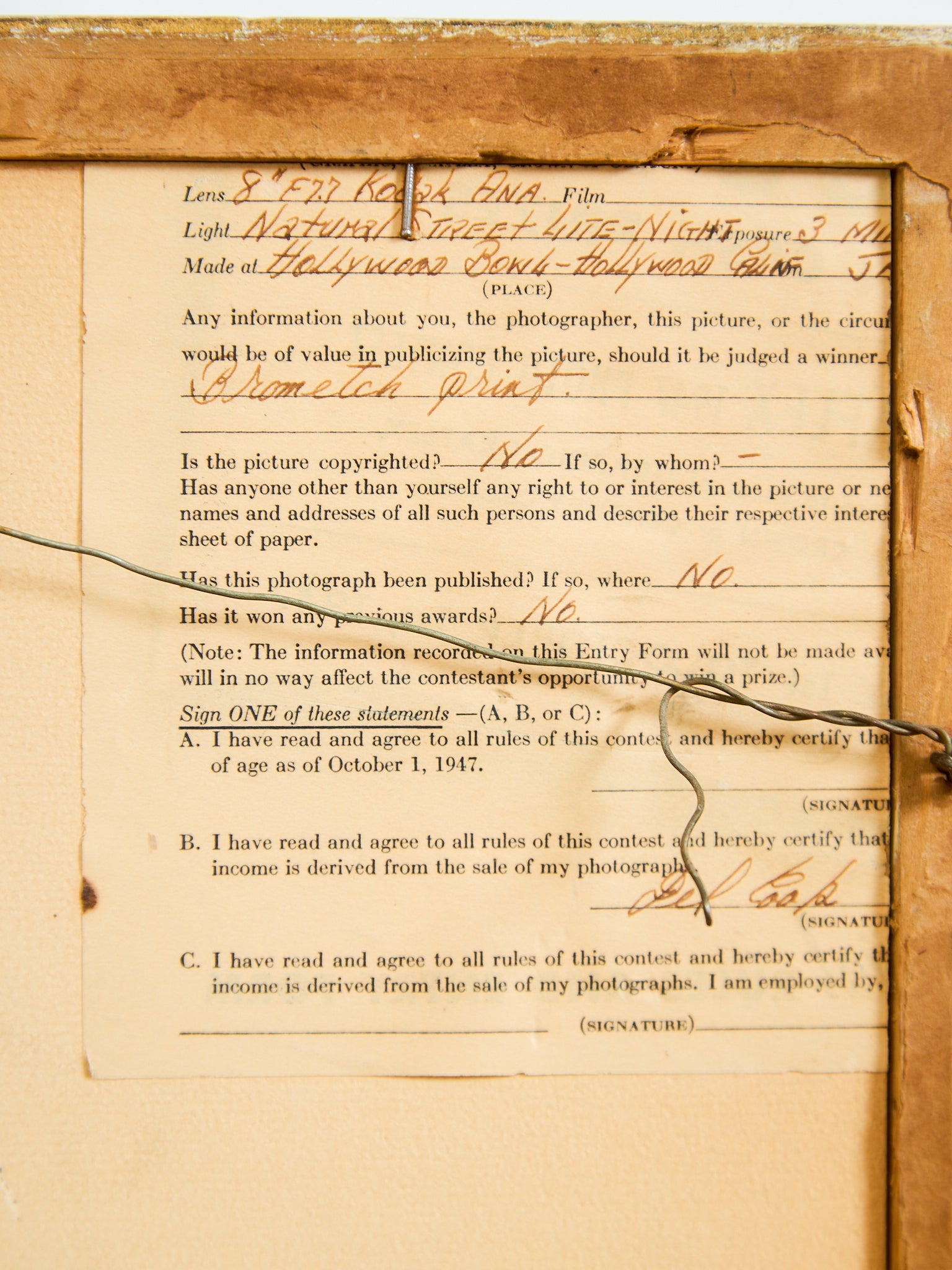 Original Photograph of the statue Hollywood Bowl in California 1947