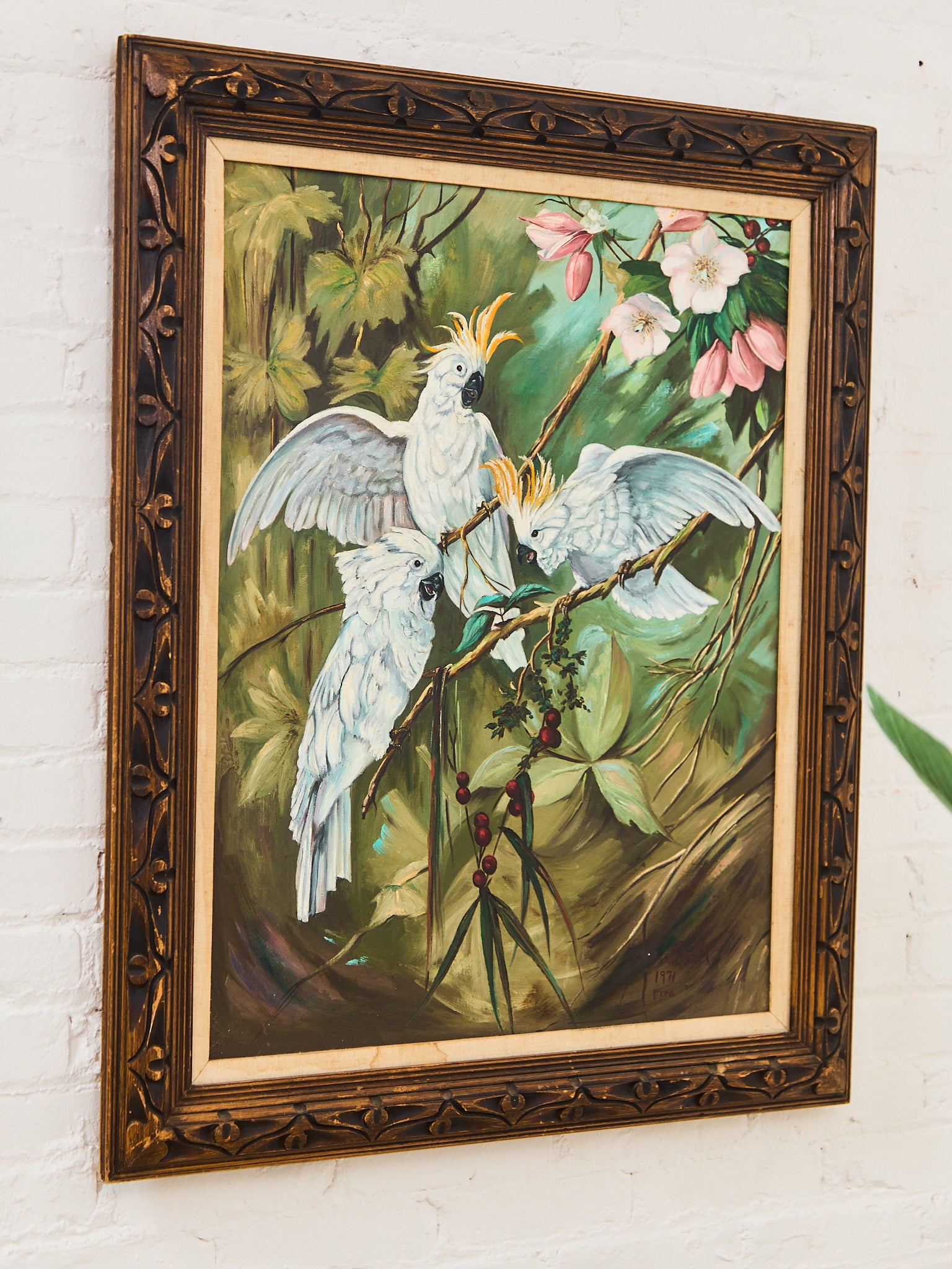 Vintage Tropical Bird Wall Art White Cockatoos Signed 1977