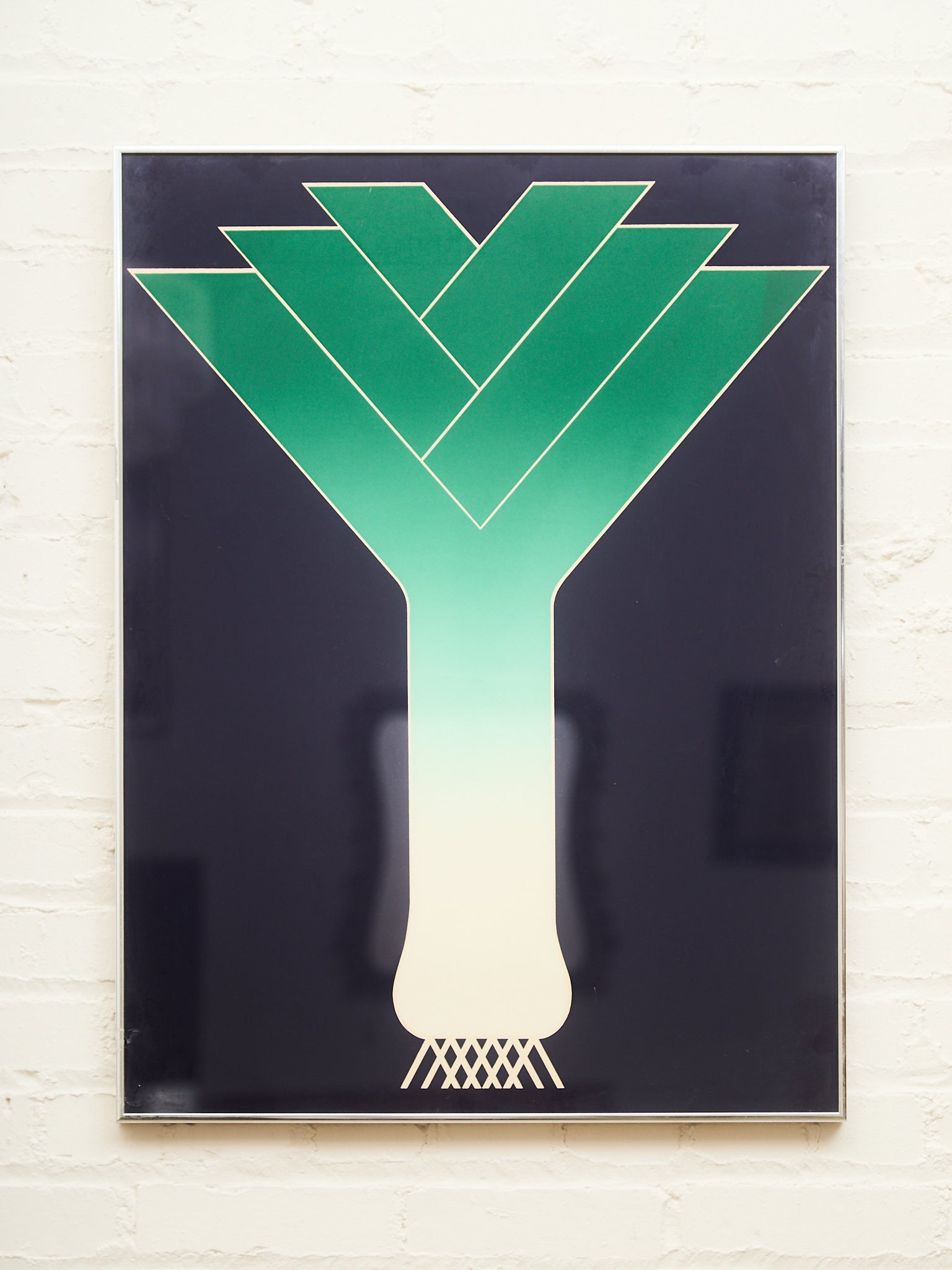 • Load image into Gallery viewer, Will Wright (20th/21st c). Serigraph print on paper titled "Why" depicting a Y-shape in green against a blue background, 1976
