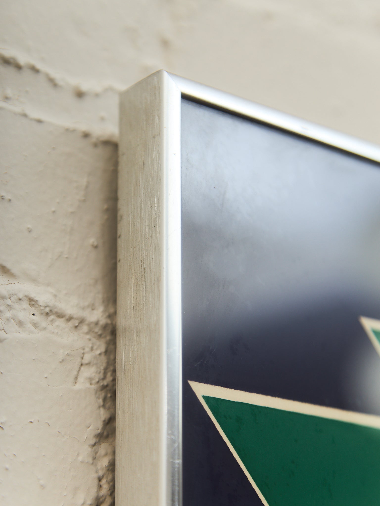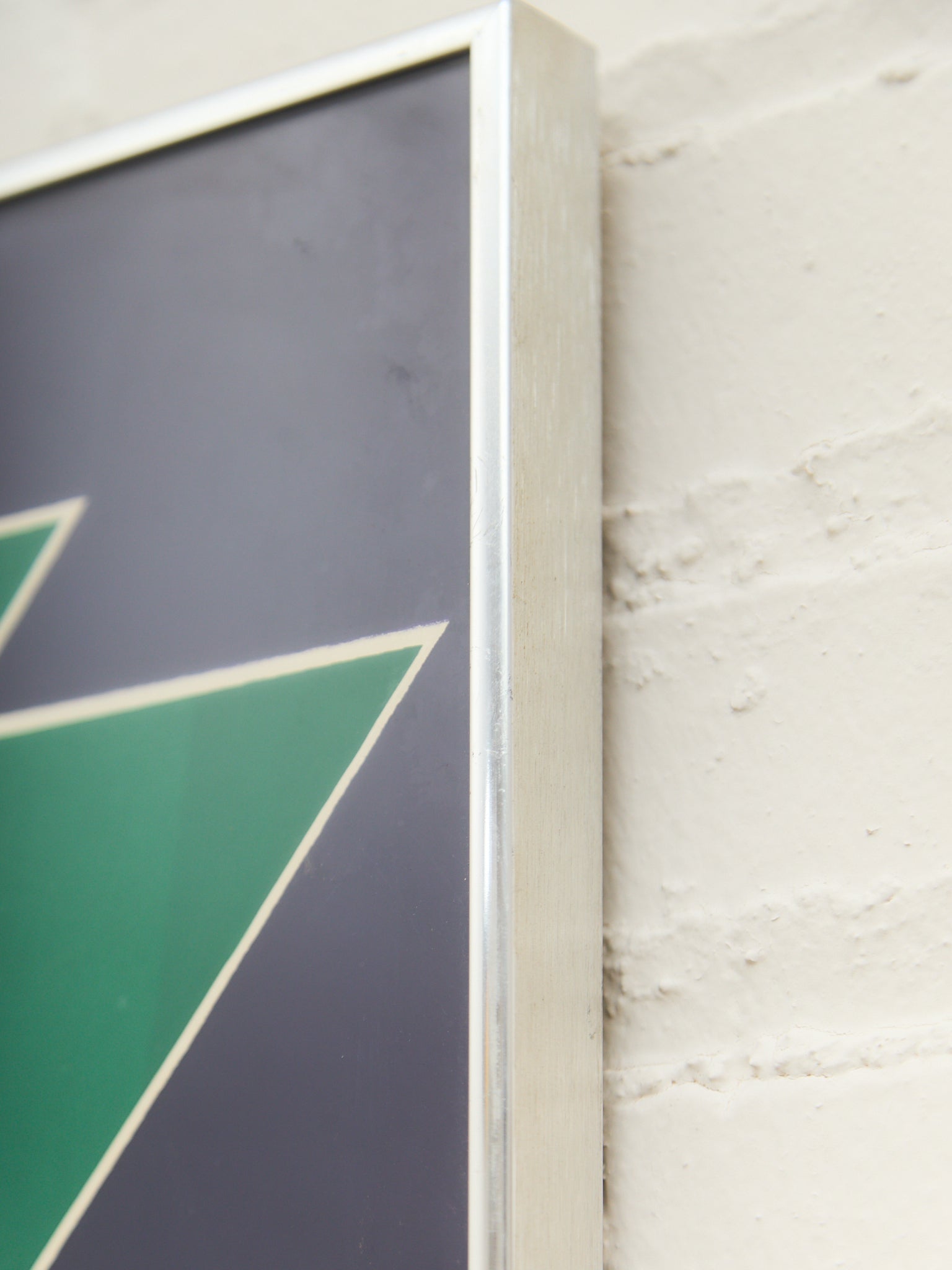 Will Wright (20th/21st c). Serigraph print on paper titled "Why" depicting a Y-shape in green against a blue background, 1976