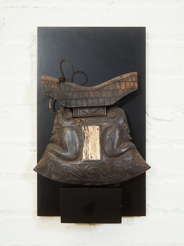 VINTAGE TORAJA SULAWESI INDONESIA CARVED WOOD & BUFFALO HORN BETEL NUT BOX