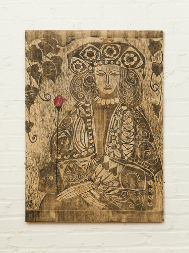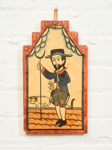 Vintage Man Hand Etched Wooden Pyrography Folk Art Plaque