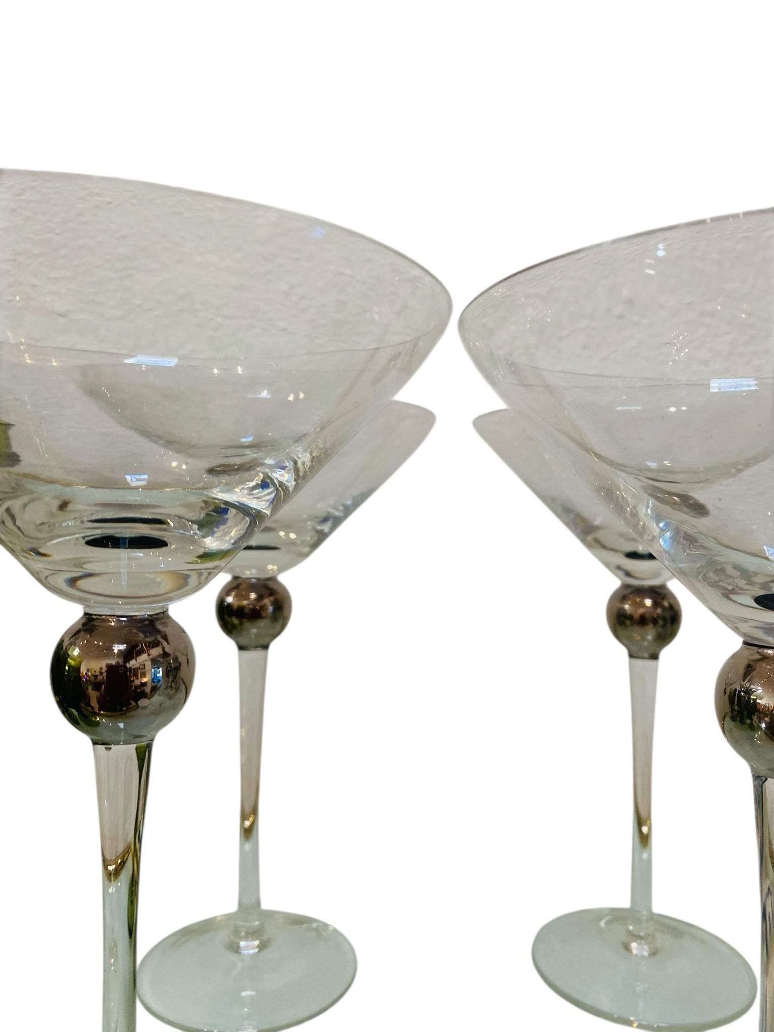 • Load image into Gallery viewer, Classic Long Stem Silver Ball Martini Set of Four