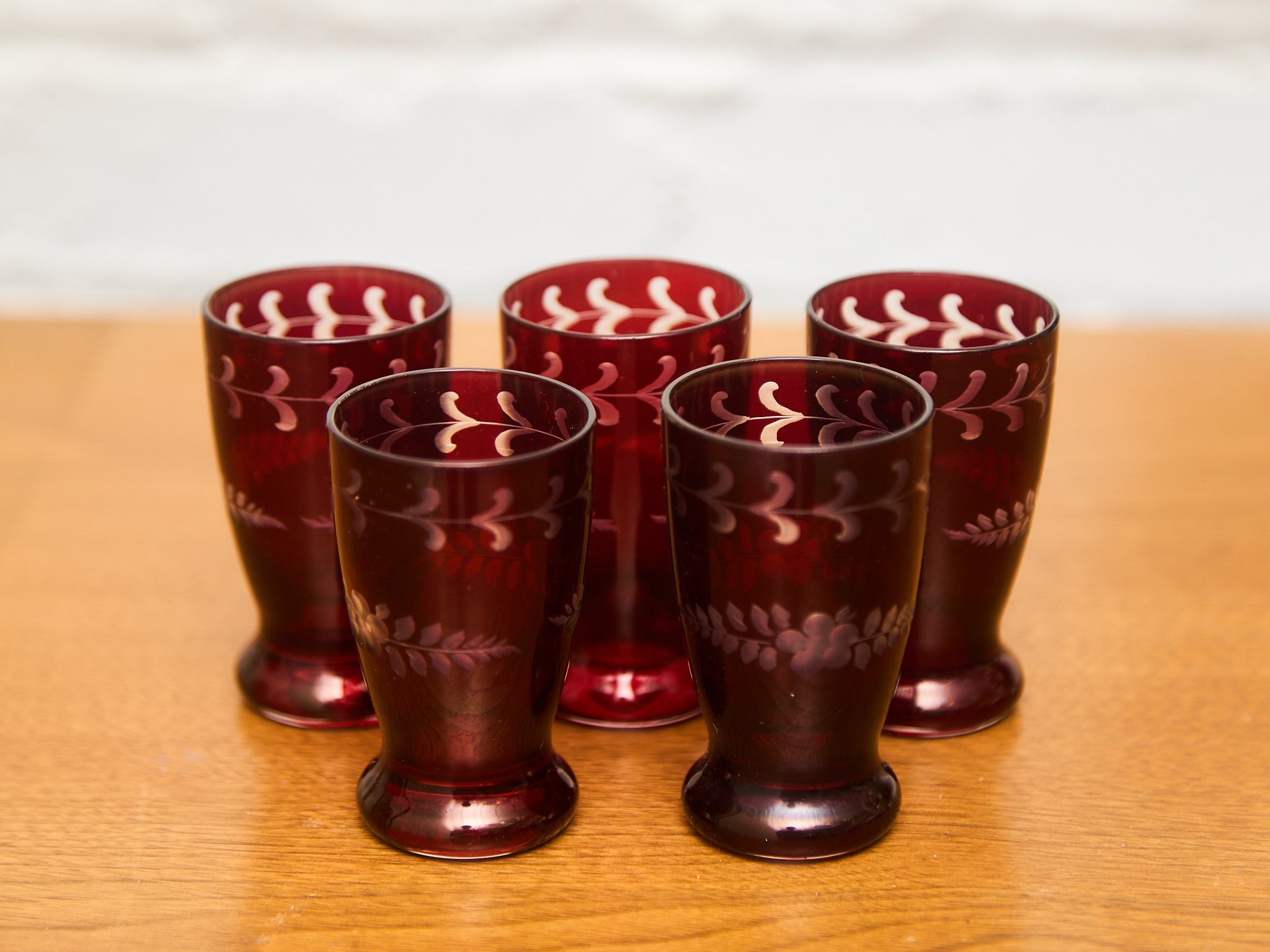 Ruby Red Bohemian Glass Liqueur Glasses Set of 5