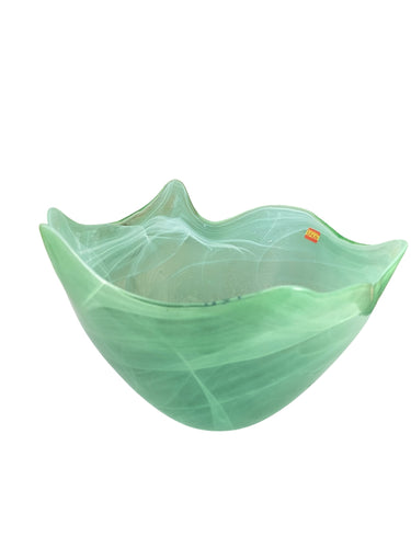Vintage Fratelli Toso Murano Glass Sculpture Bowl Opaline Green