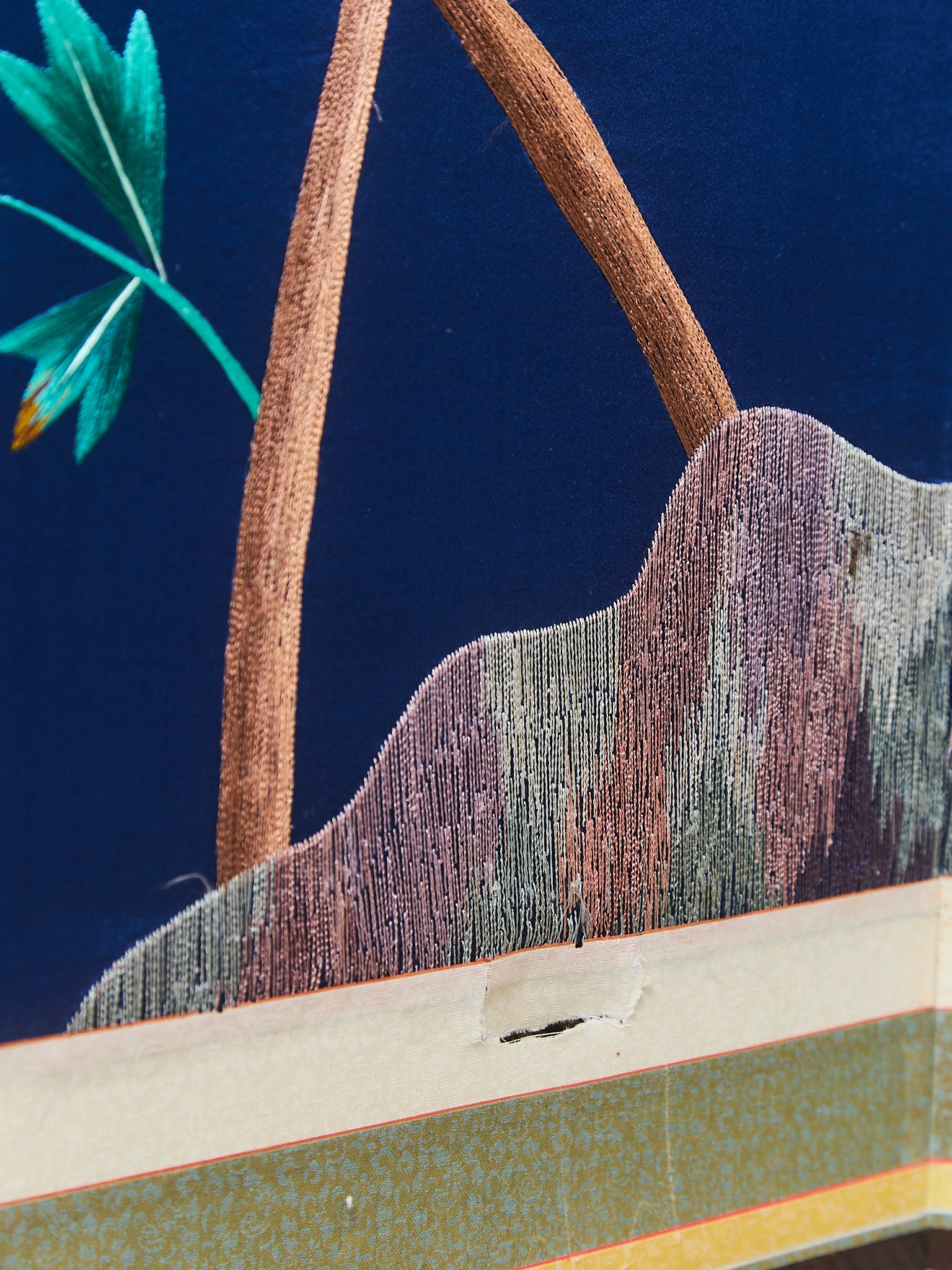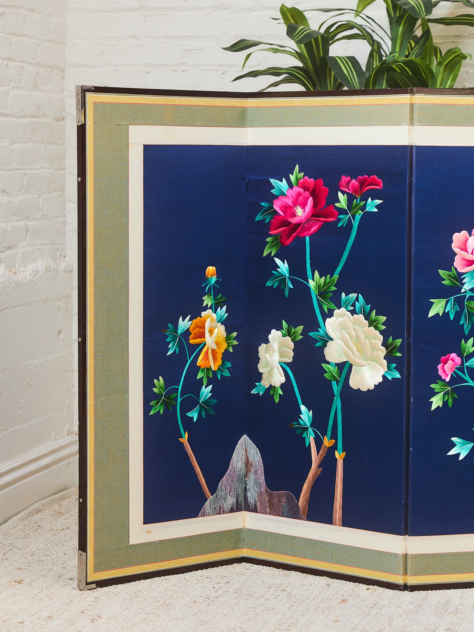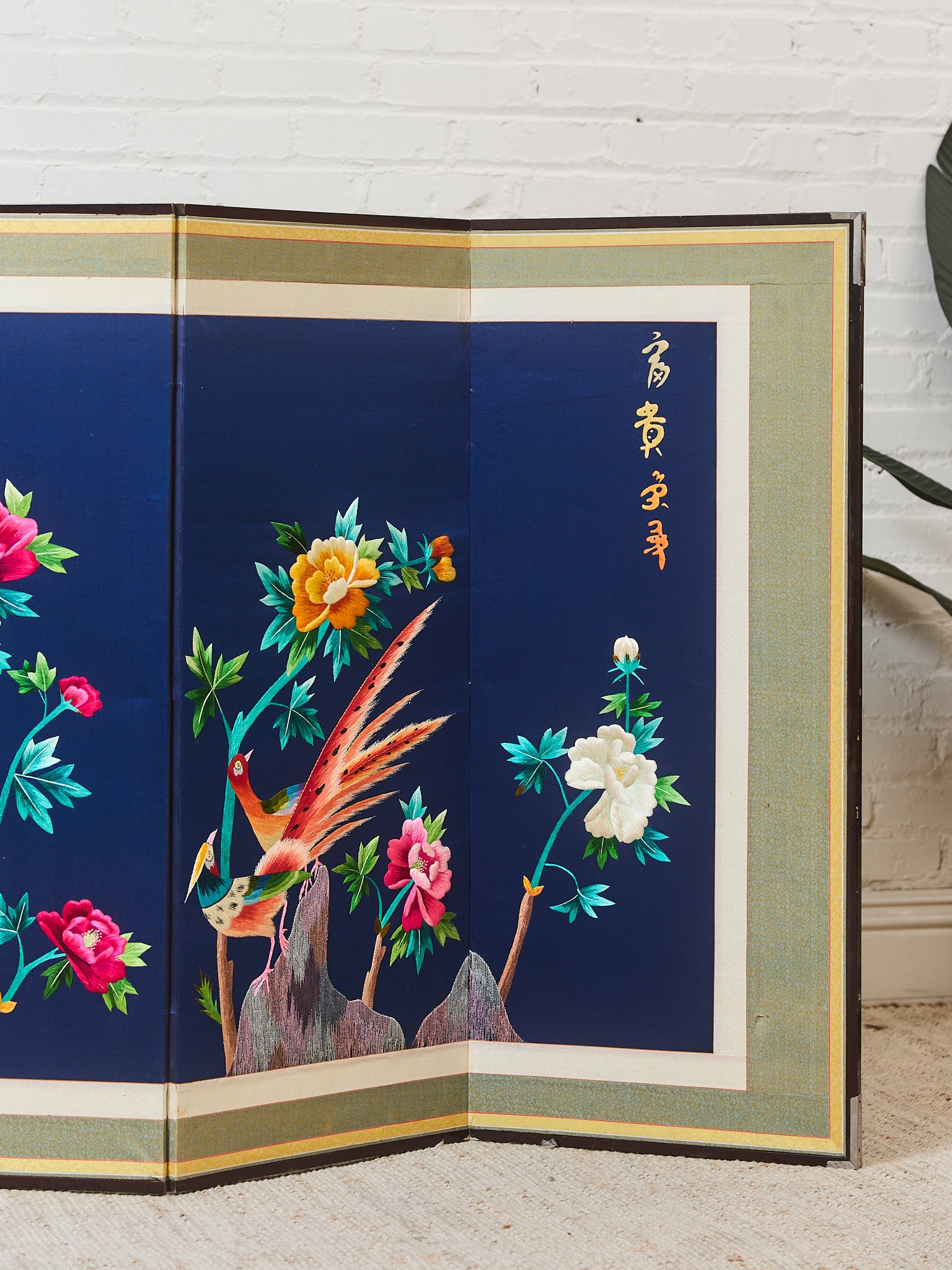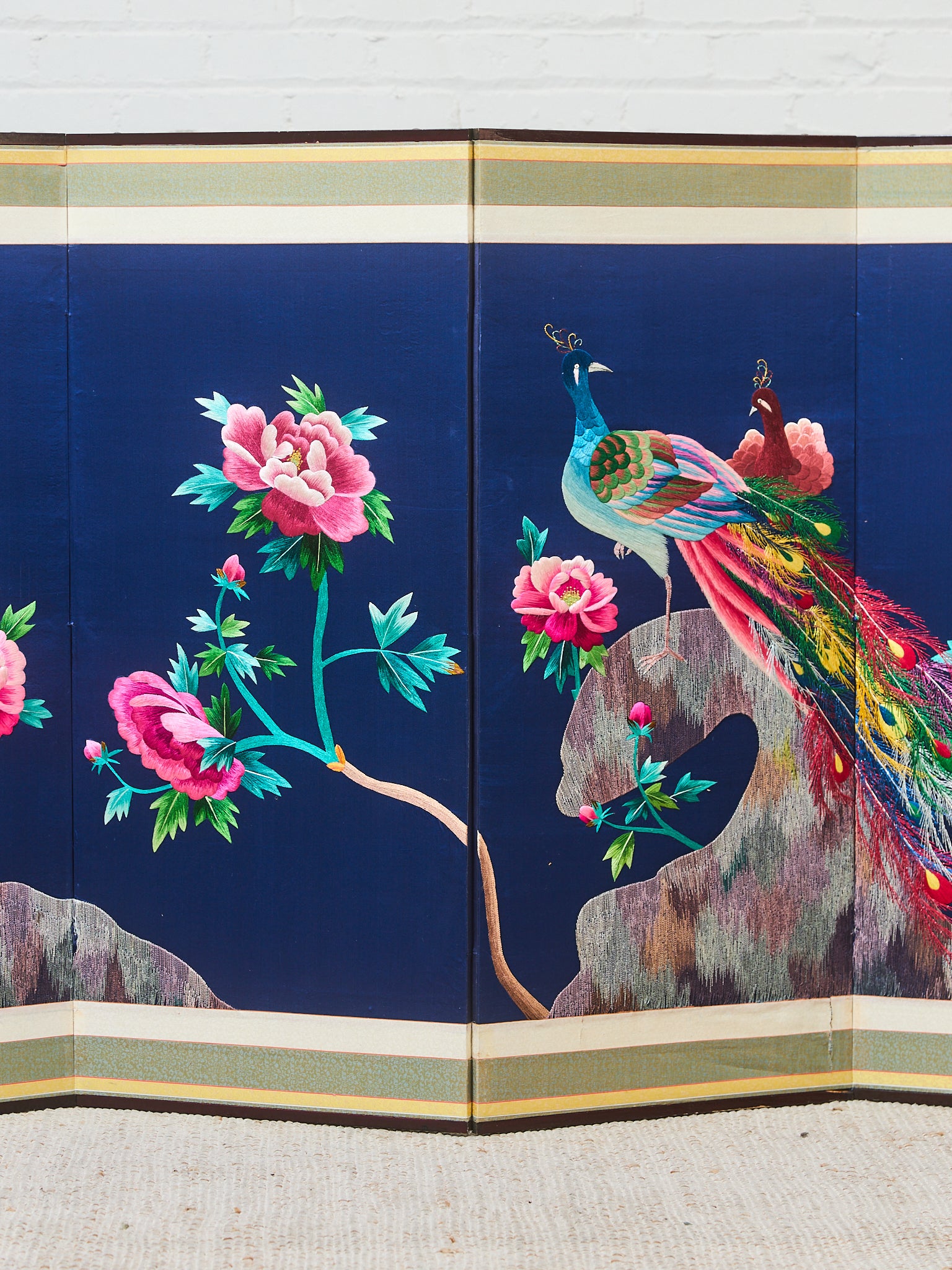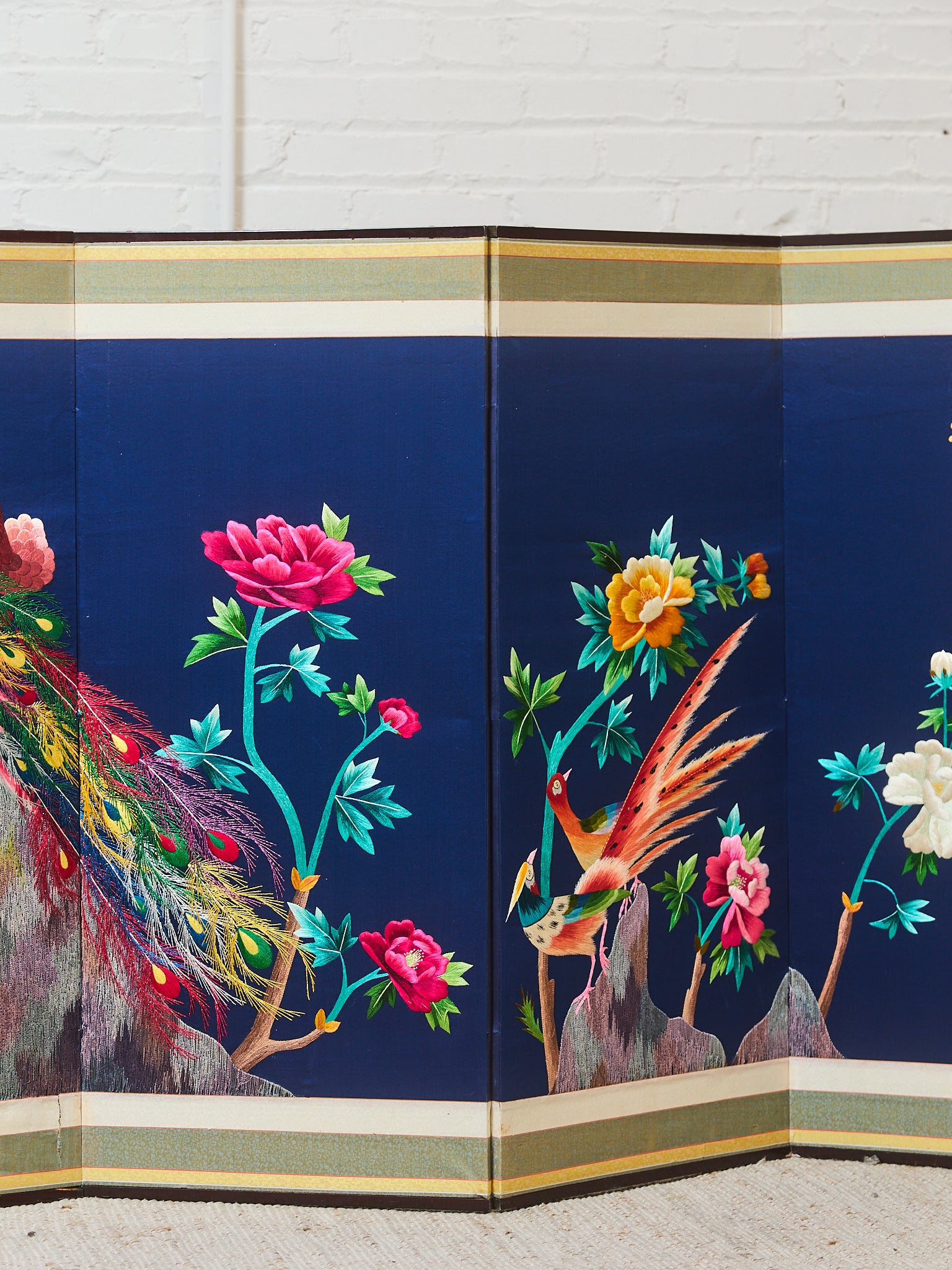 Korean Asian Large 8-Panel Silk Embroidered Peacock Bird Butterfly Screen, 1900s