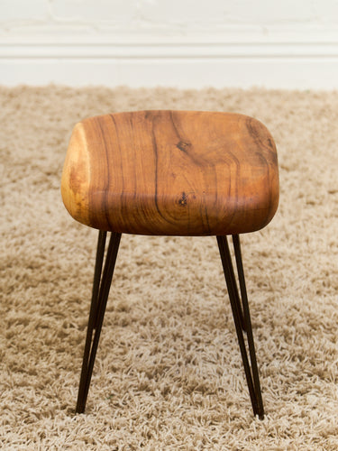 Mid-Century Modern Solid Wood Stool with Hairpin Legs
