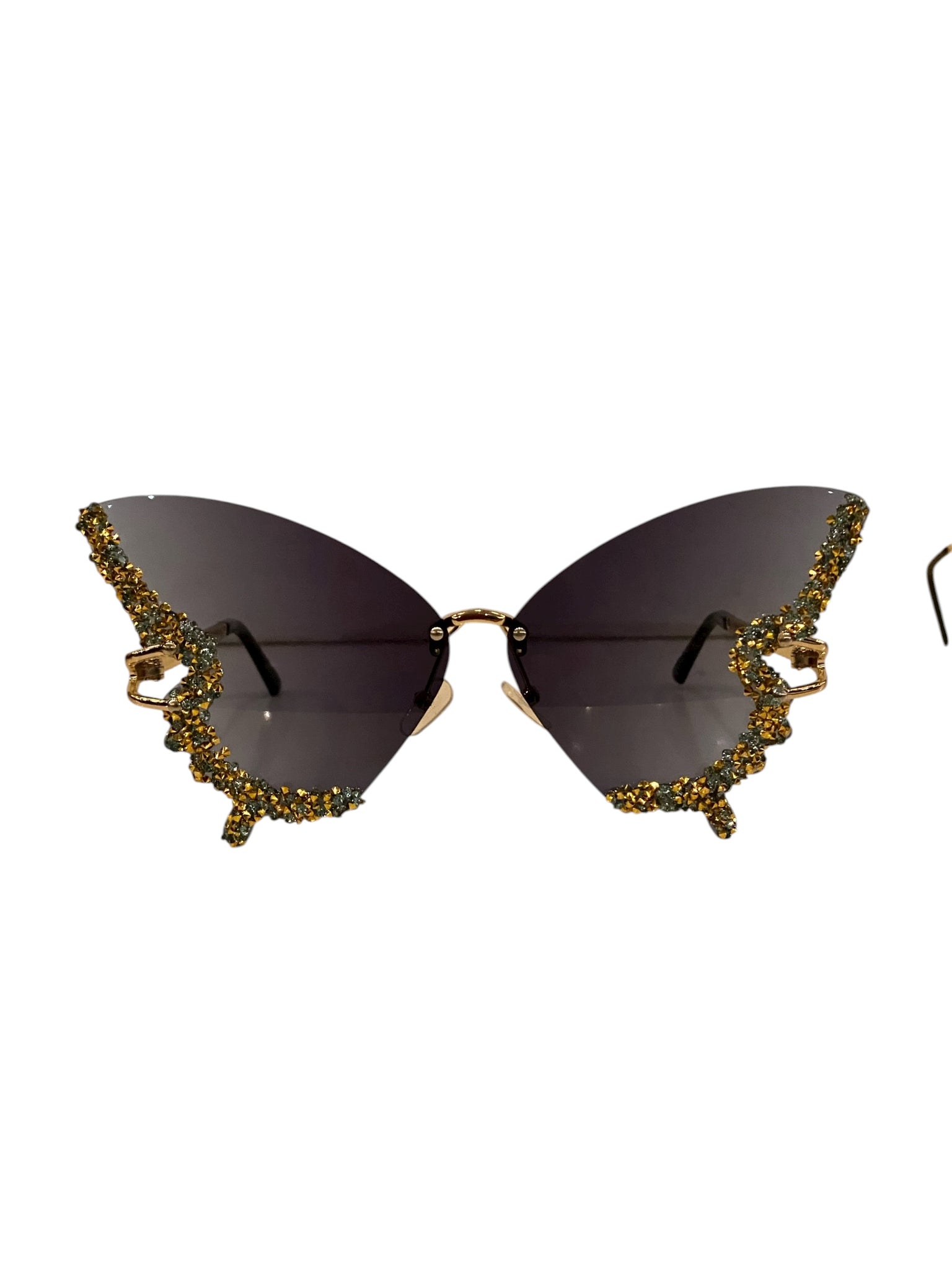 • Load image into Gallery viewer, Blue Butterfly Sunnies with Gold Accents