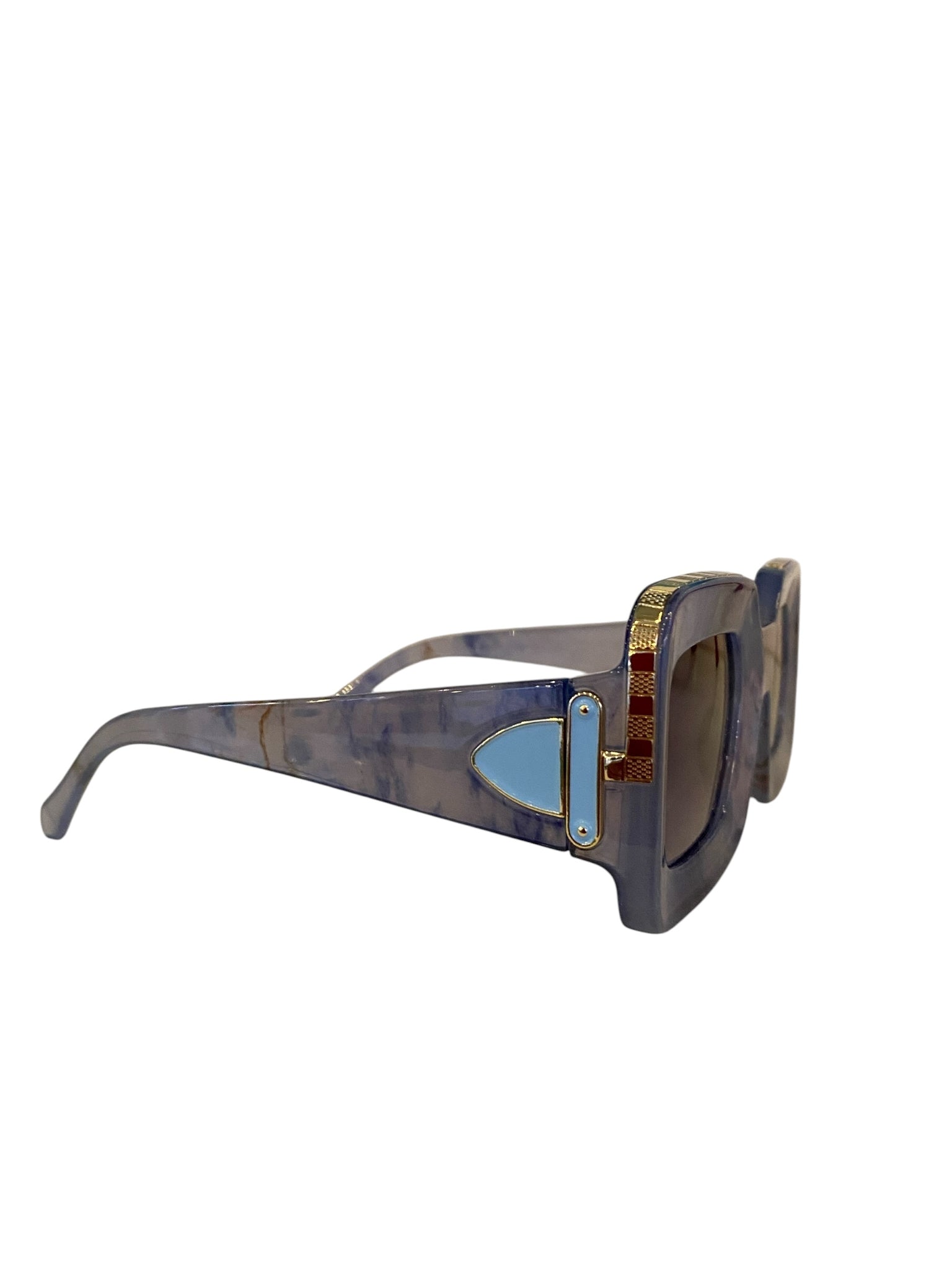 Designer Transparent Lapis Frame And Gold Accents Sunnies