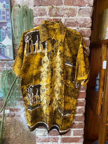 Vintage Gold Hawaiian Shirt with Elephant Motif