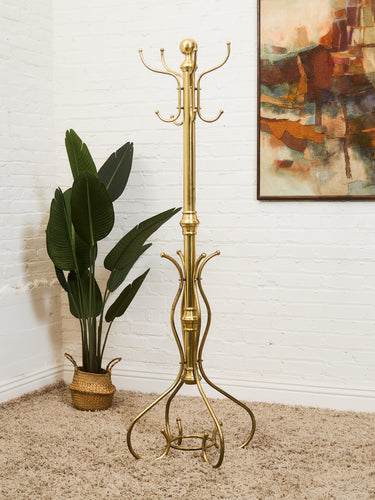 Vintage Tall Brass Standing Hall Tree Hat Stand Coat Rack Floor Art Deco 1920s