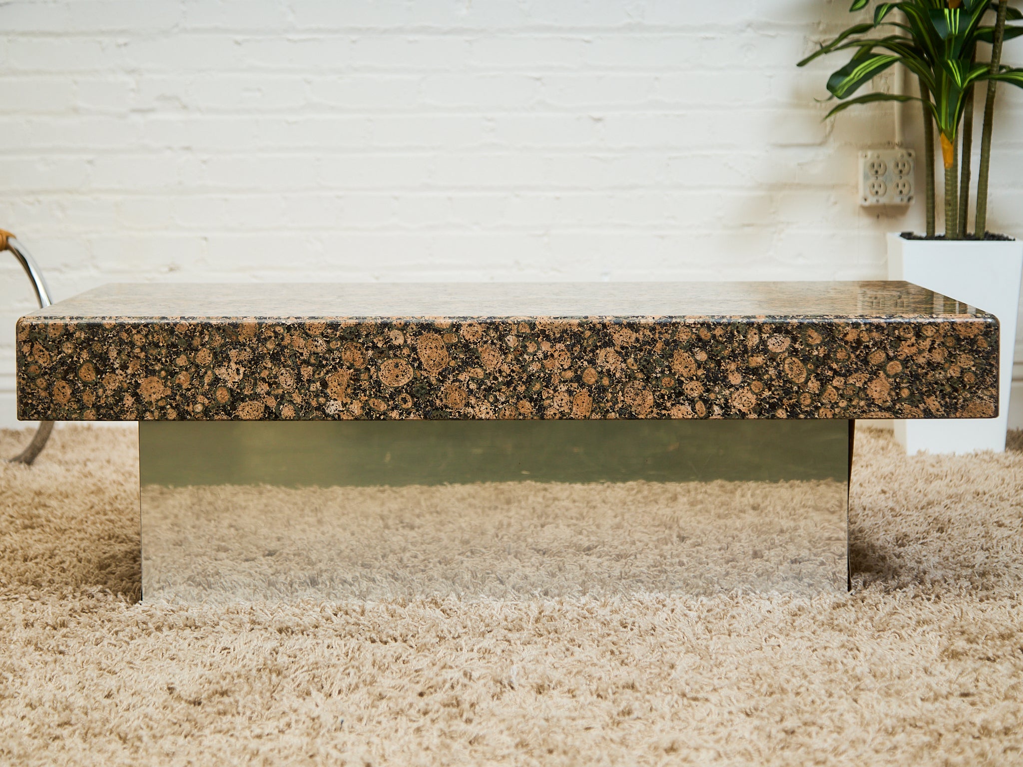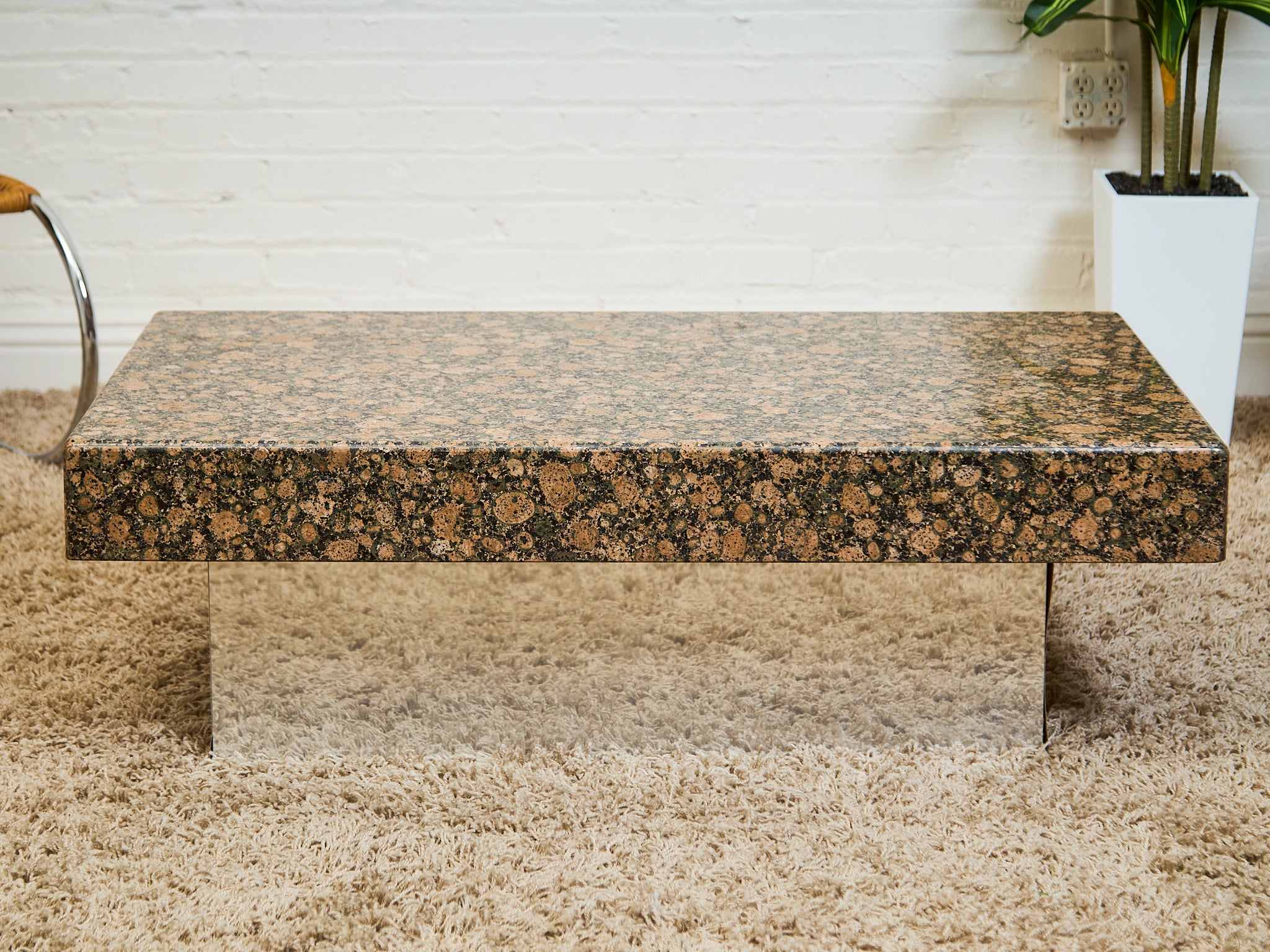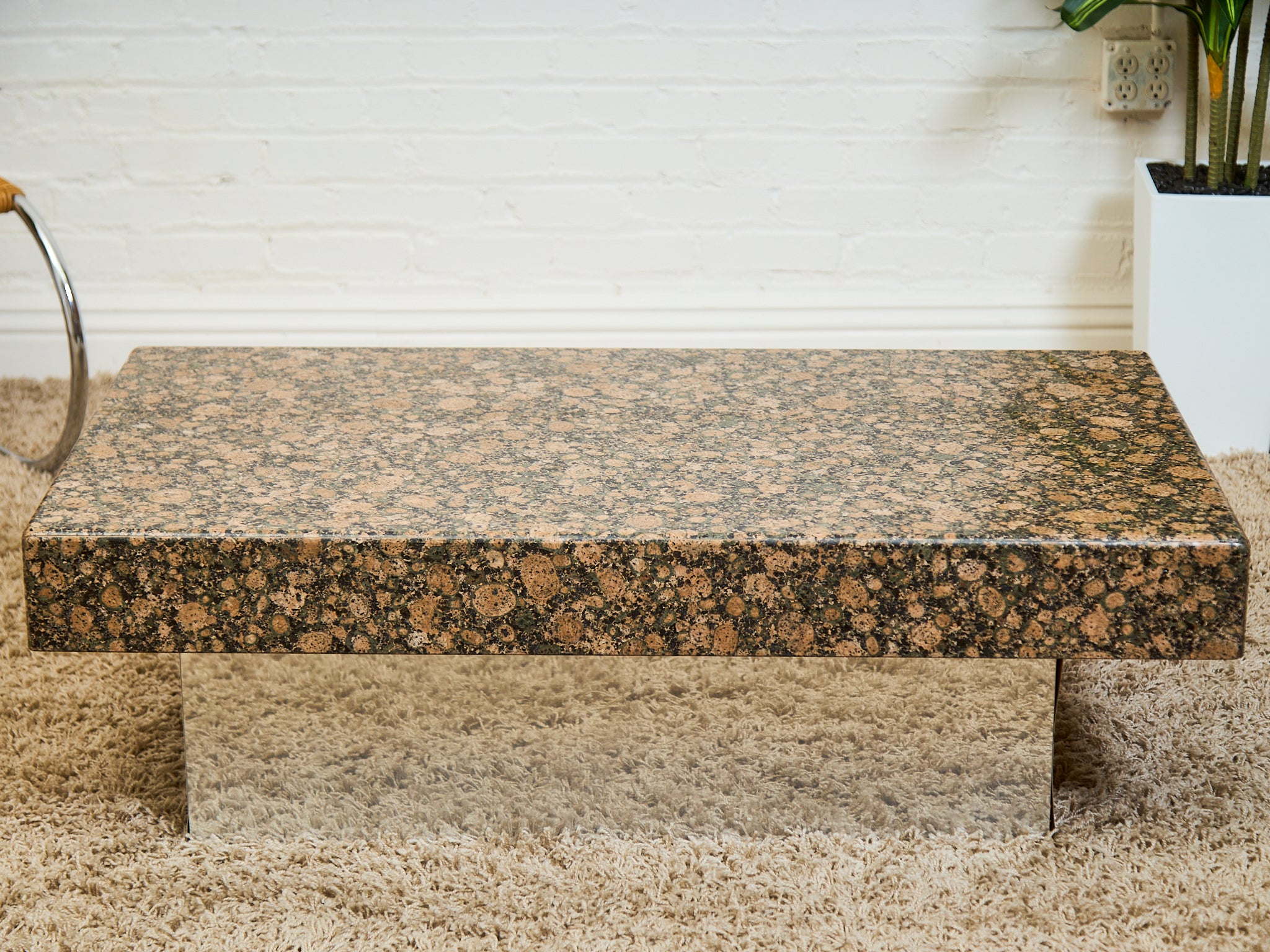Post Modern Granite Coffee Table with Chrome Pedestal Base
