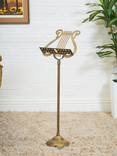 Vintage Brass Music Lectern with Classic Harp Lyre Motif and Ornate Footed Base