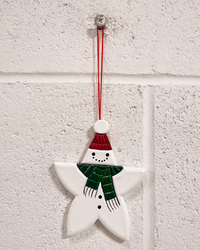 Vintage Wooden Snowman Star Ornament