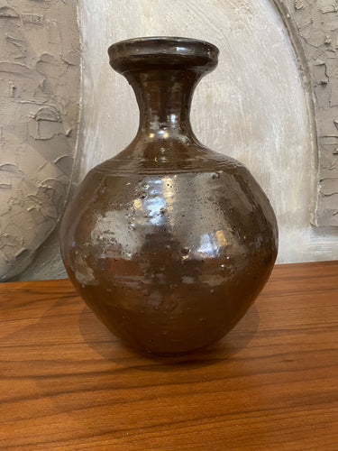 Large Hourglass shaped Chocolate Brown Stoneware vase