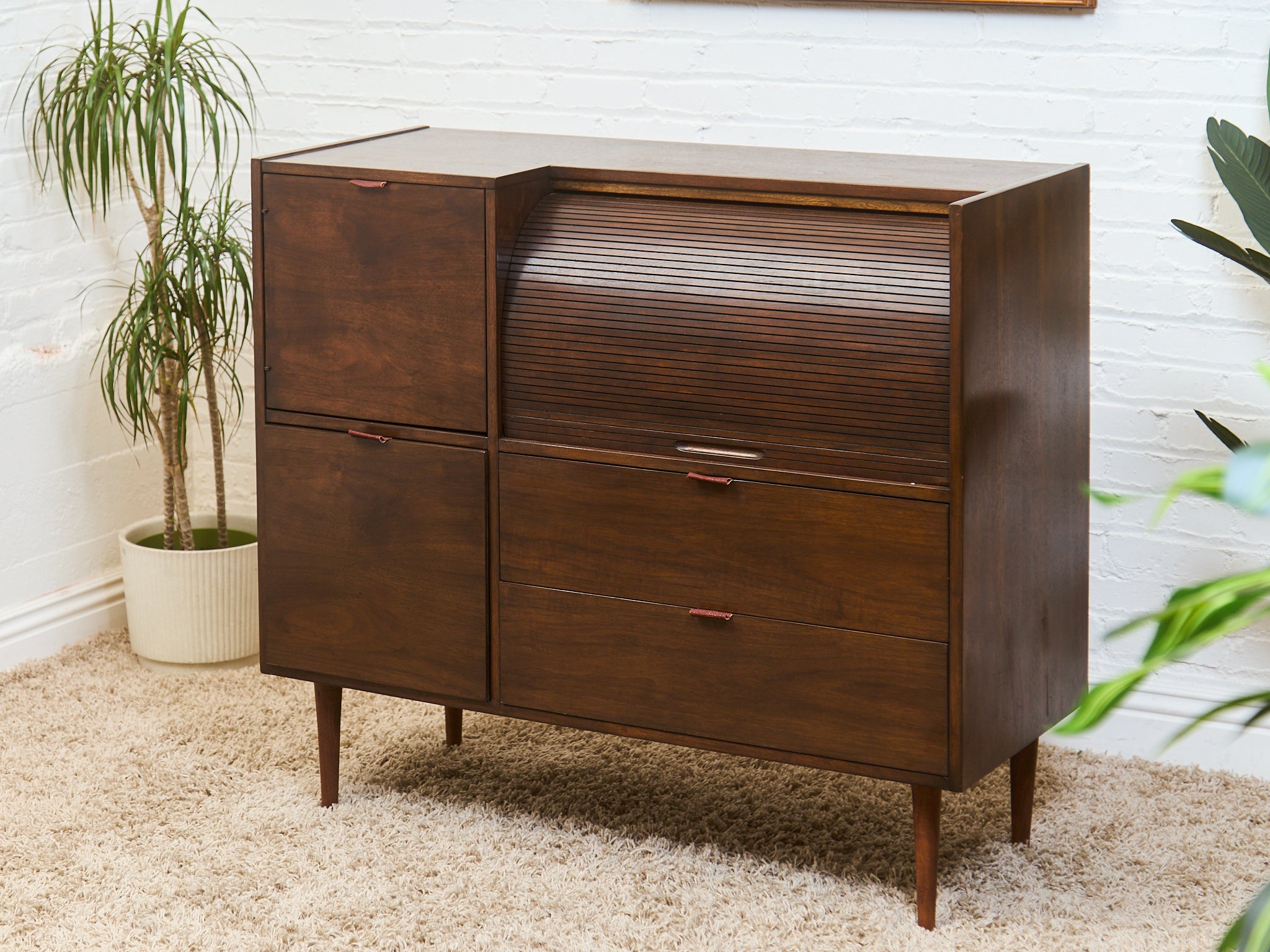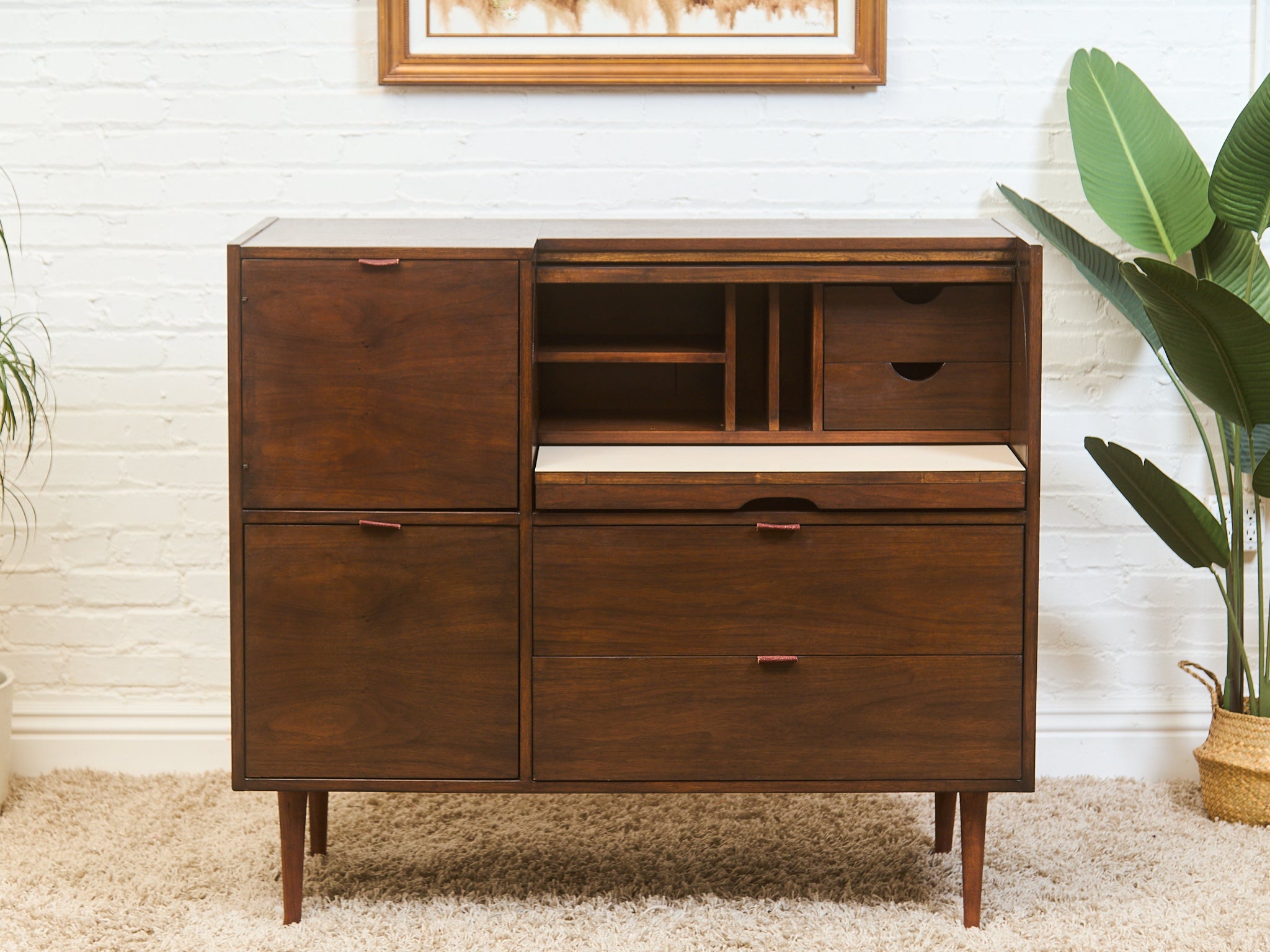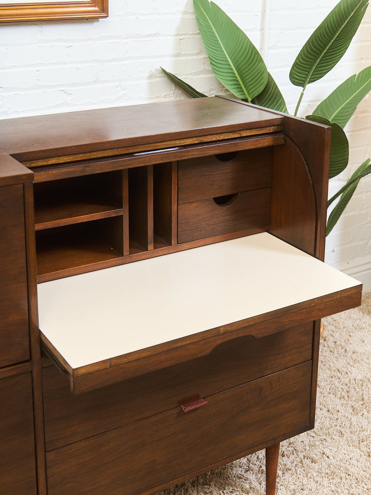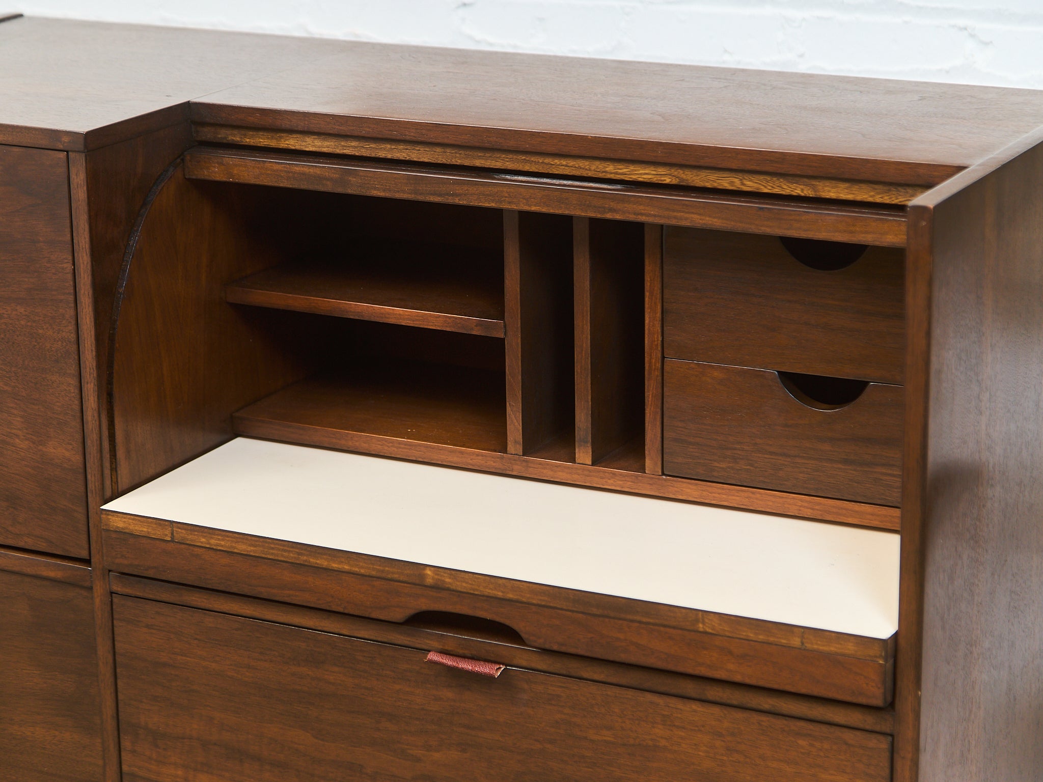 1960s Mid Century Walnut Roll-Top Secretary Desk by Hooker