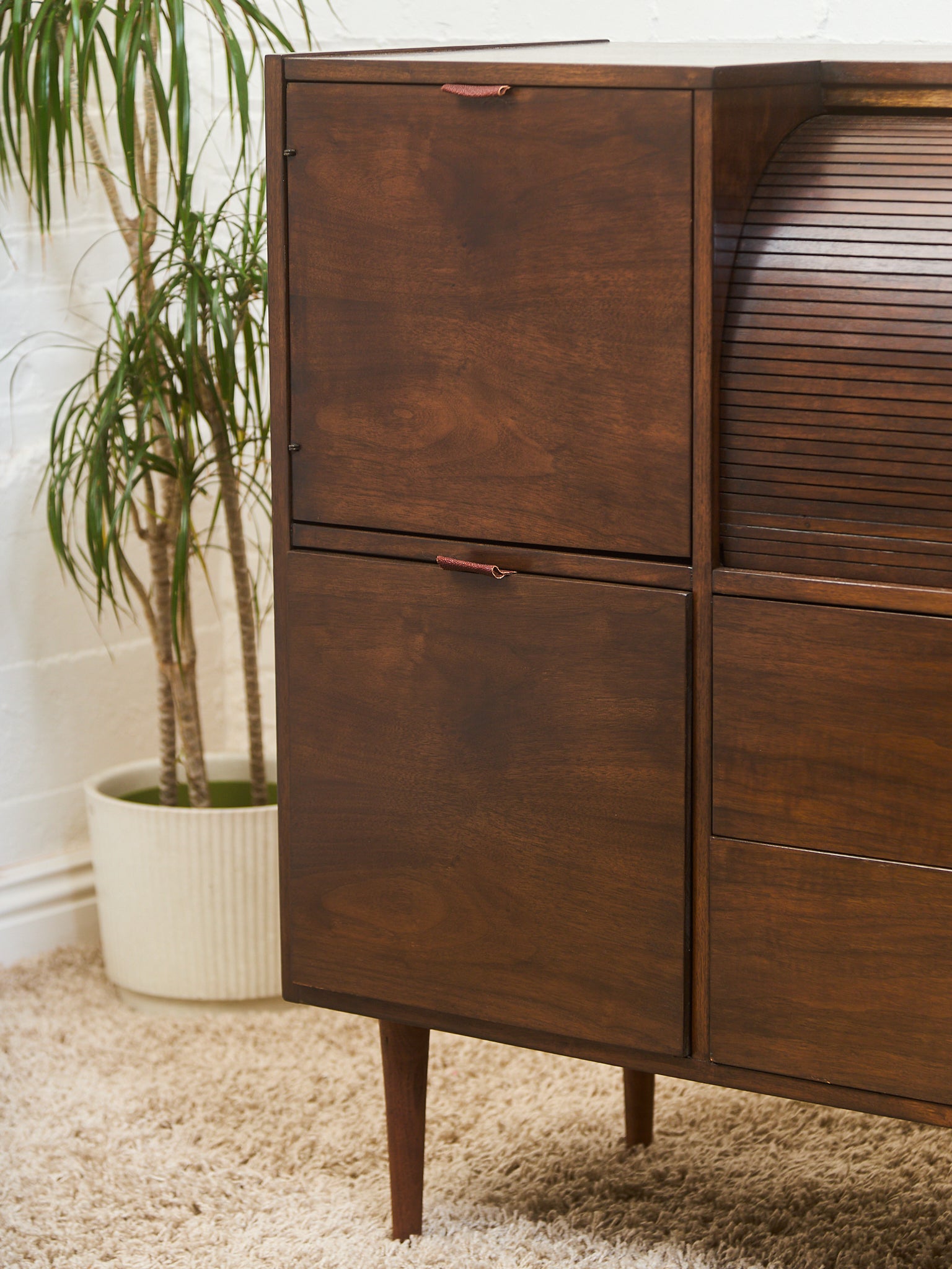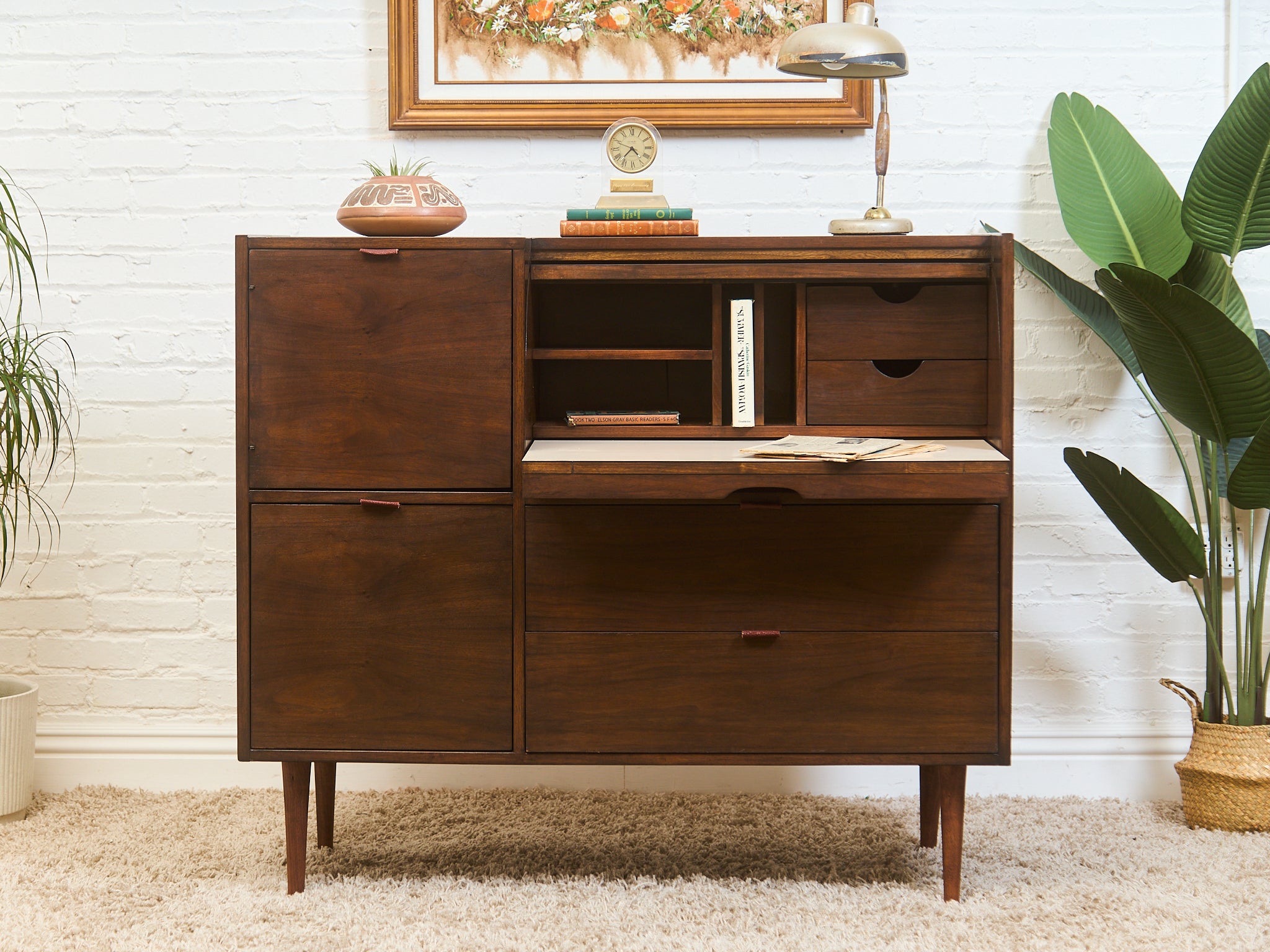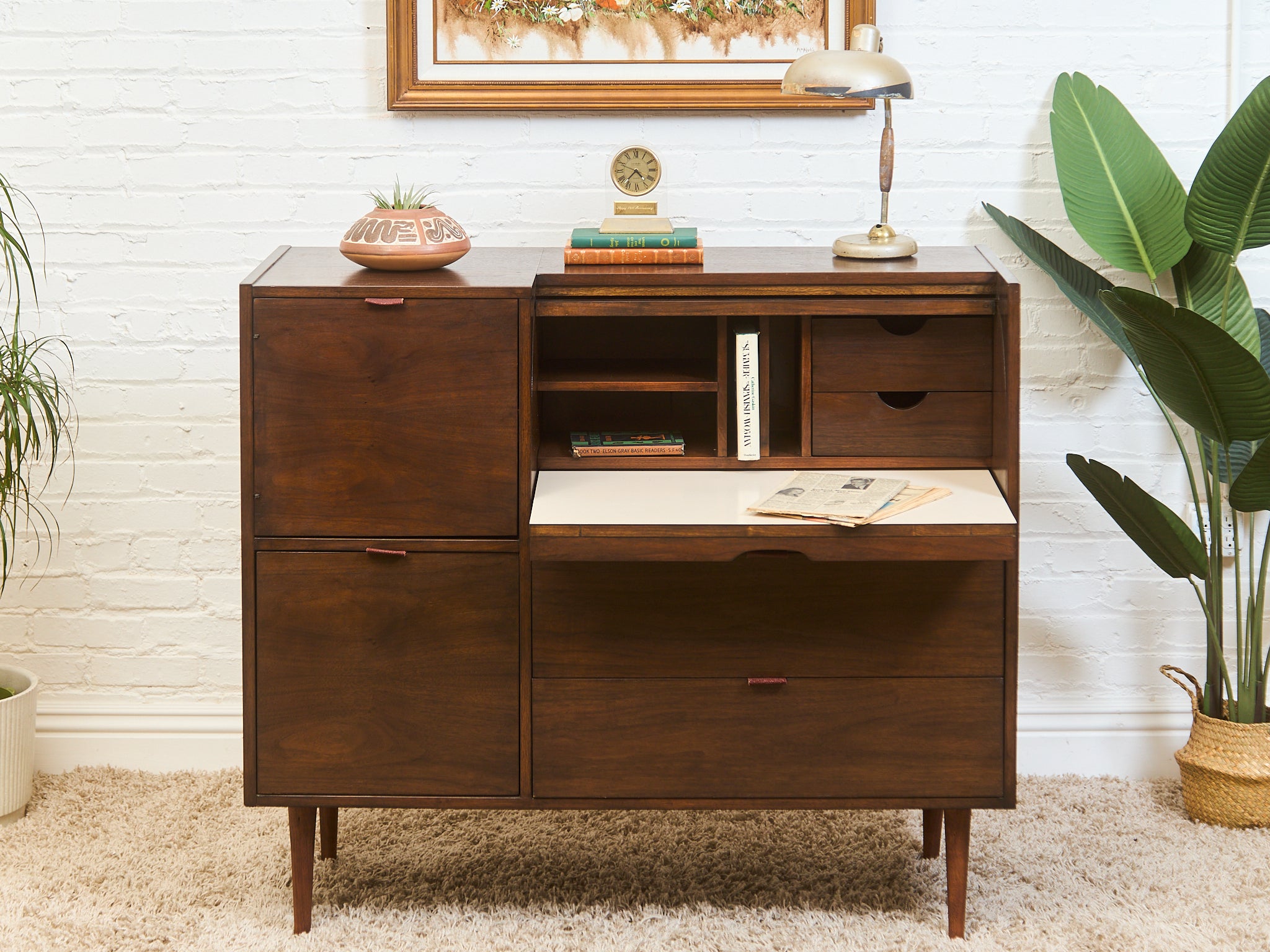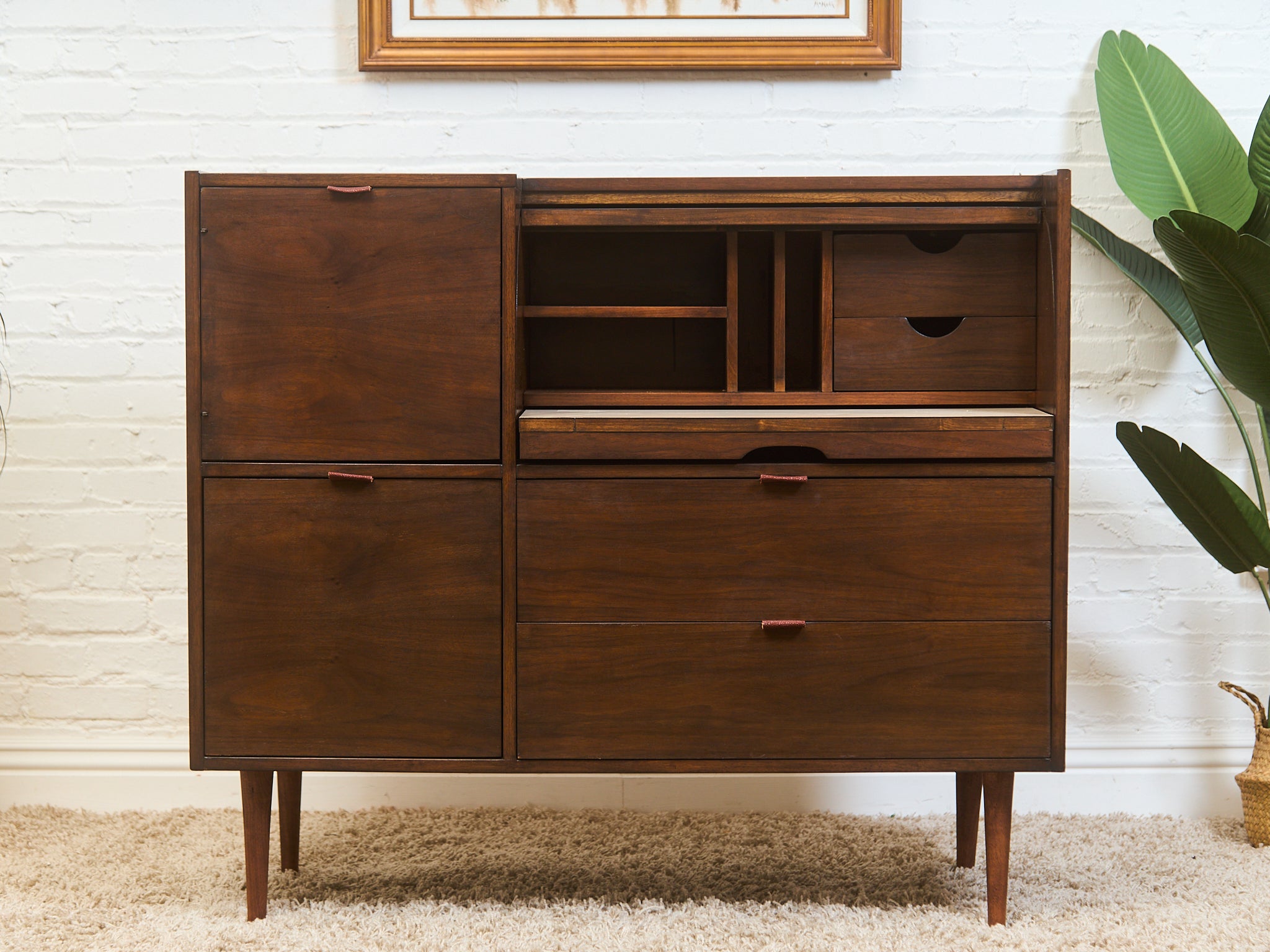 1960s Mid Century Walnut Roll-Top Secretary Desk by Hooker