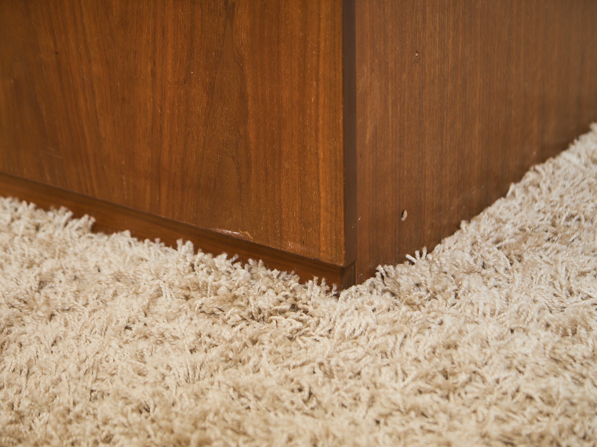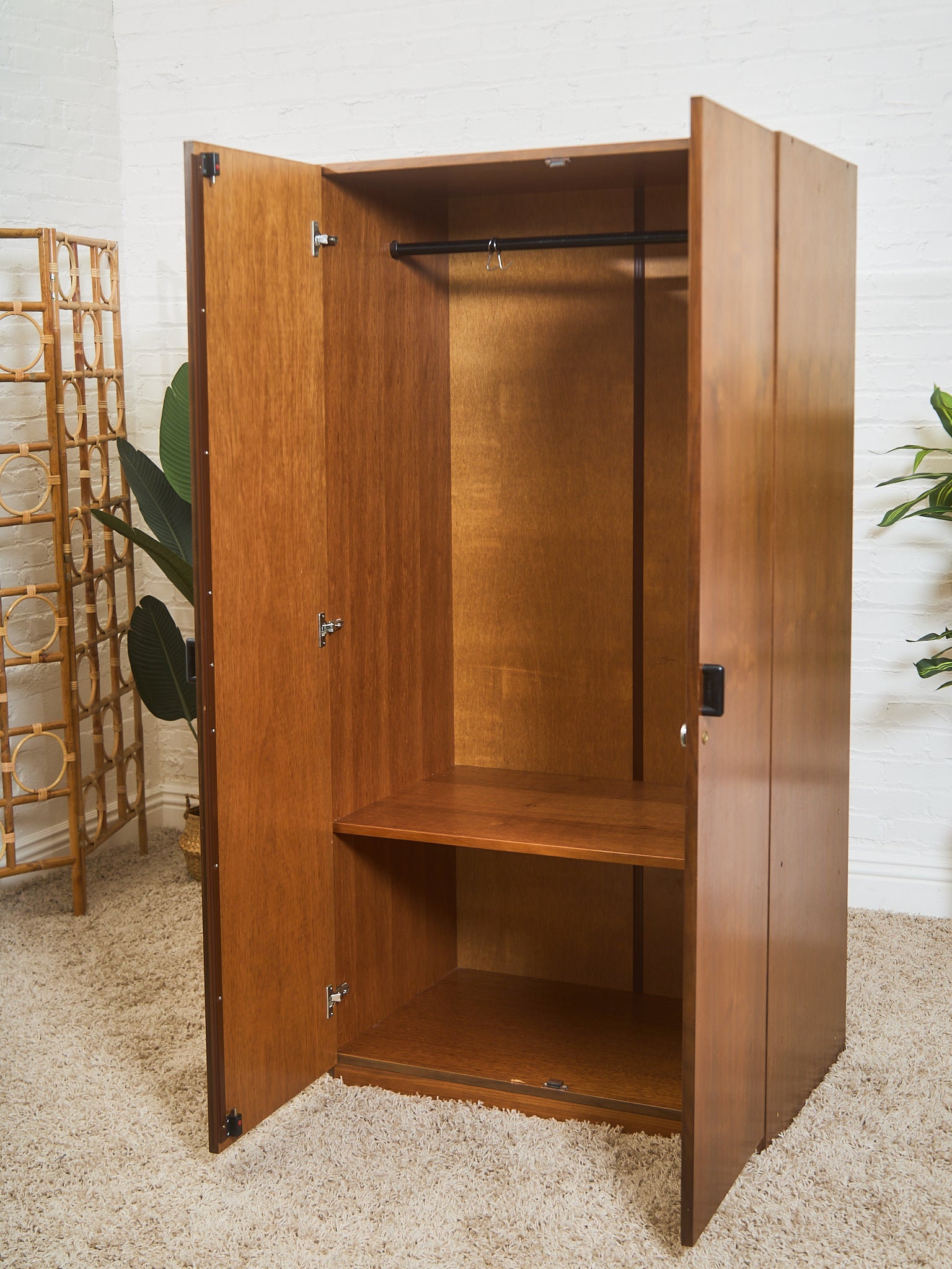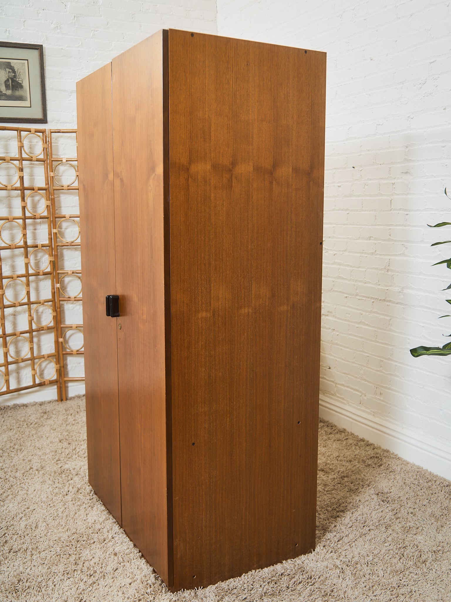 Mid-Century Modern Walnut Storage Cabinet with Black Handles