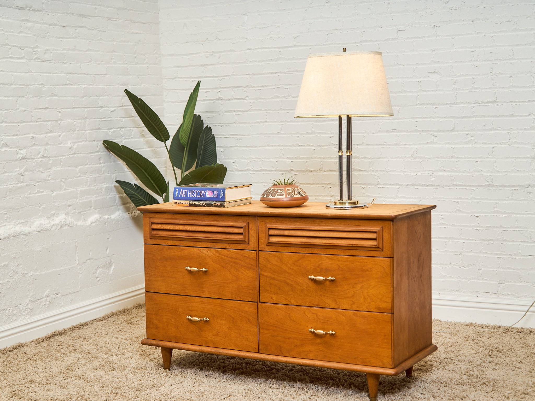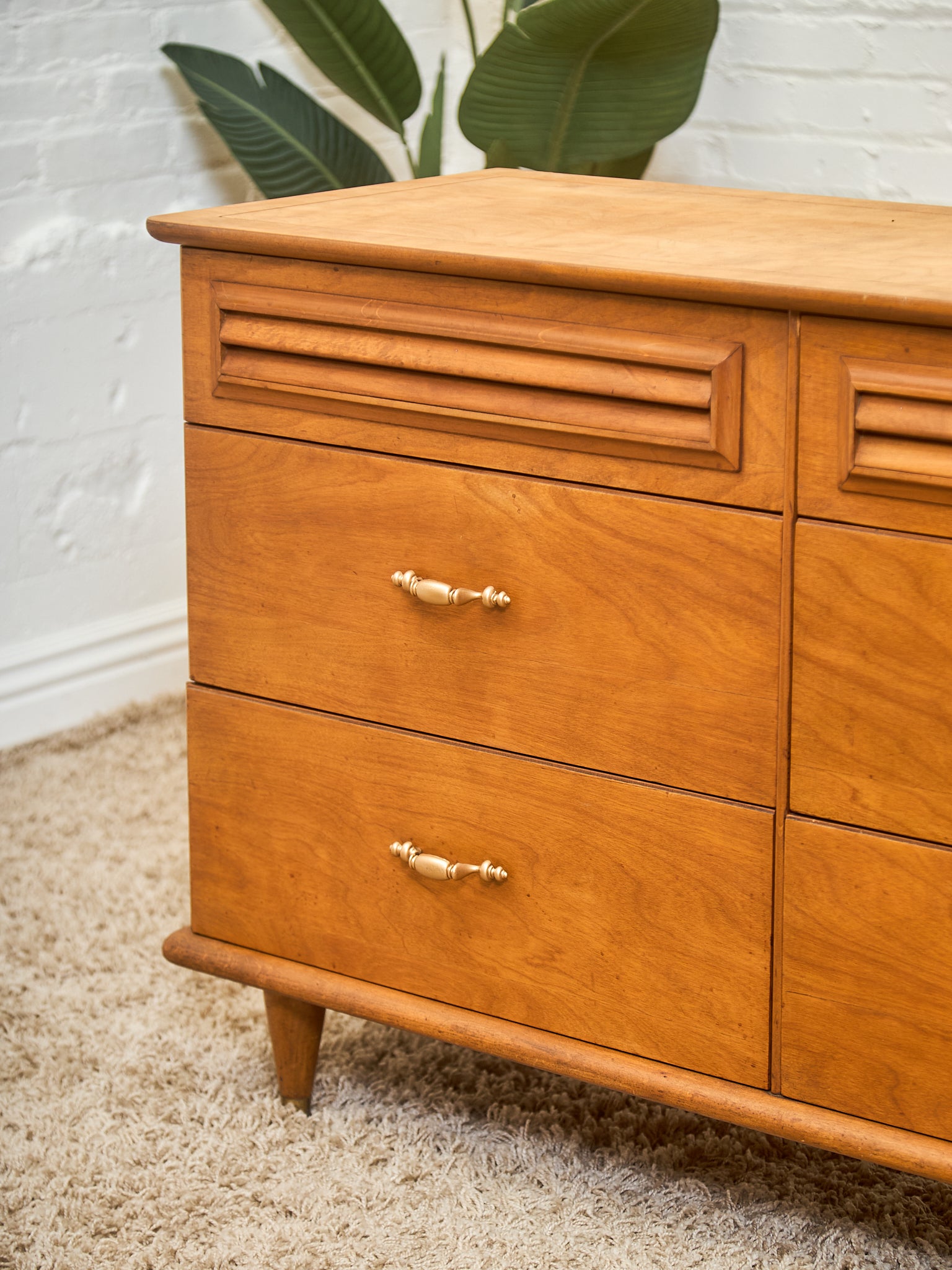 Walnut 6 Drawer Dresser with Louvered Drawers