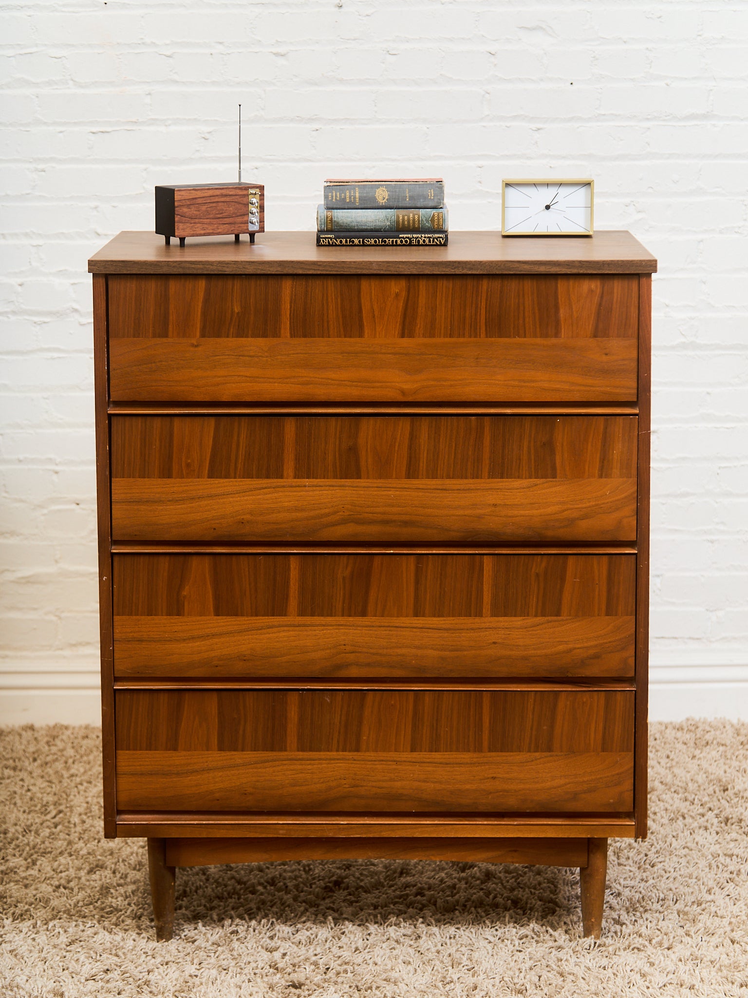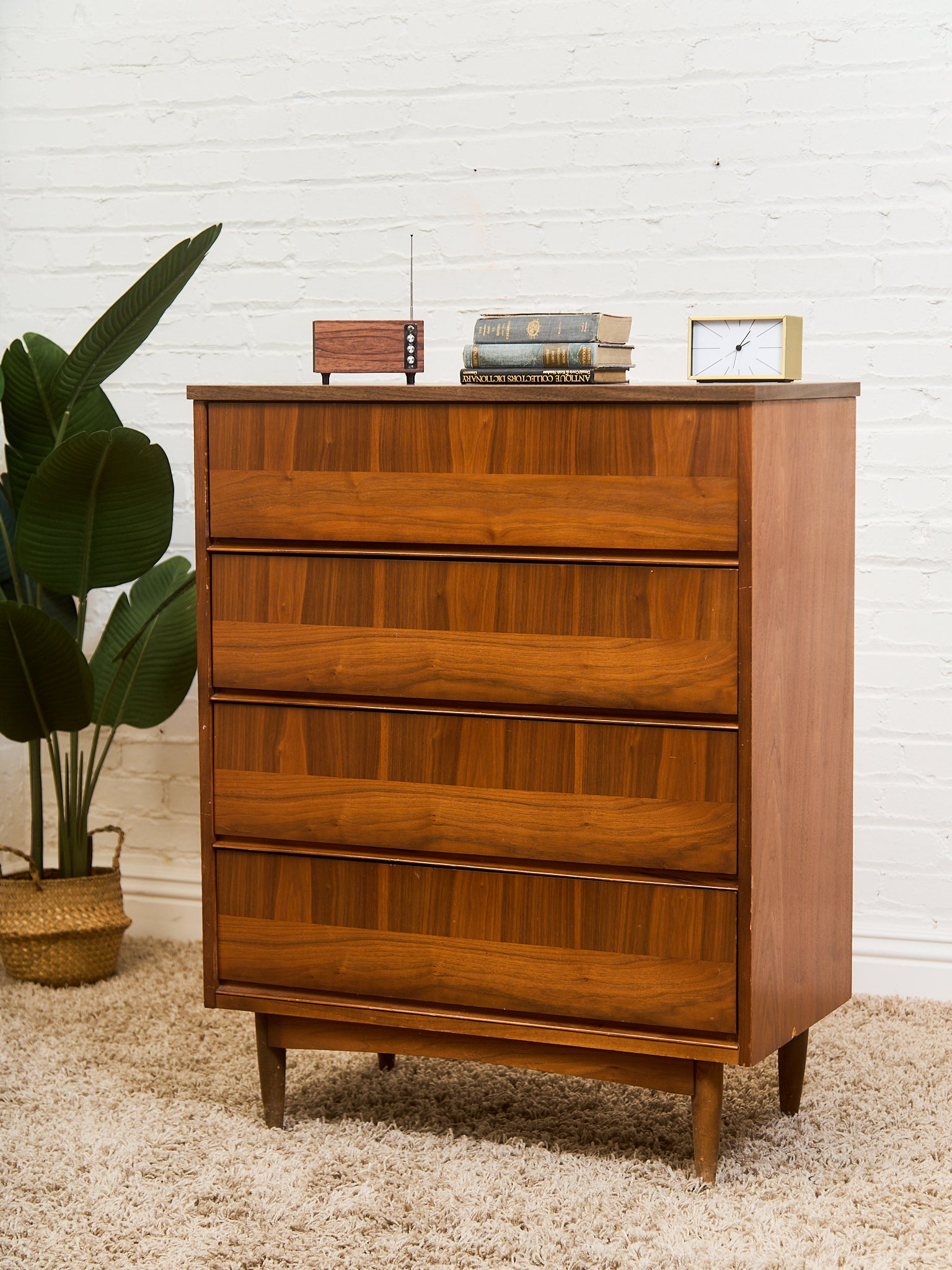 Walnut Mid Century 2 Tone Walnut 4 Drawer Dresser