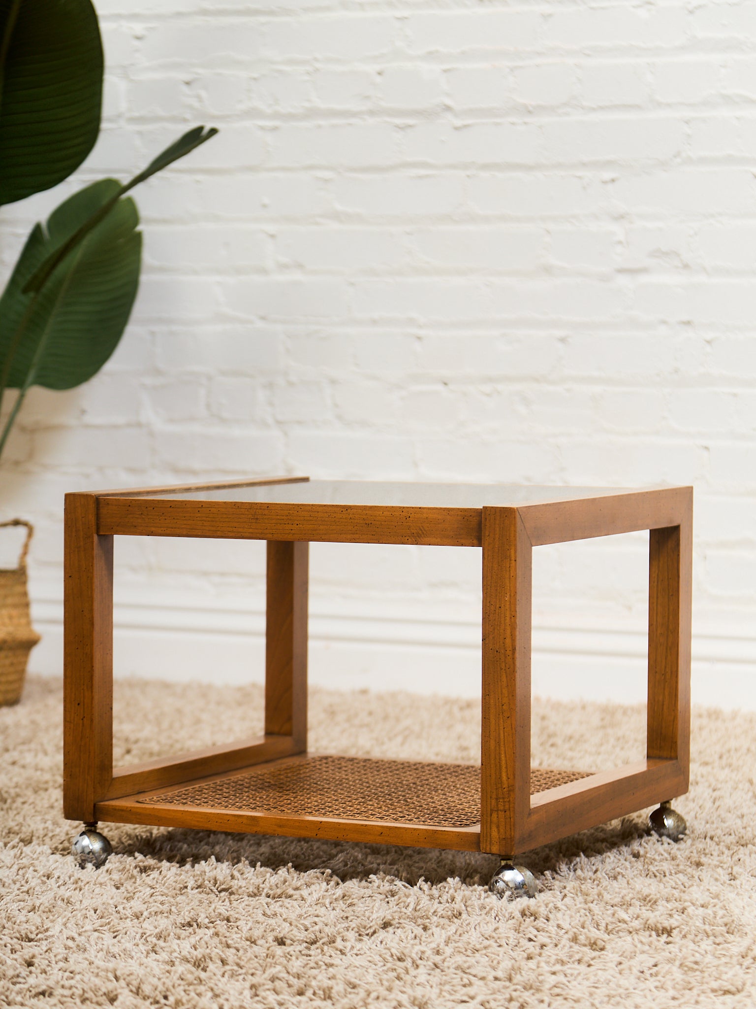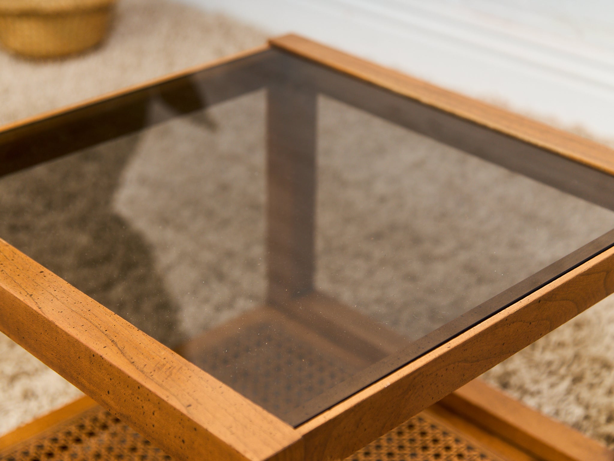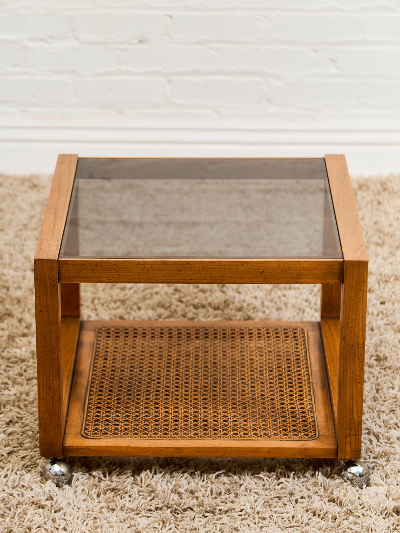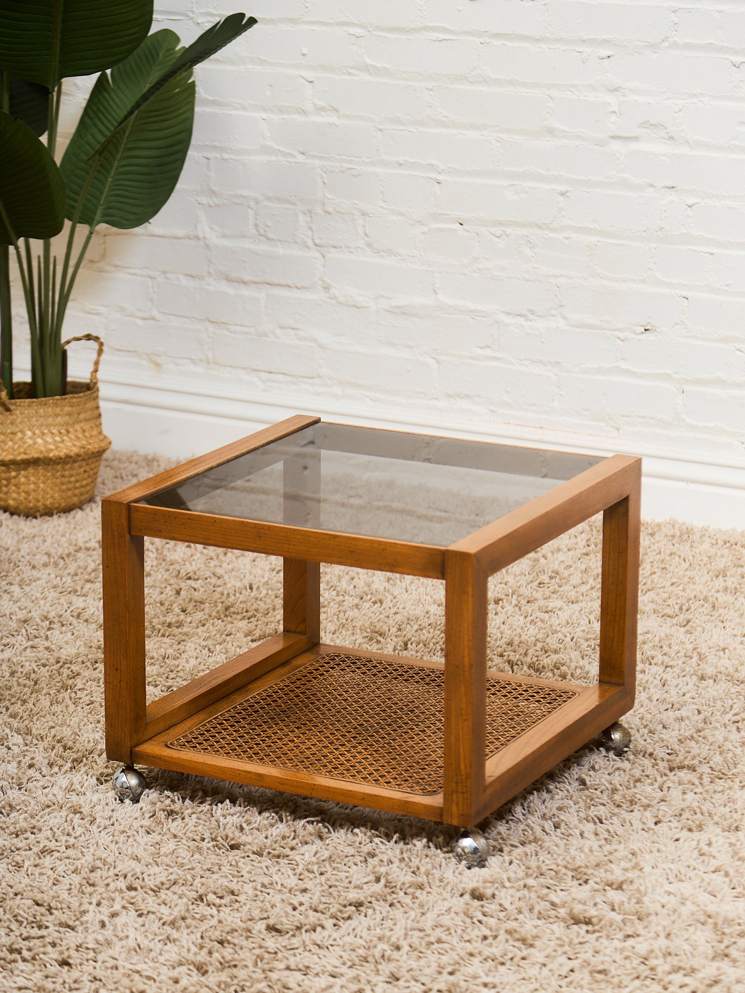 1970’s Smoked Glass Side Table with Caning