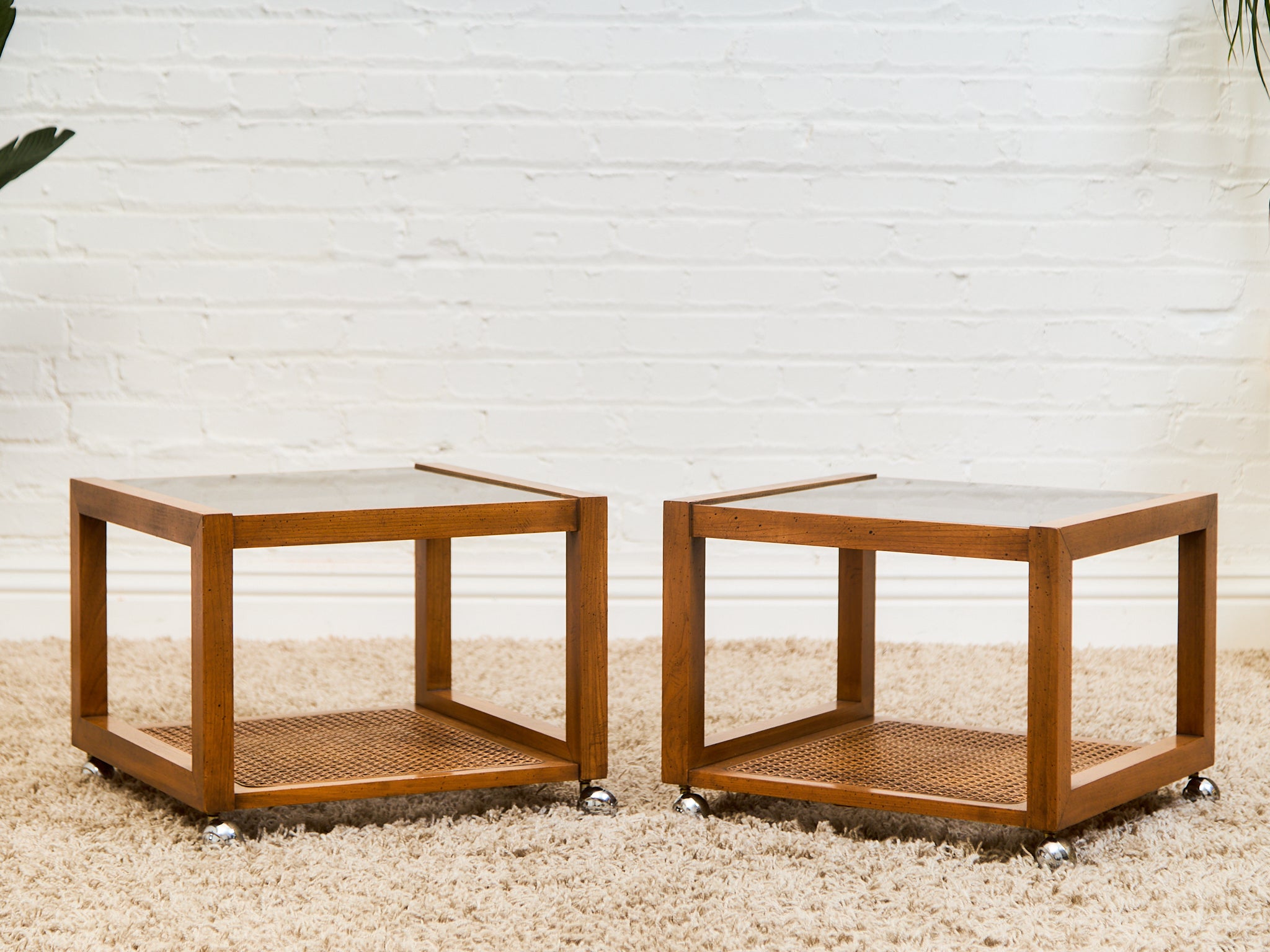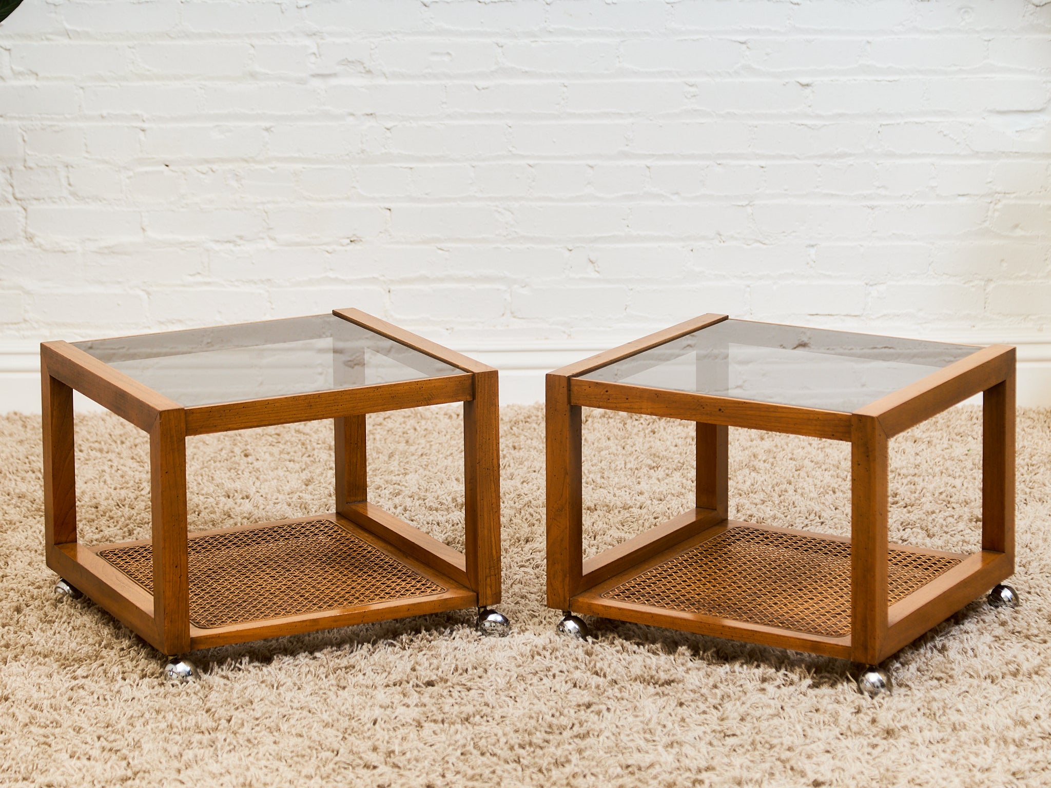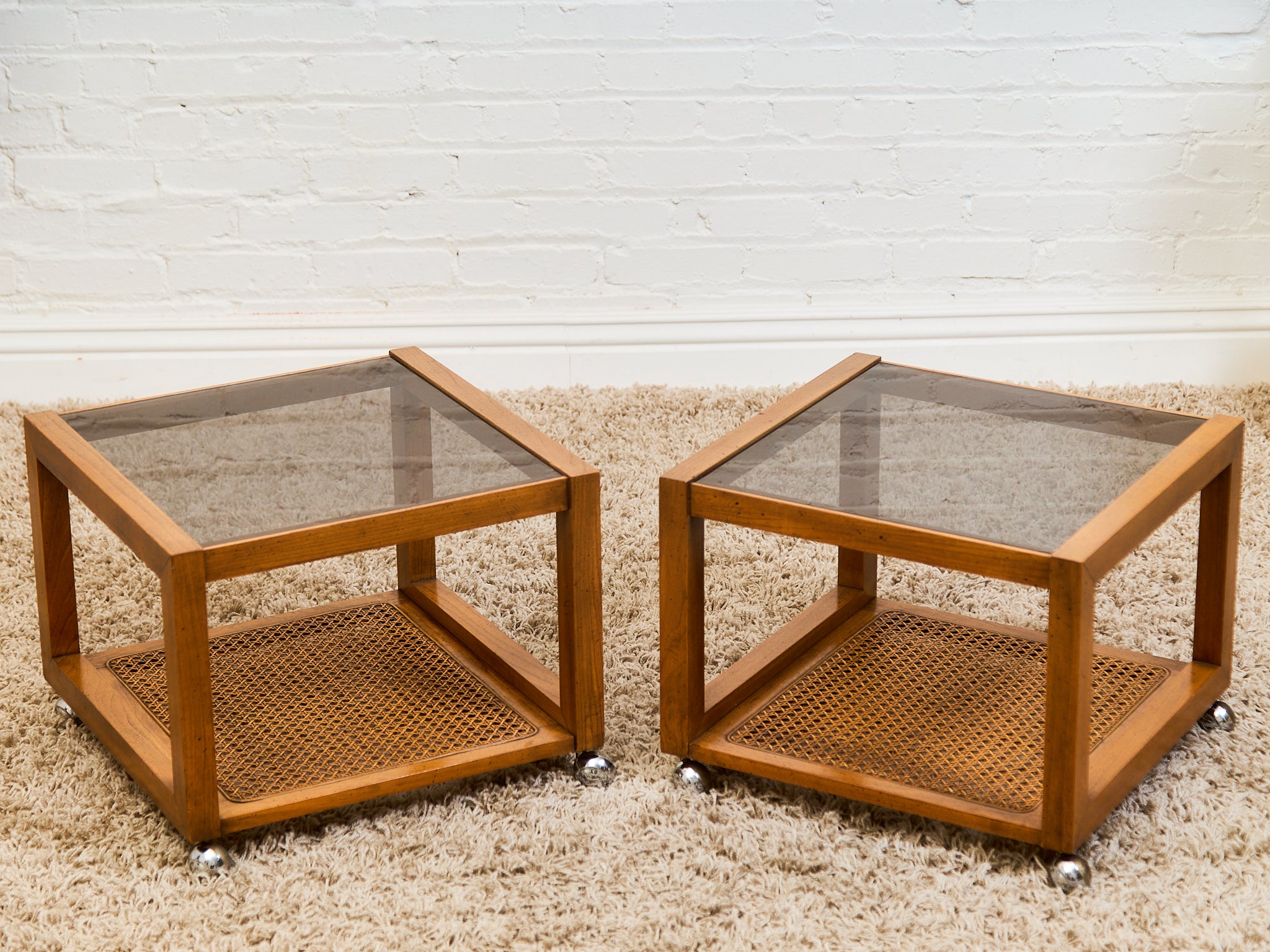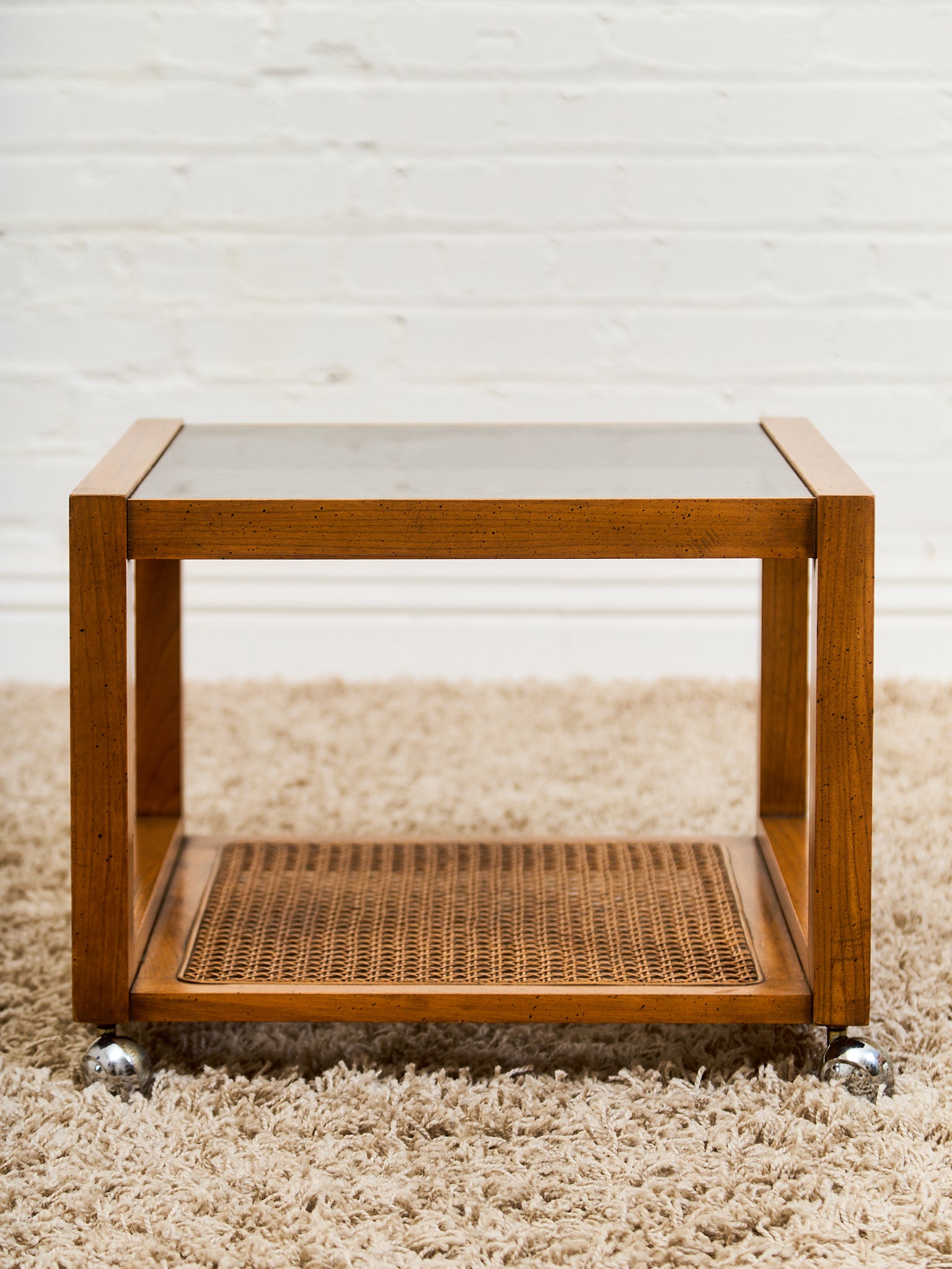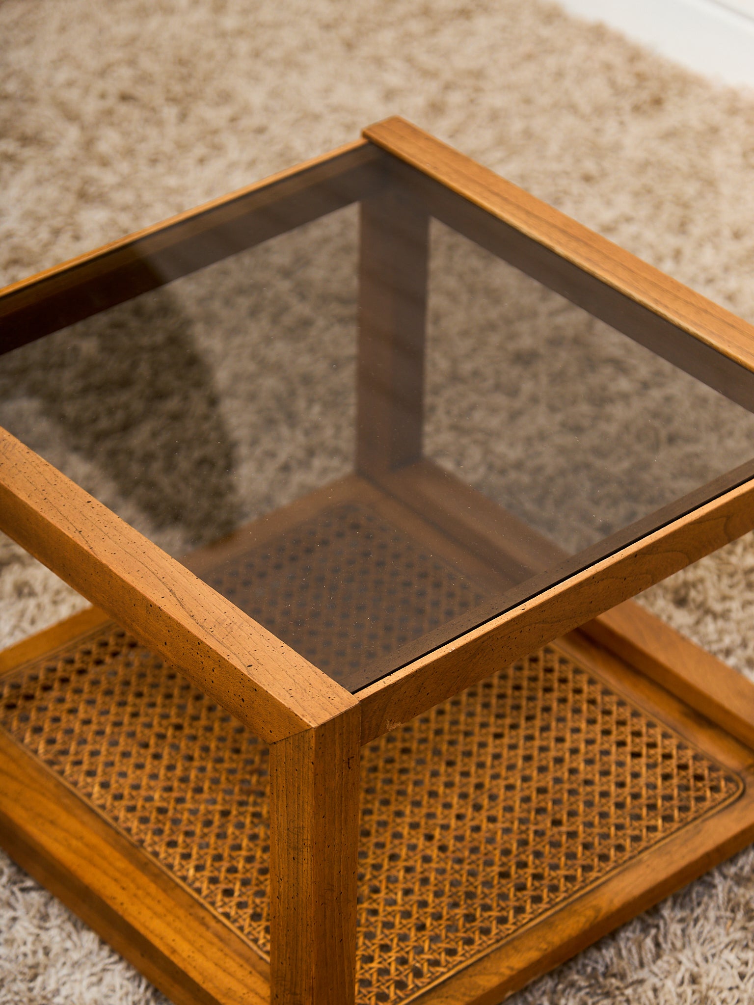 1970’s Smoked Glass Side Table with Caning