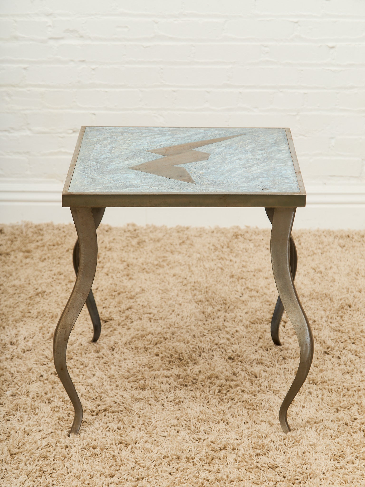 Brutalist Cement and Steel Inlaid End Table