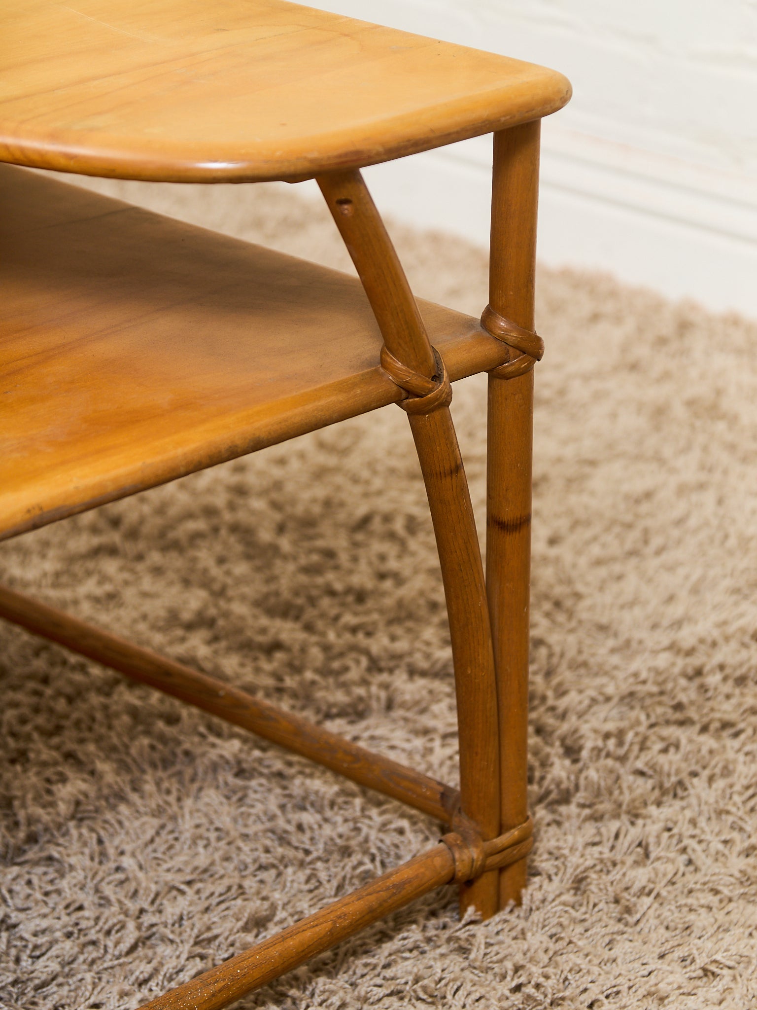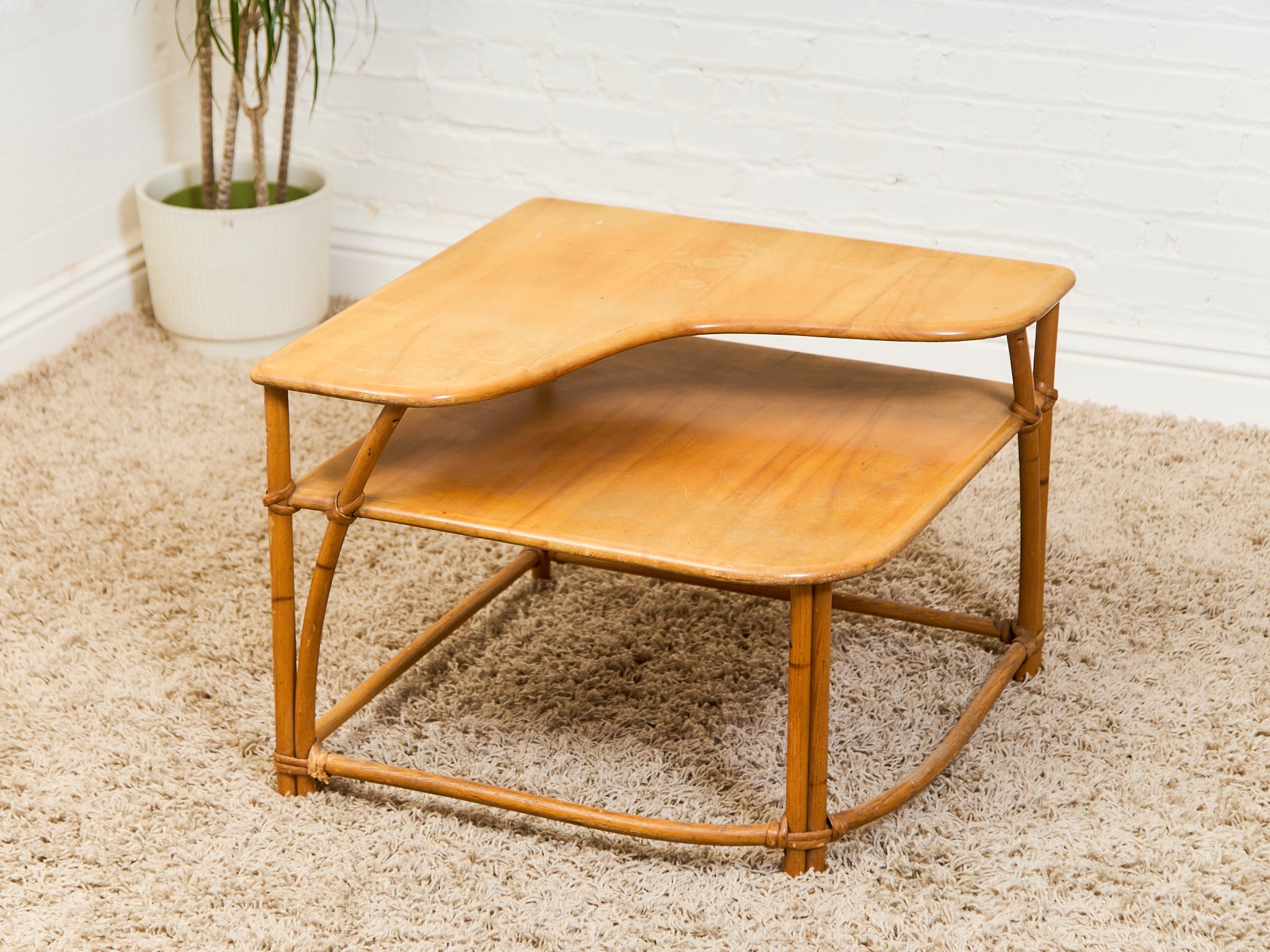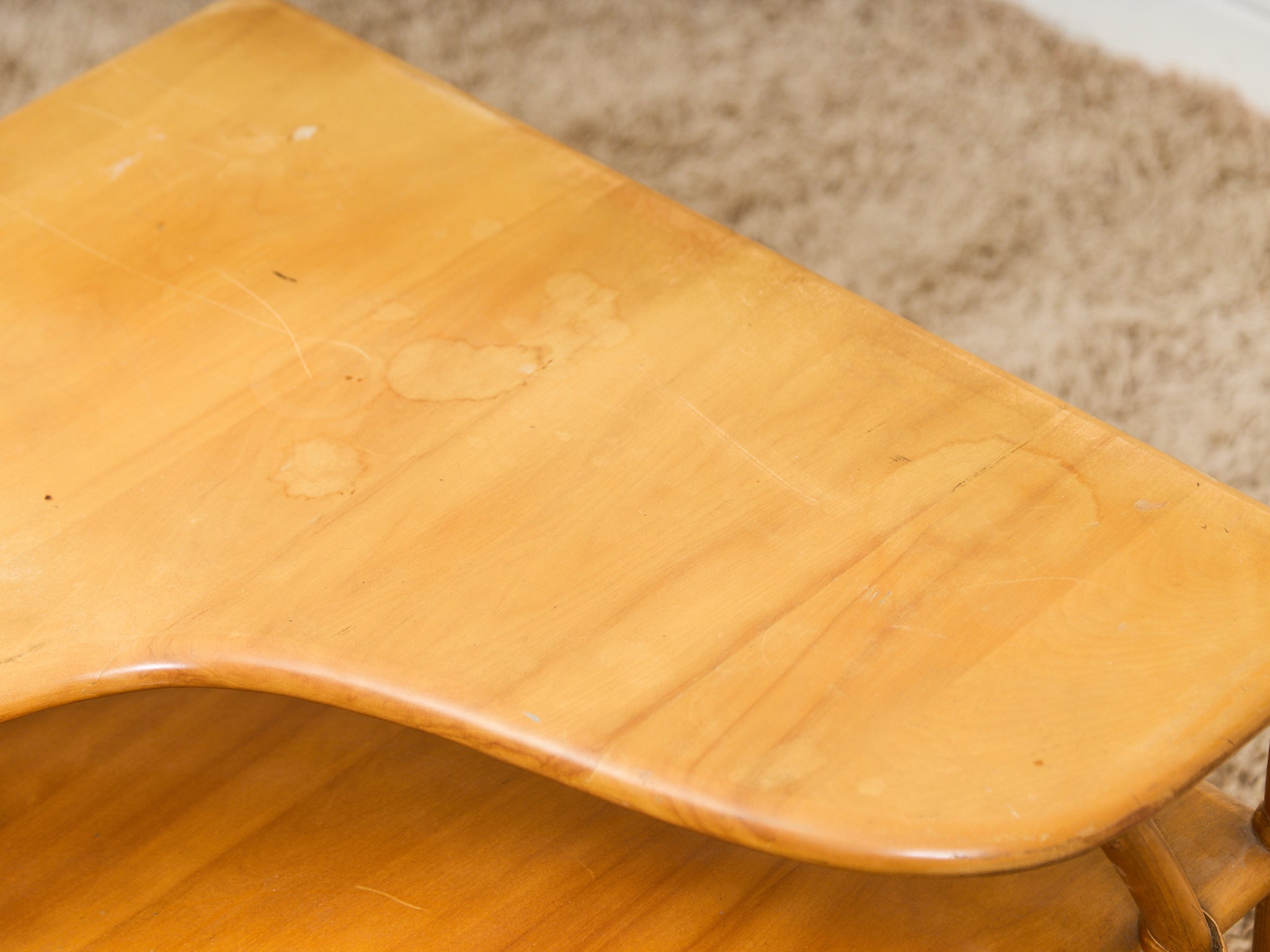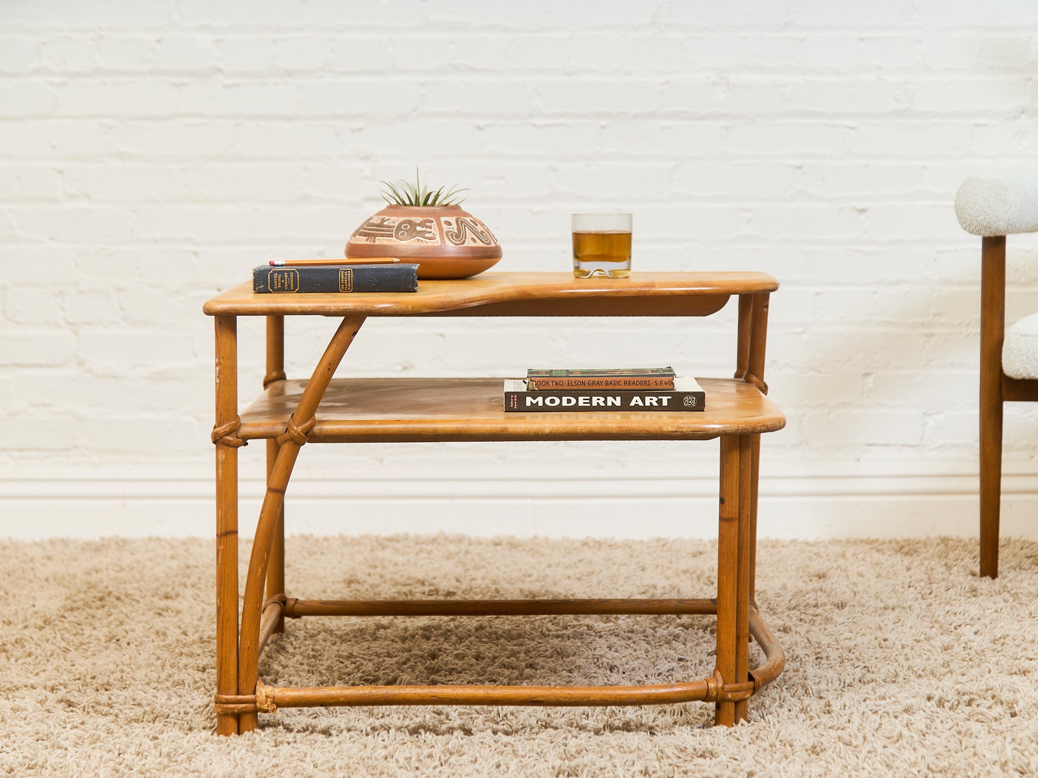 Unlock the potential of your living space with Heywood Wakefield's Two Tier Side Table. Ideal for displaying photos, vases, lighting, and other decorative objects, this vintage find will elevate any room and bring a touch of sophistication to your home.