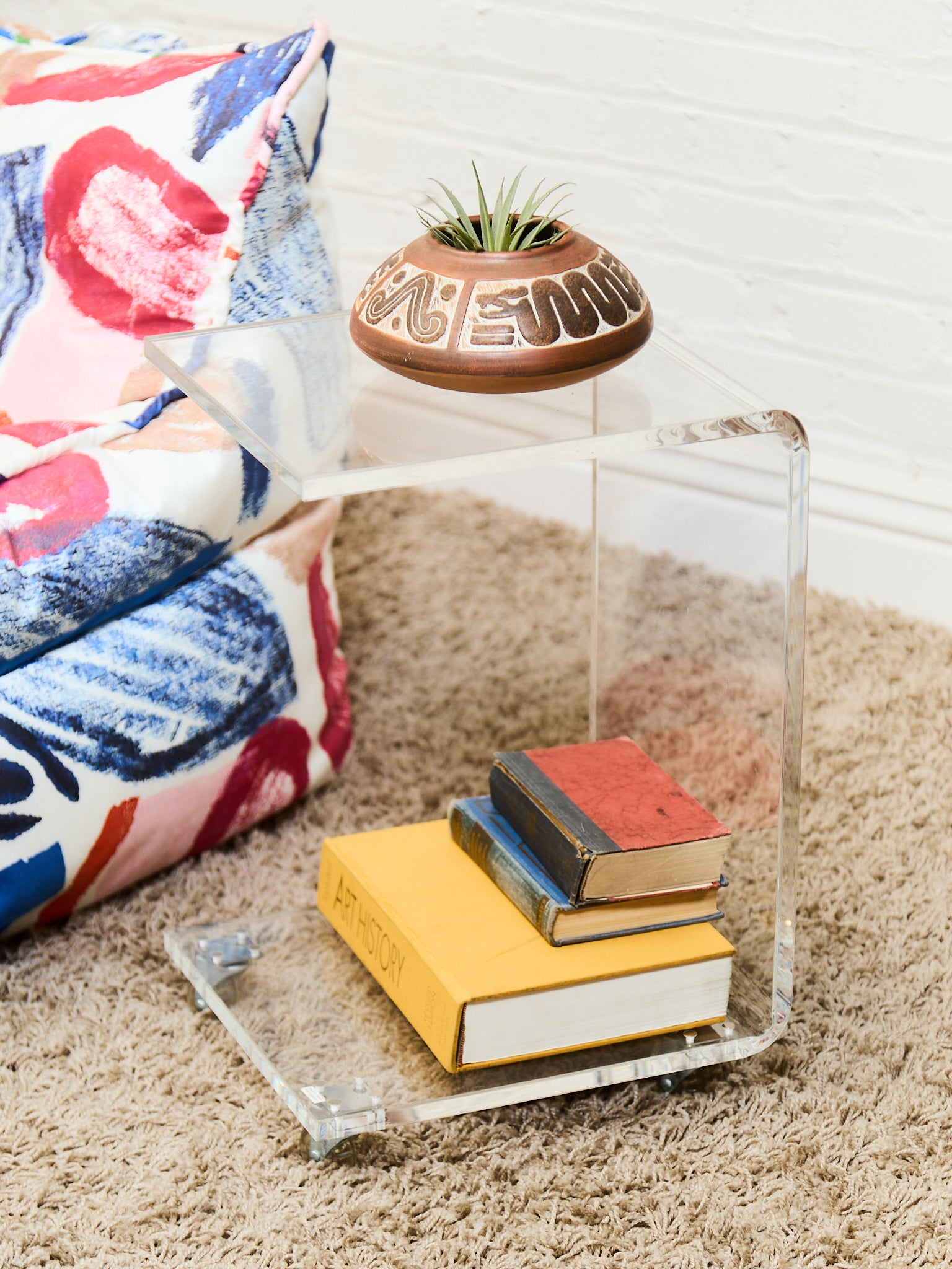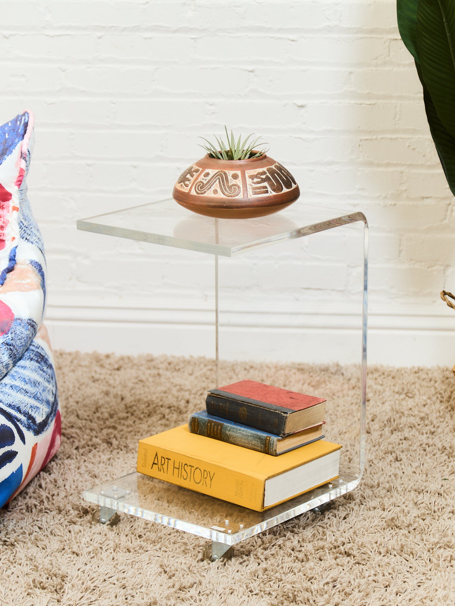 Lucite Side Table with Wheels