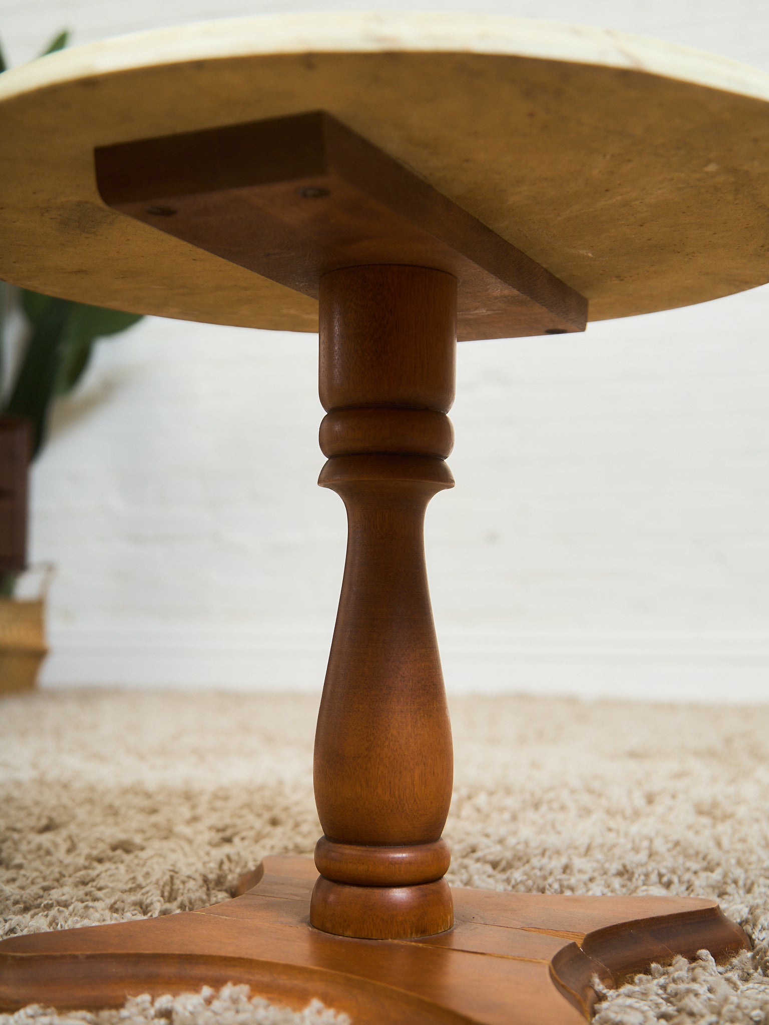Traventine Round pedestal Vintage Side Table