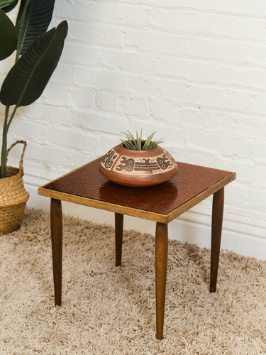 • Mid-Century Modern Wood Side Table with Recessed Tray Top