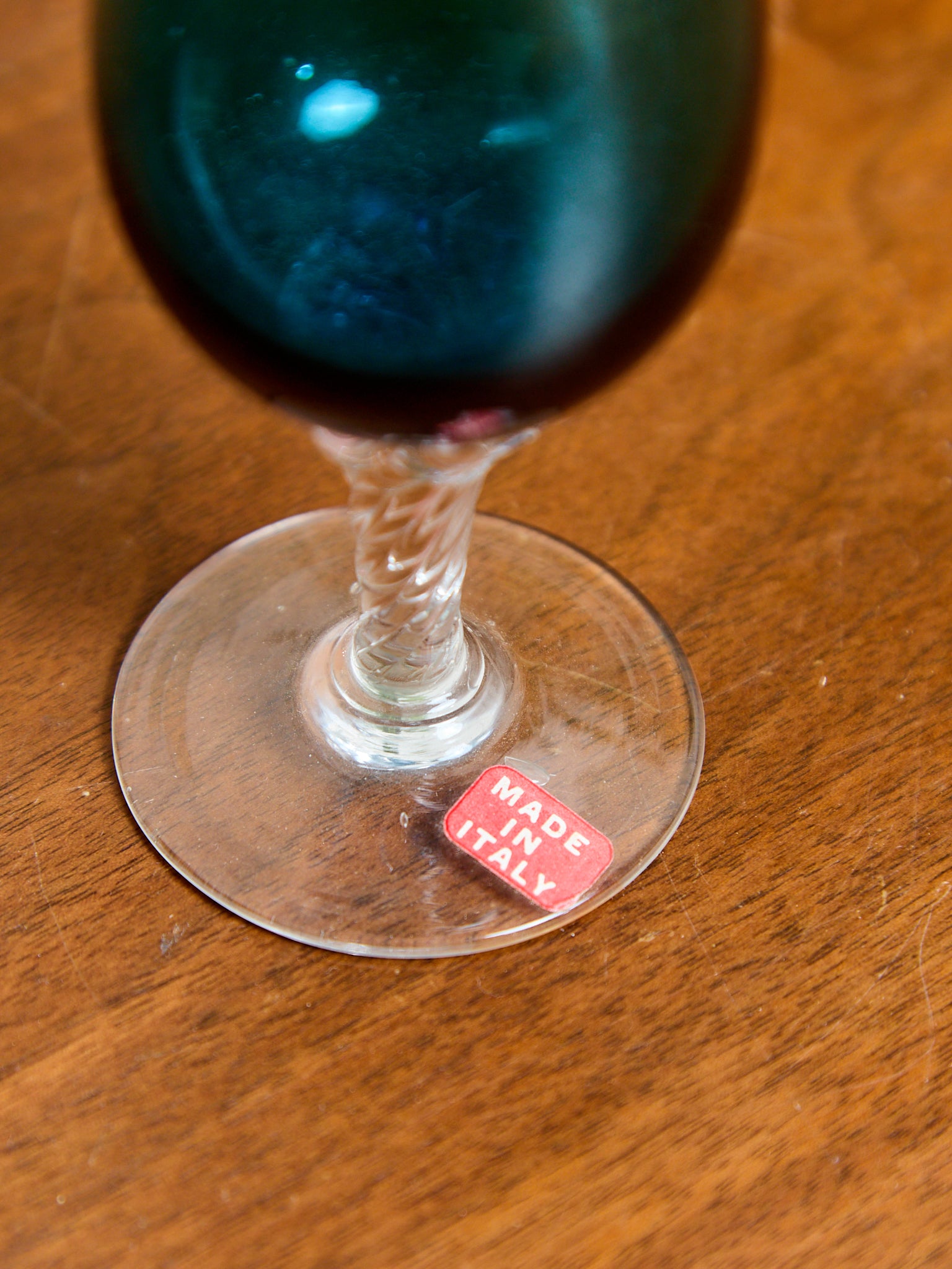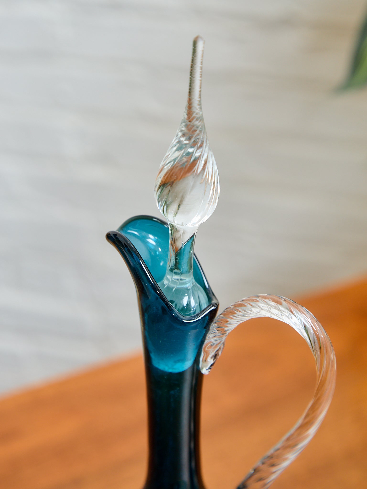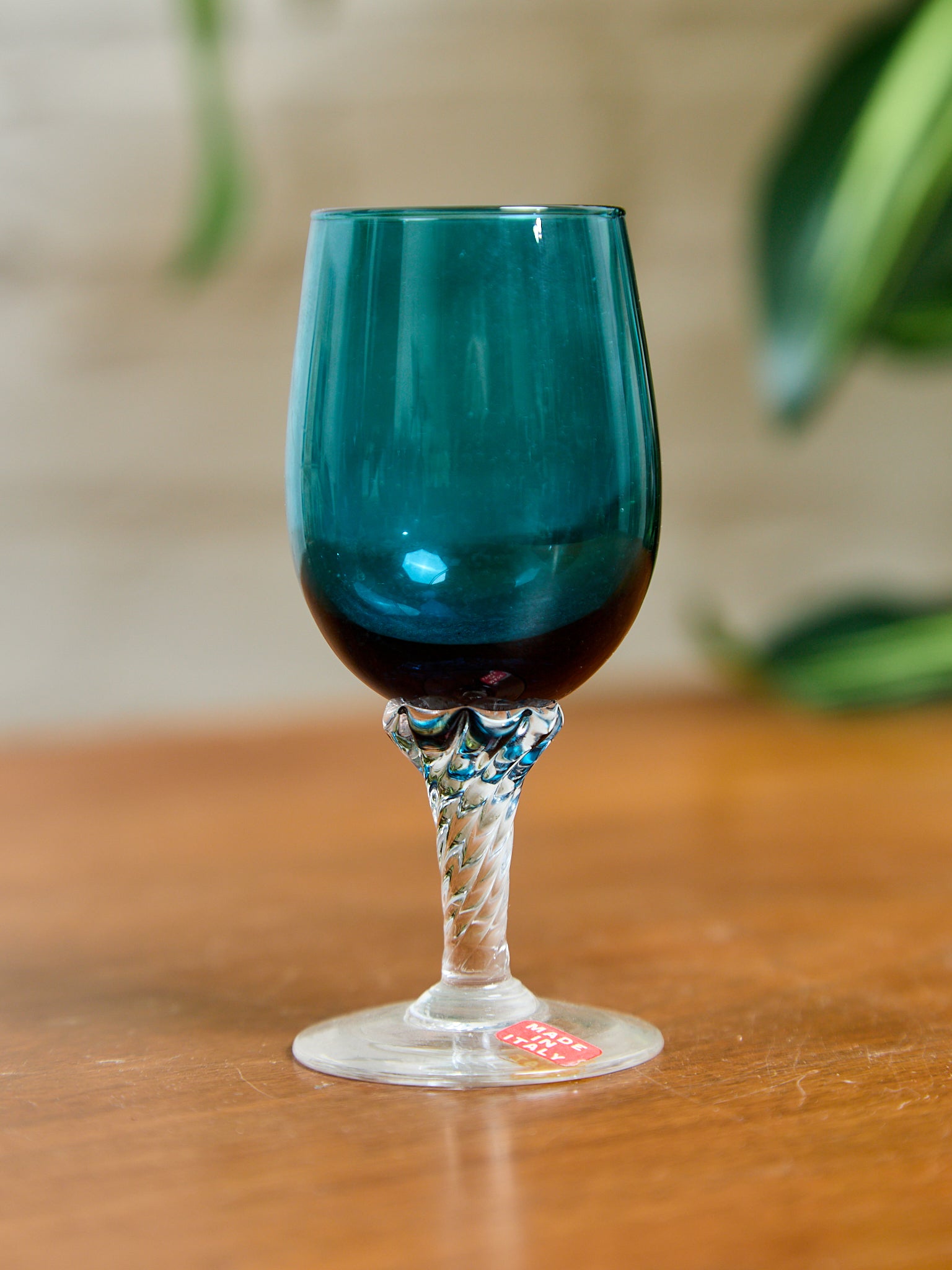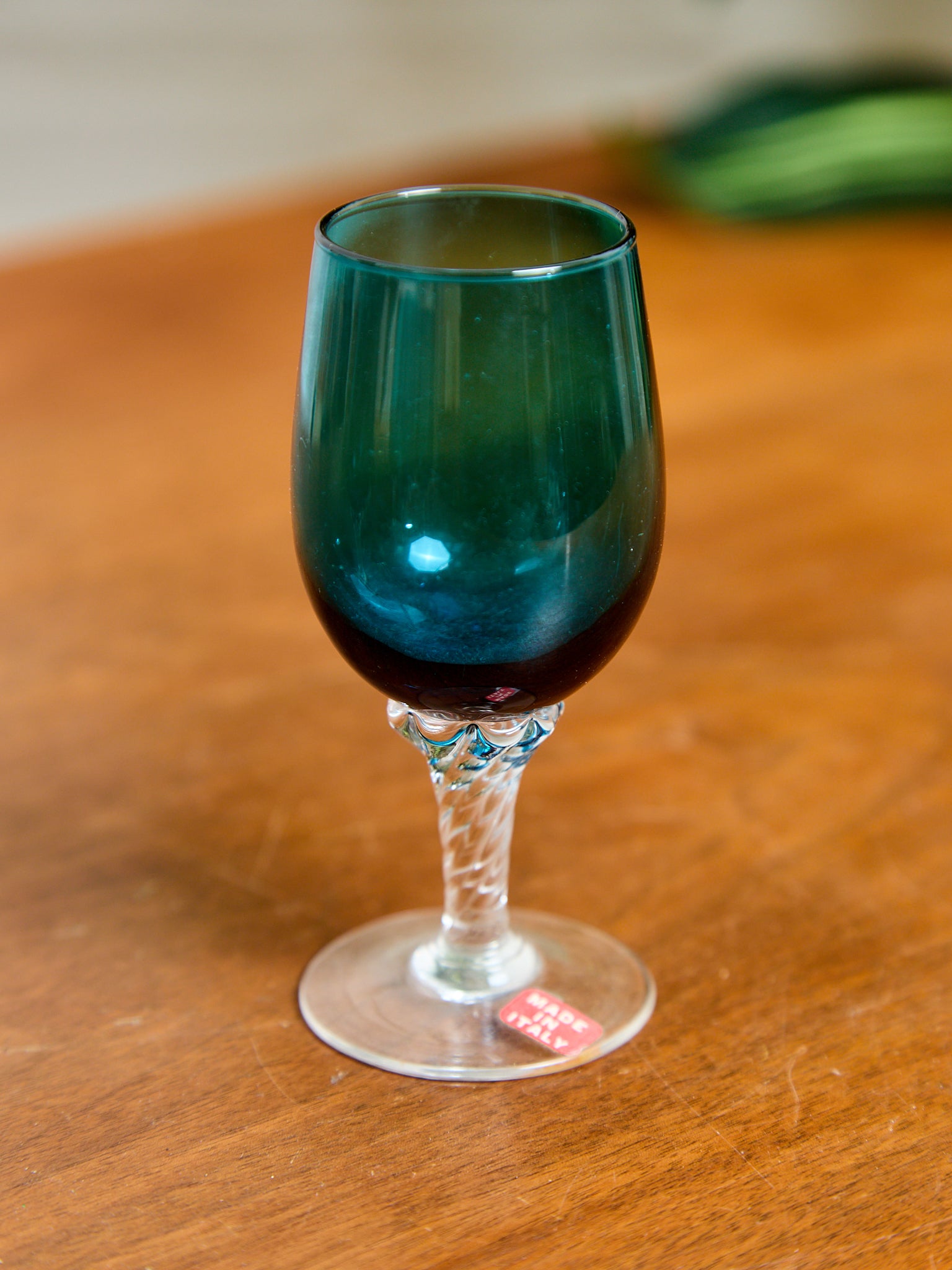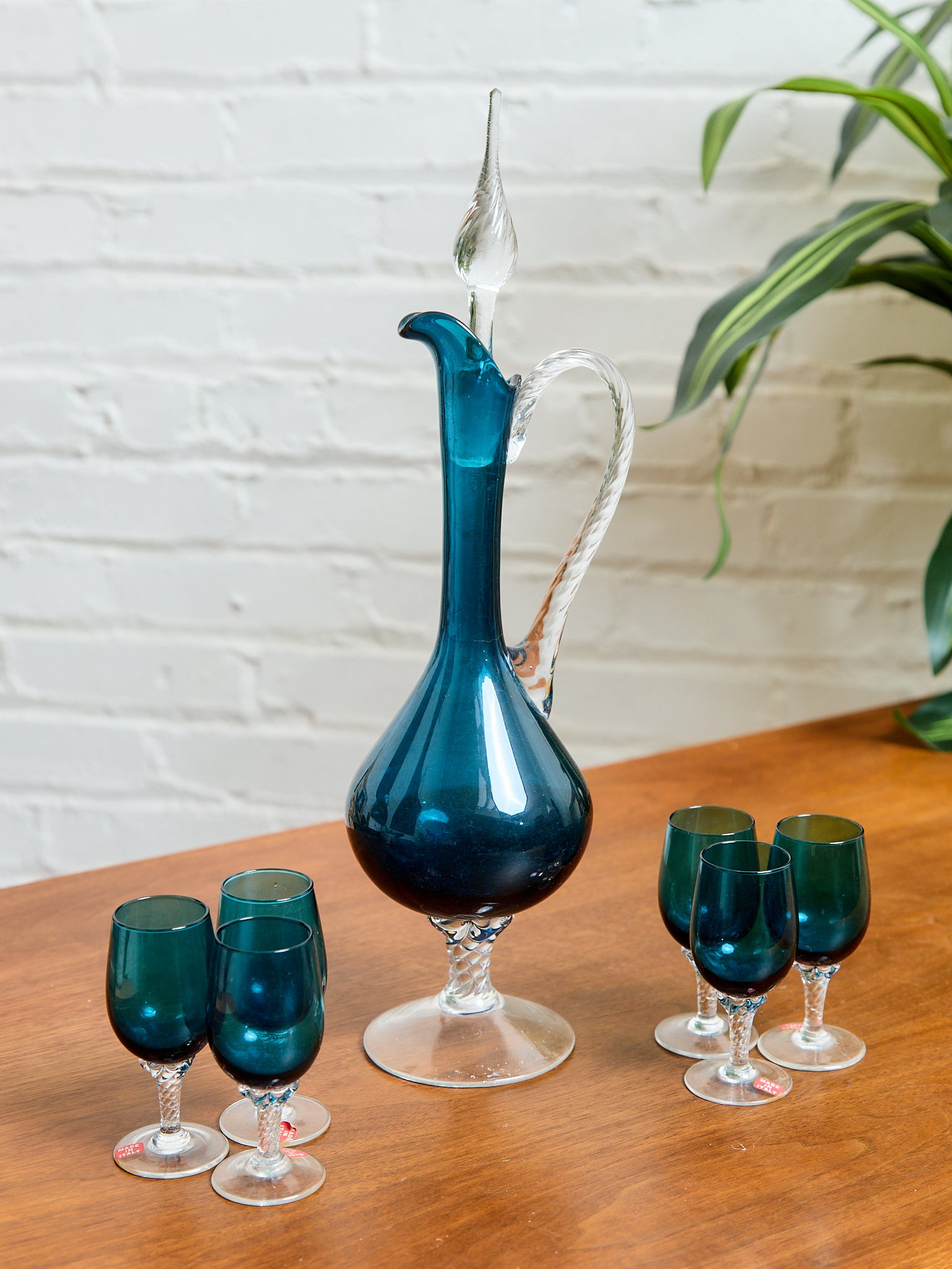 Teal Empoli Italian Glass Decanter and 6 Glasses