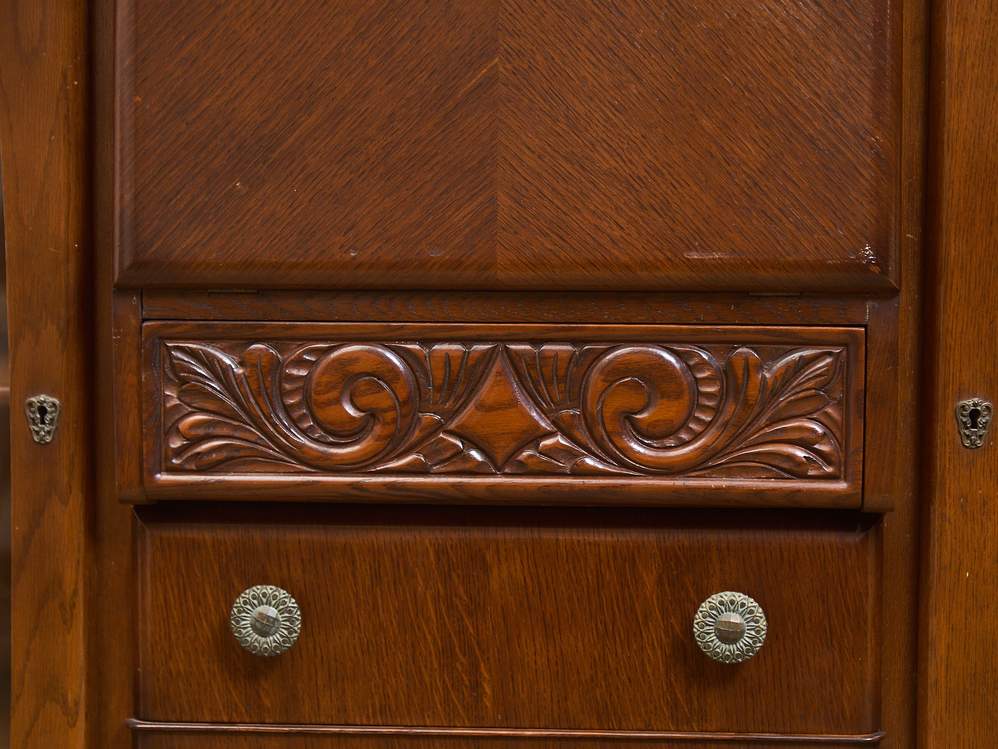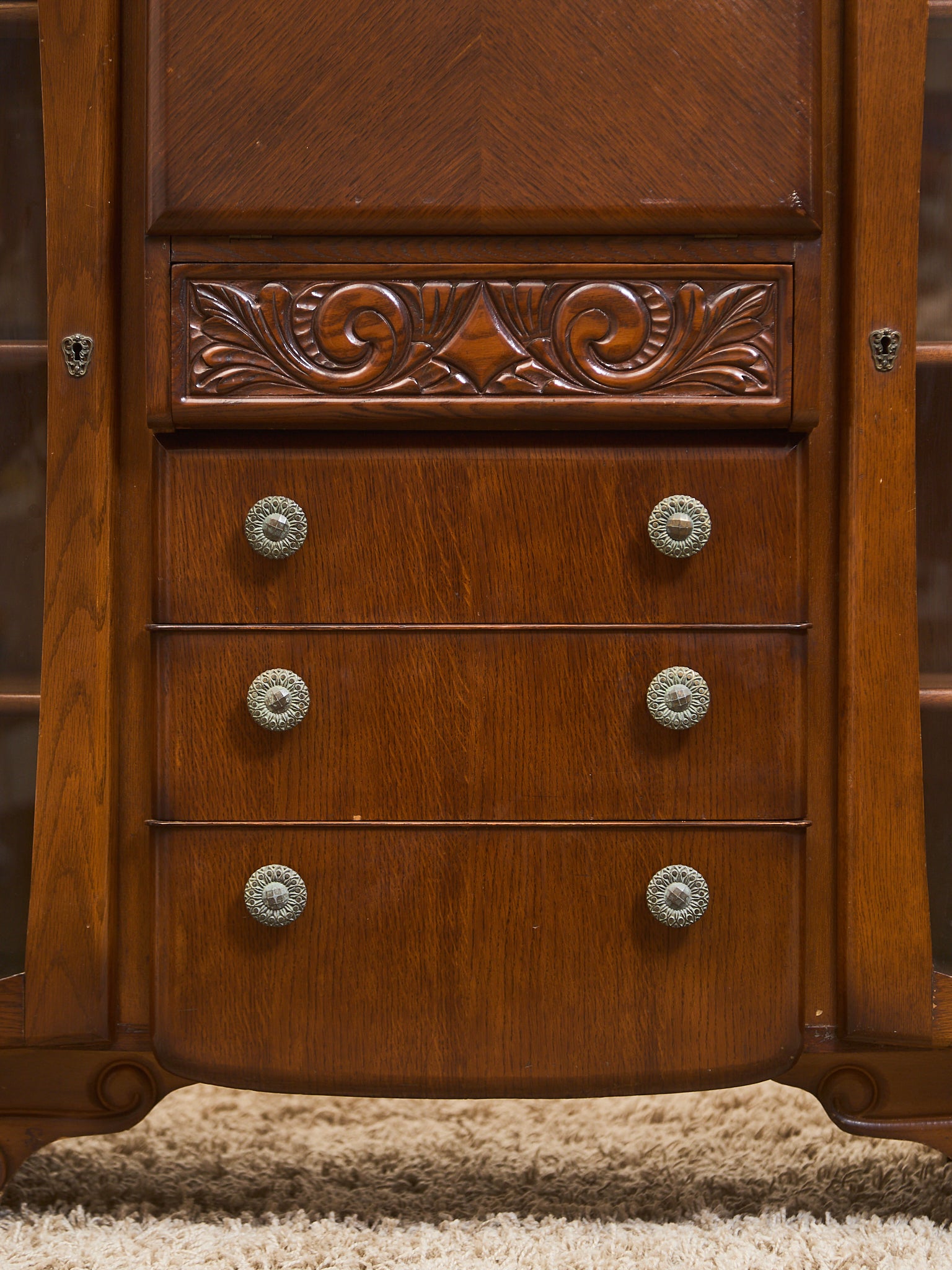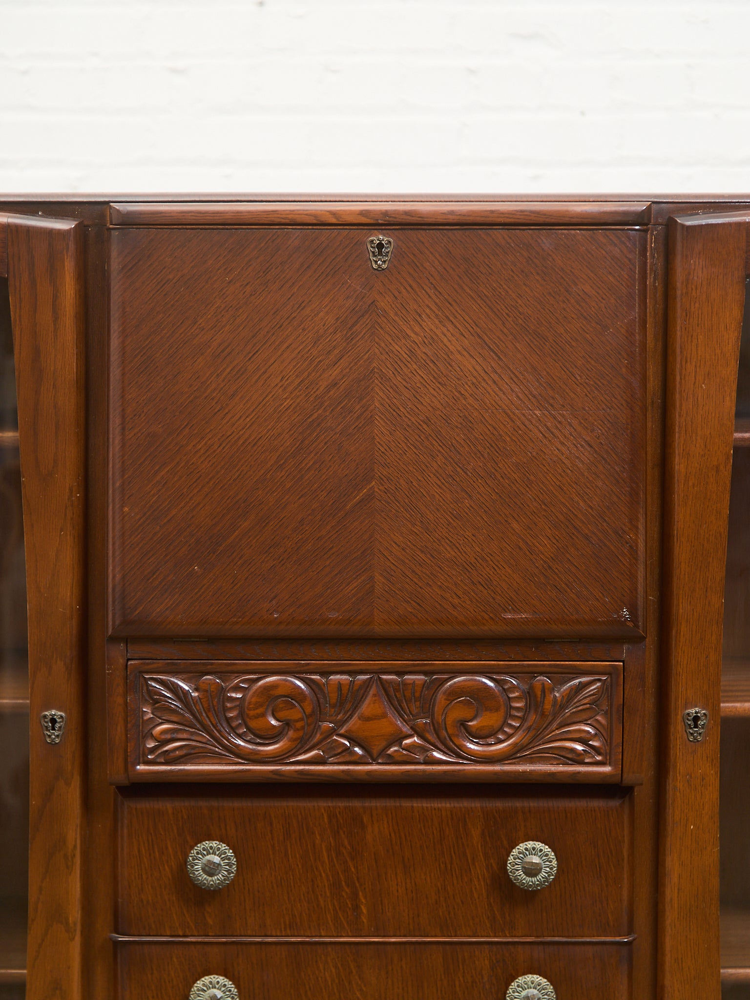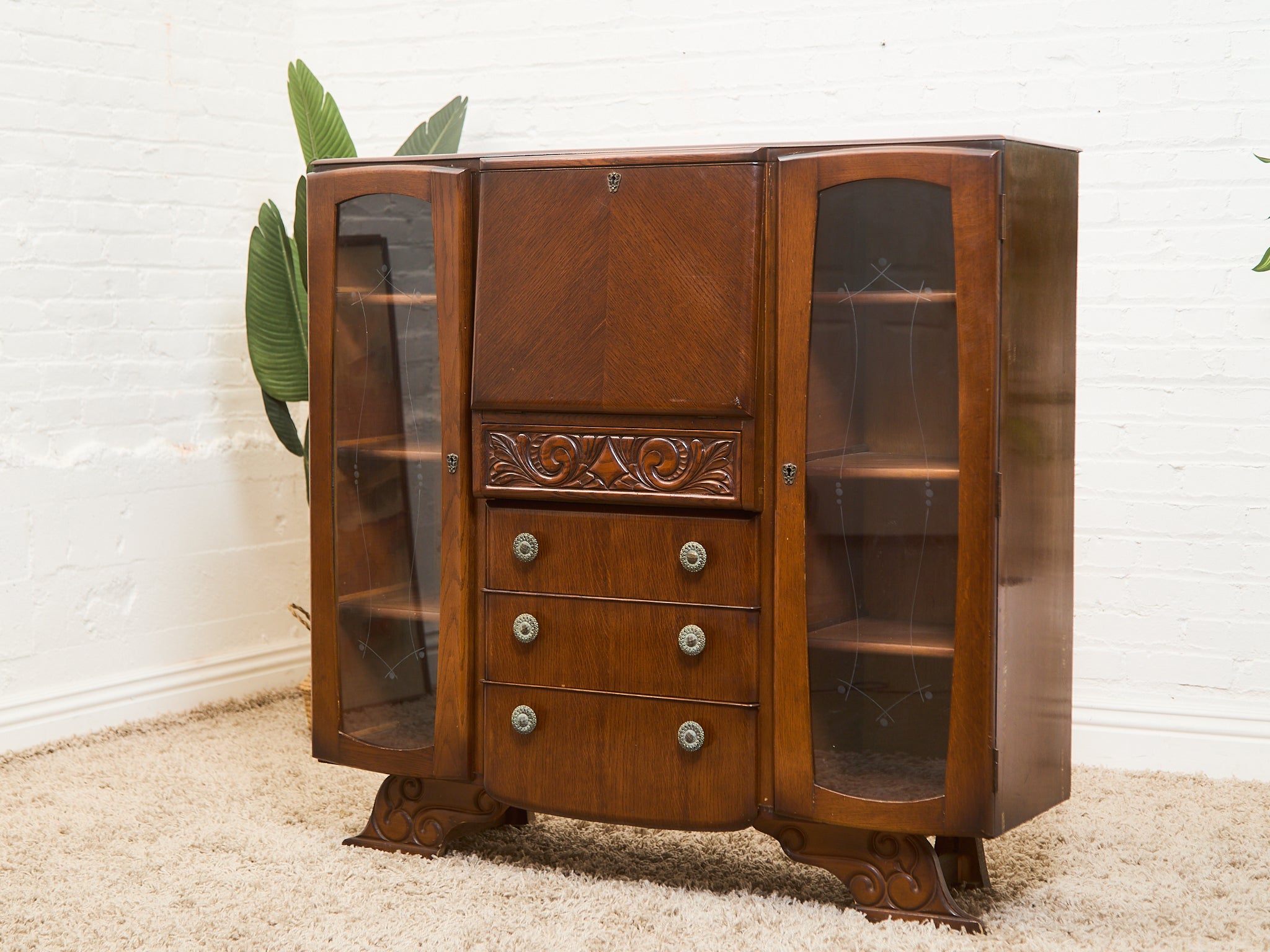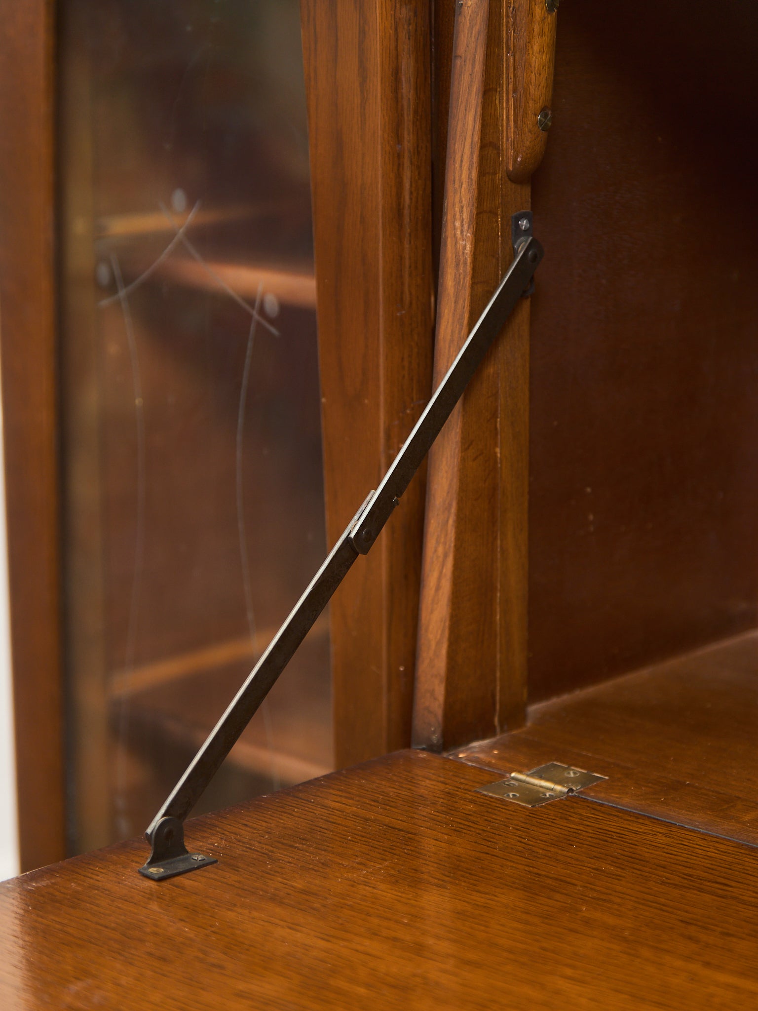 English Art Deco Vintage Oak Secretary Bar Bookcase