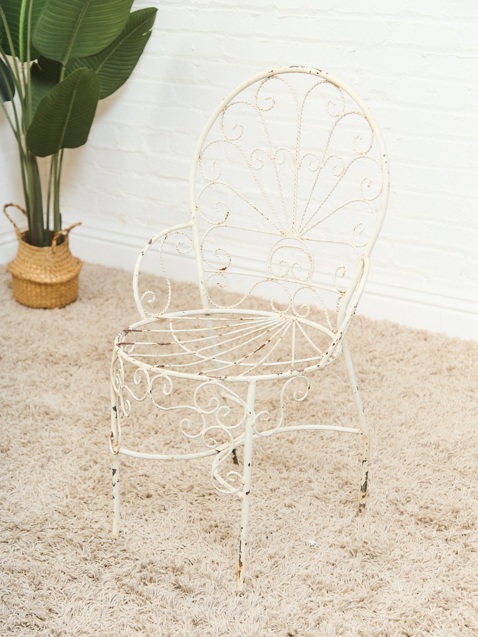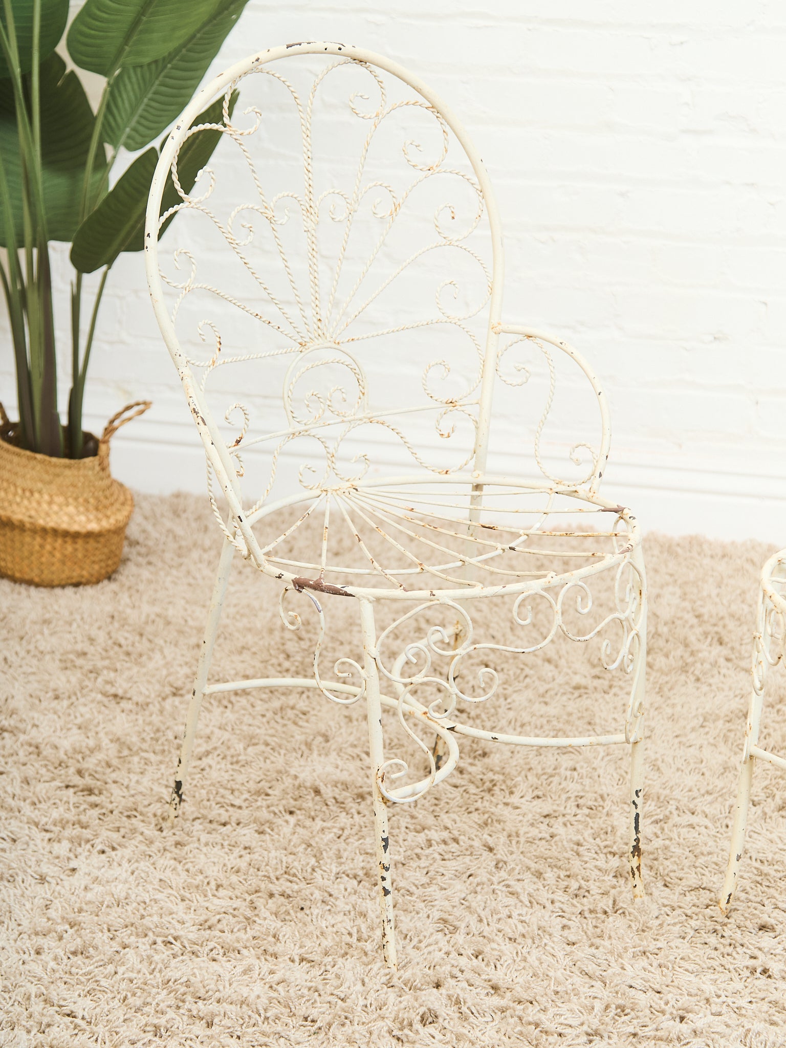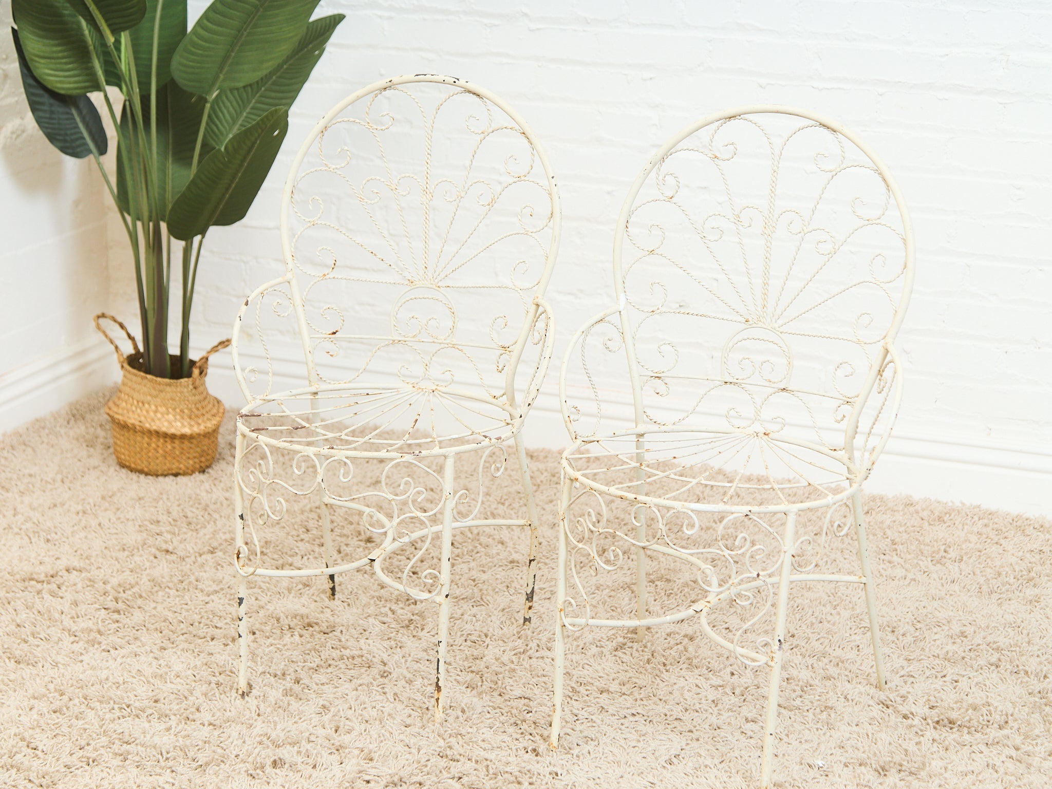Mid-Century Wrought Iron Peacock Chairs Set