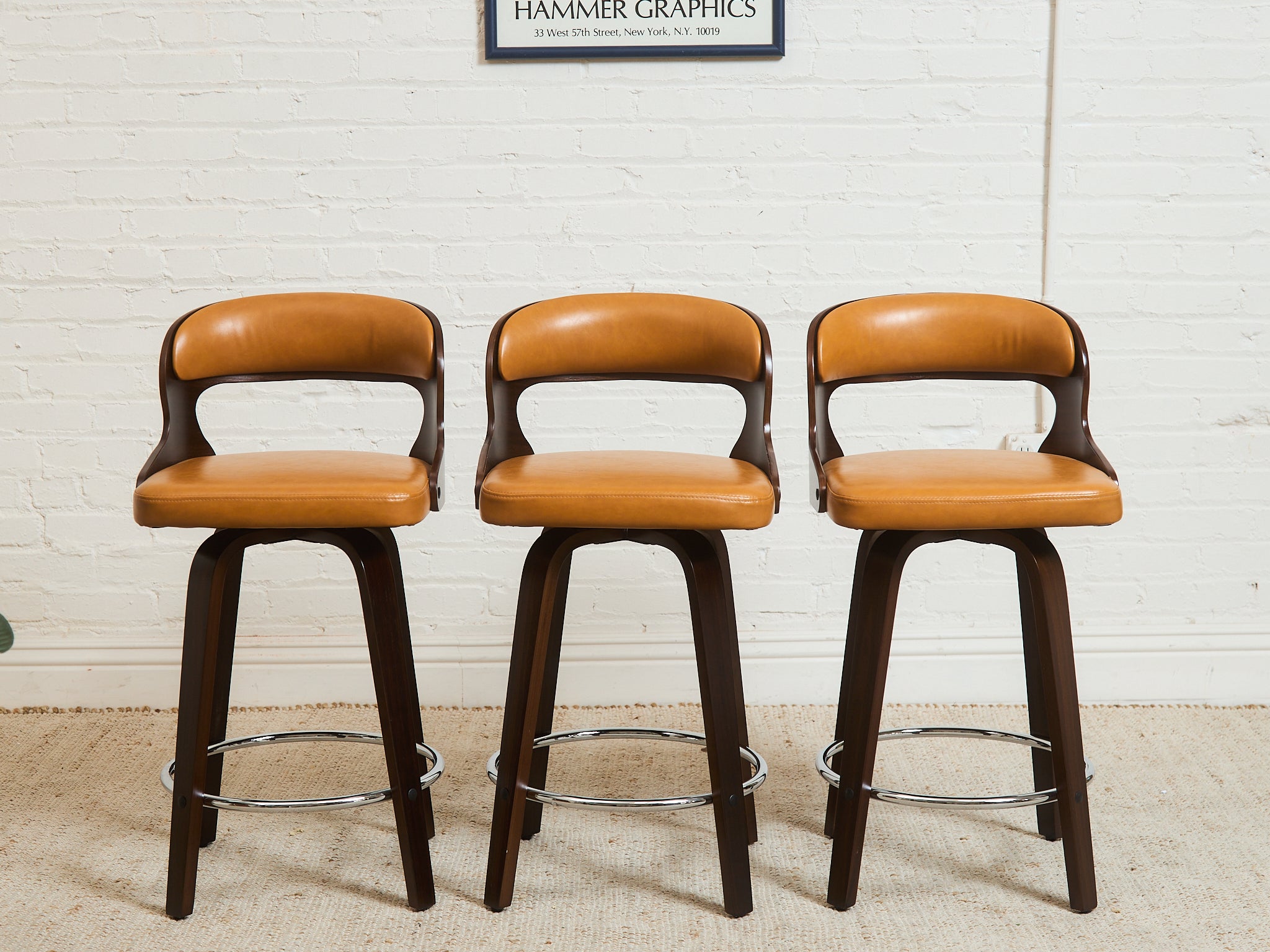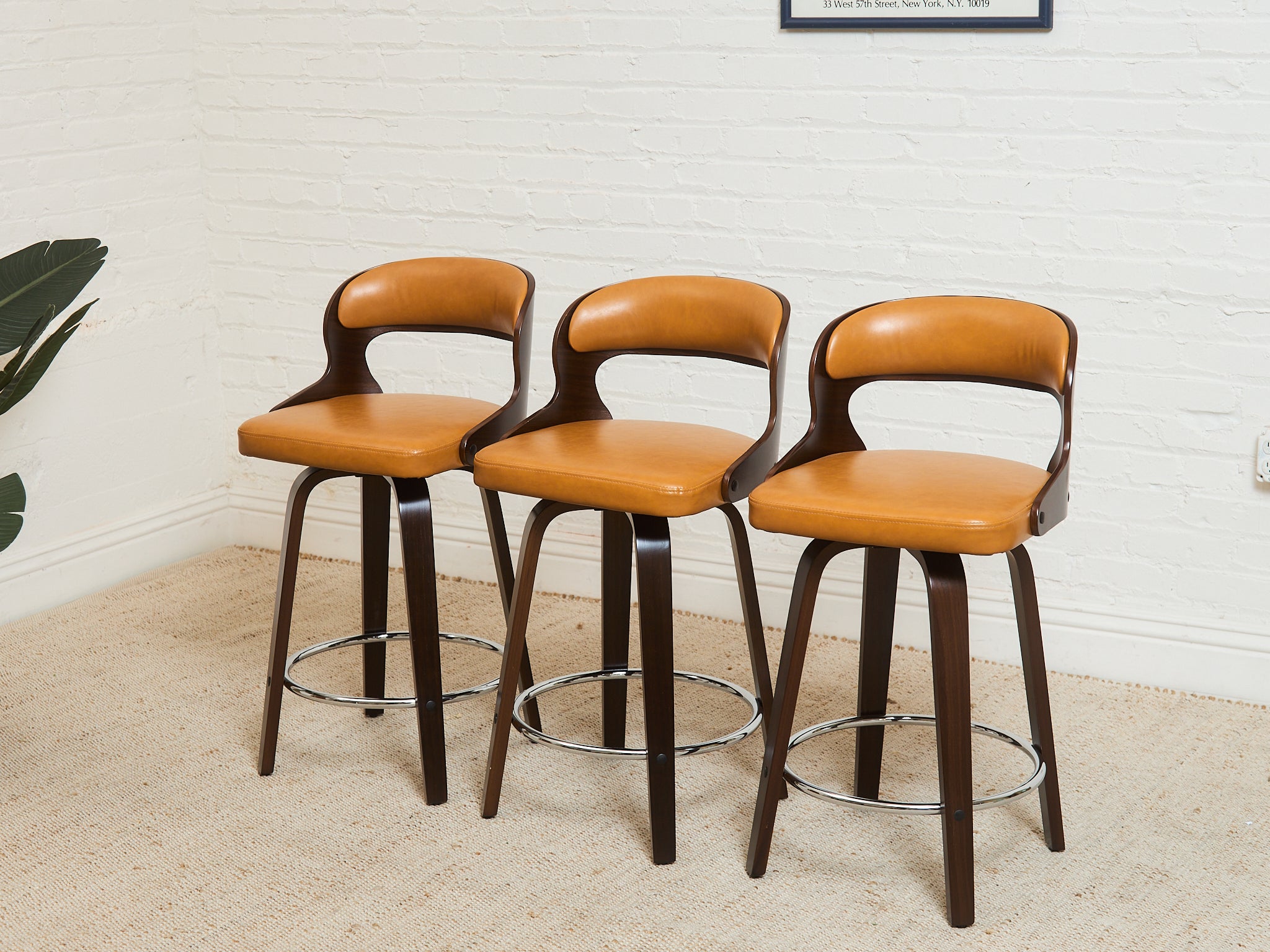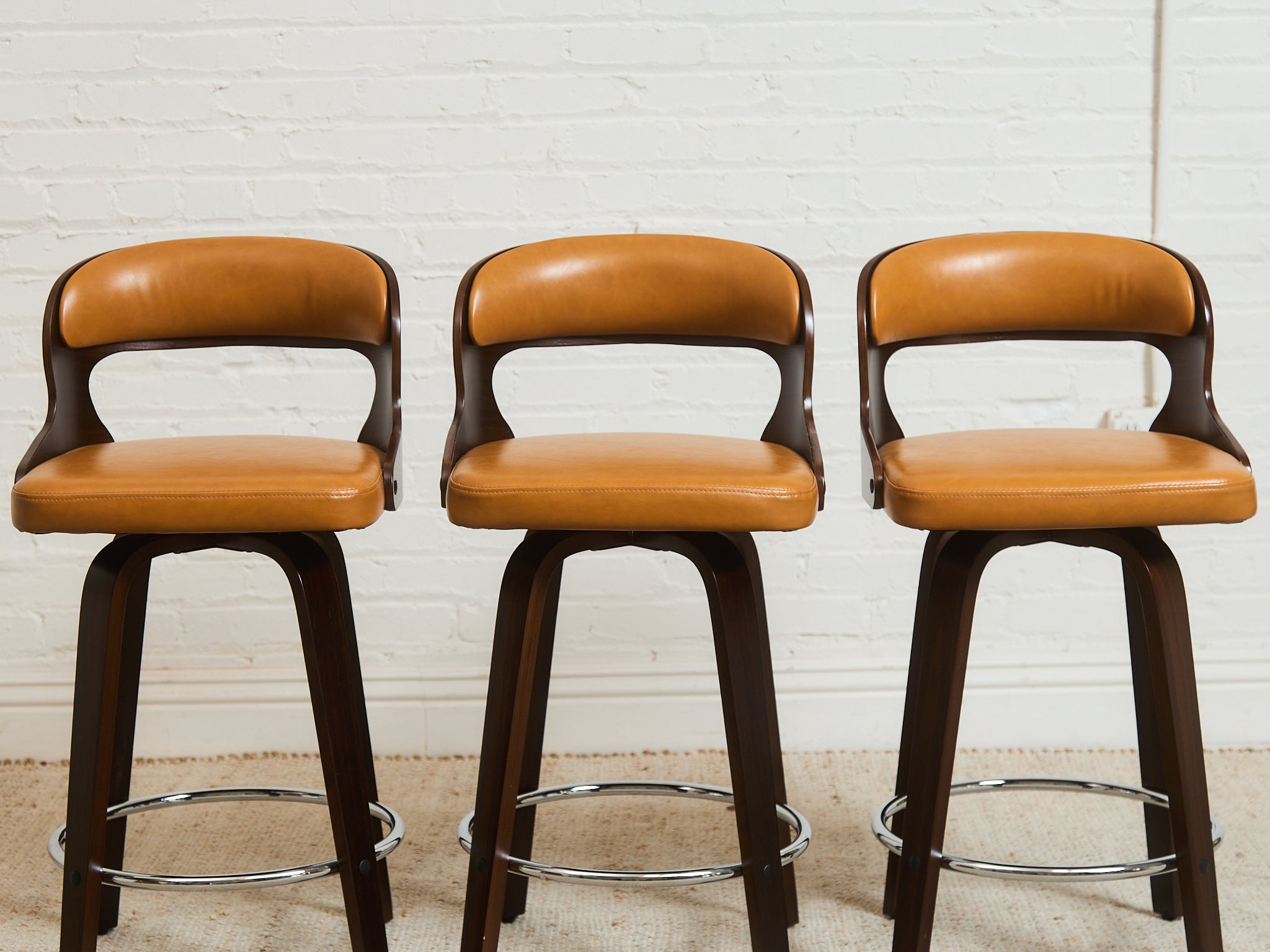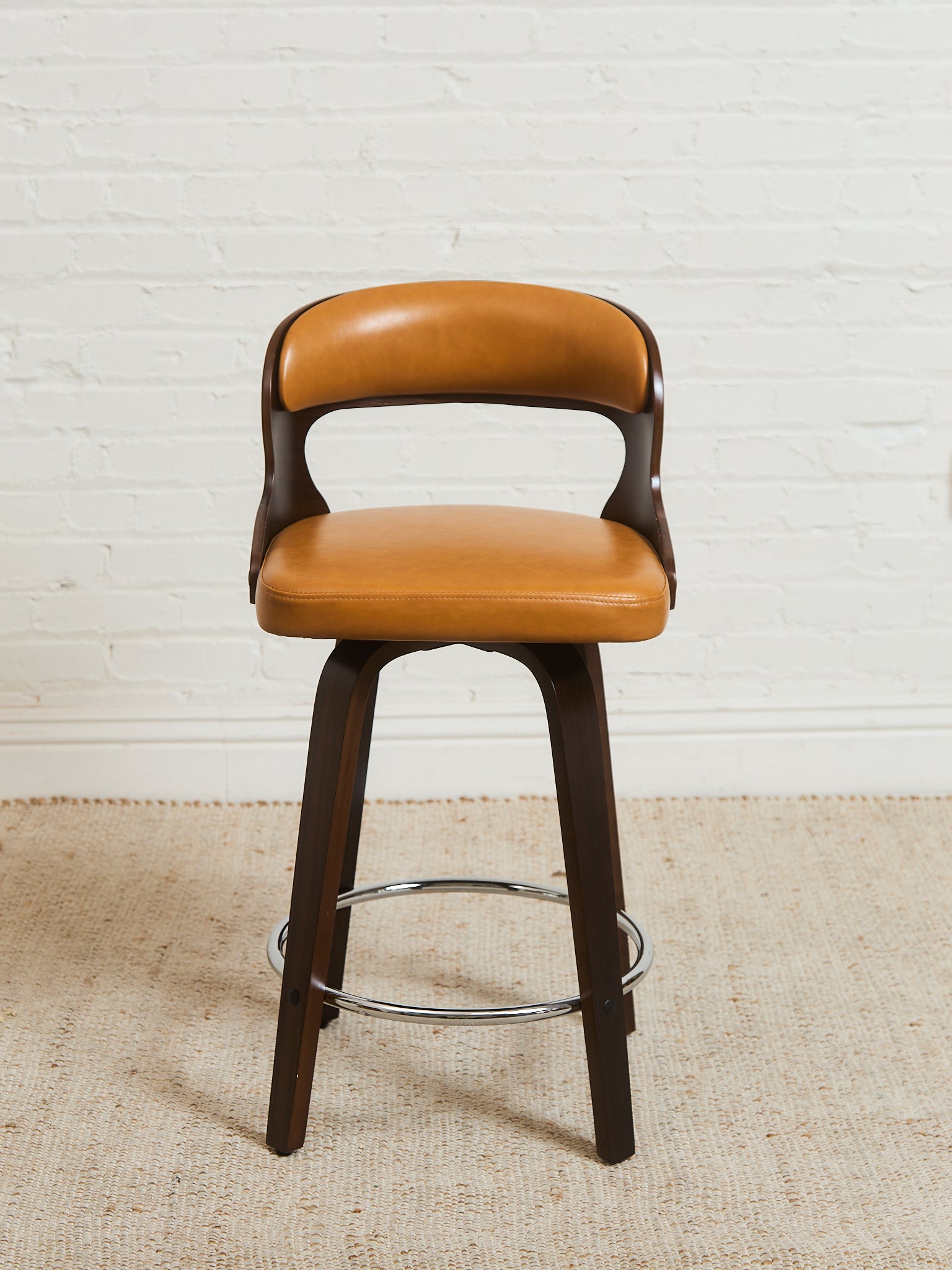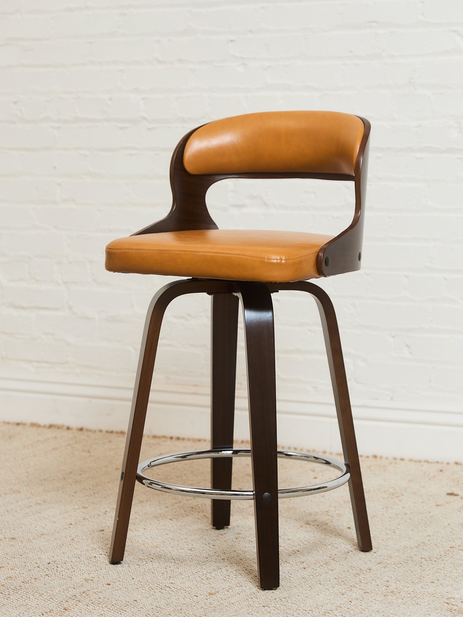 Curved Barstool in Caramel Brown Fabric