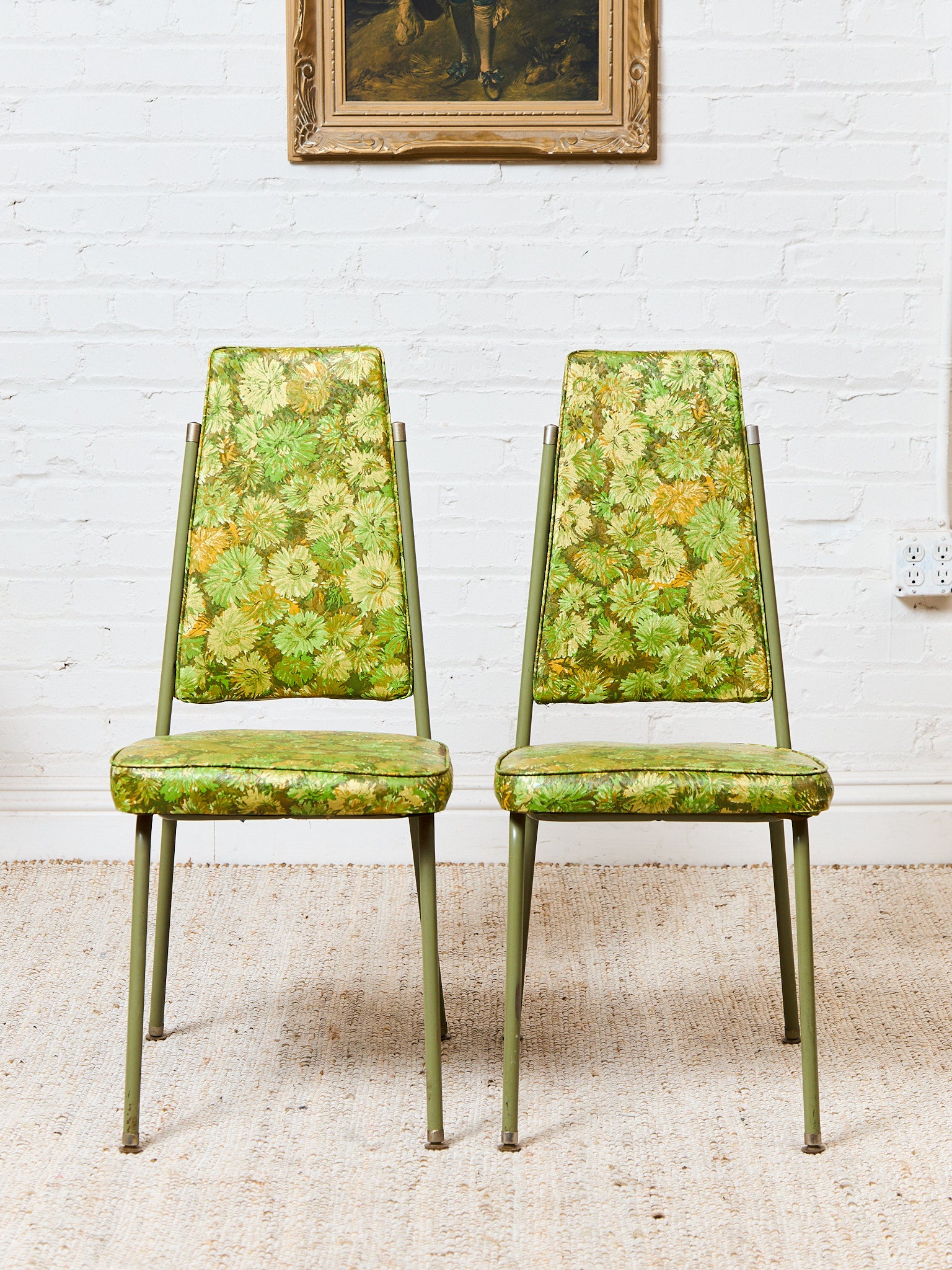Pair of Green Floral Dinette Chairs