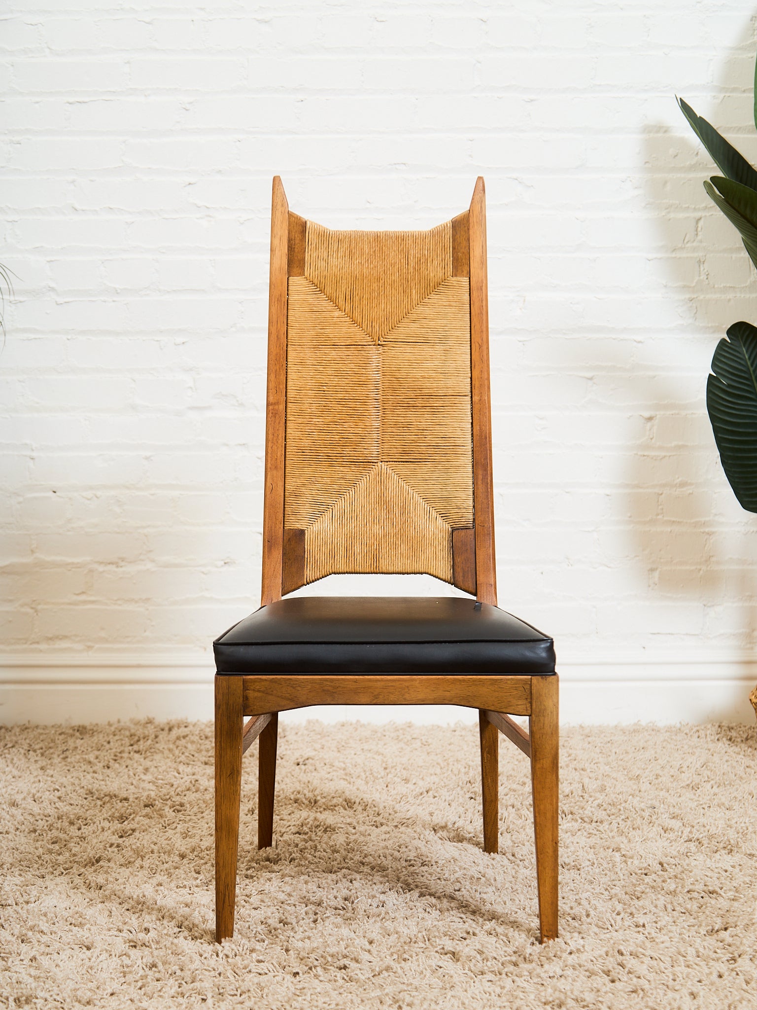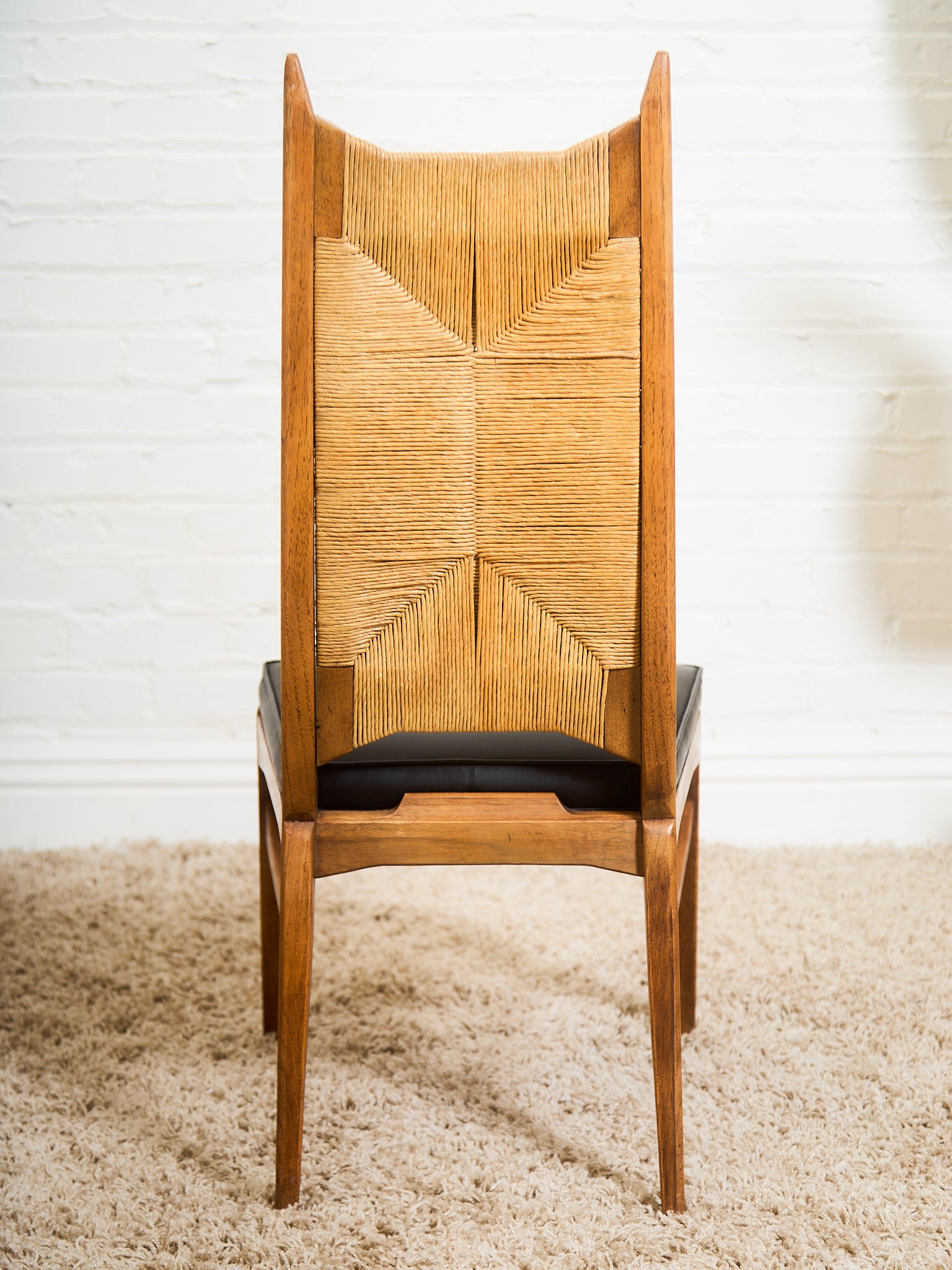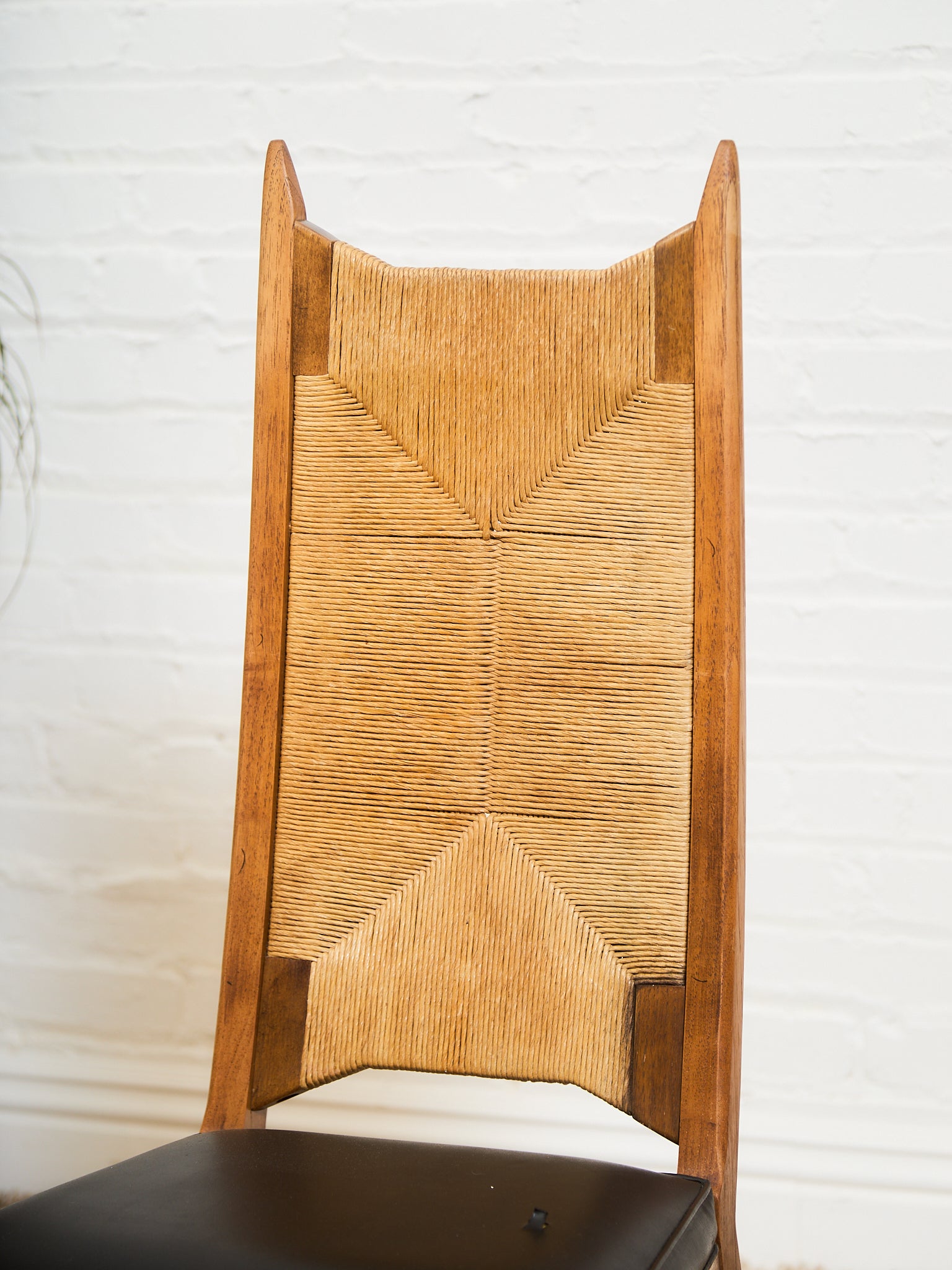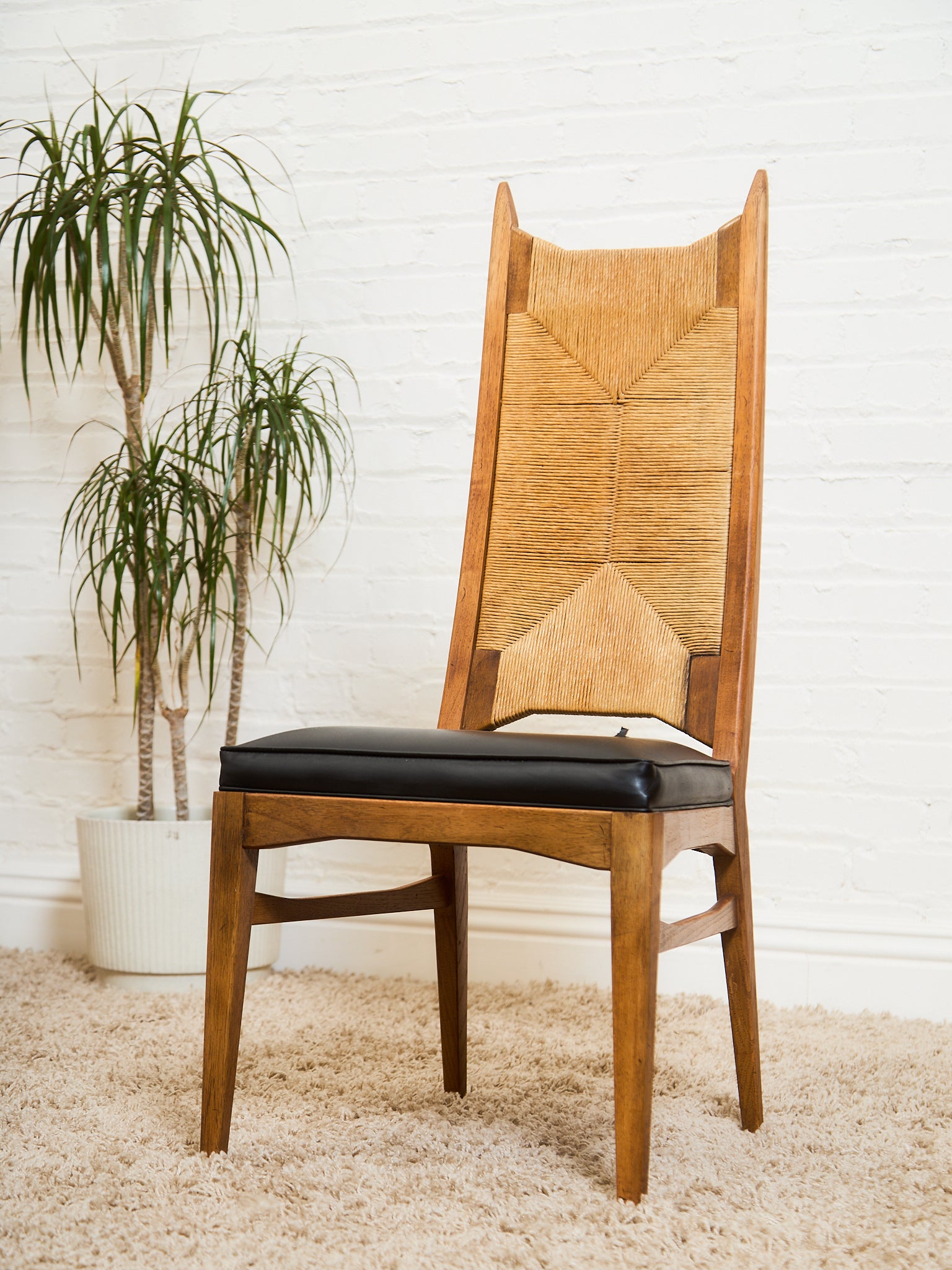 Rare Set of 4 Woven Mid Century Highback Dining chairs by Huntley