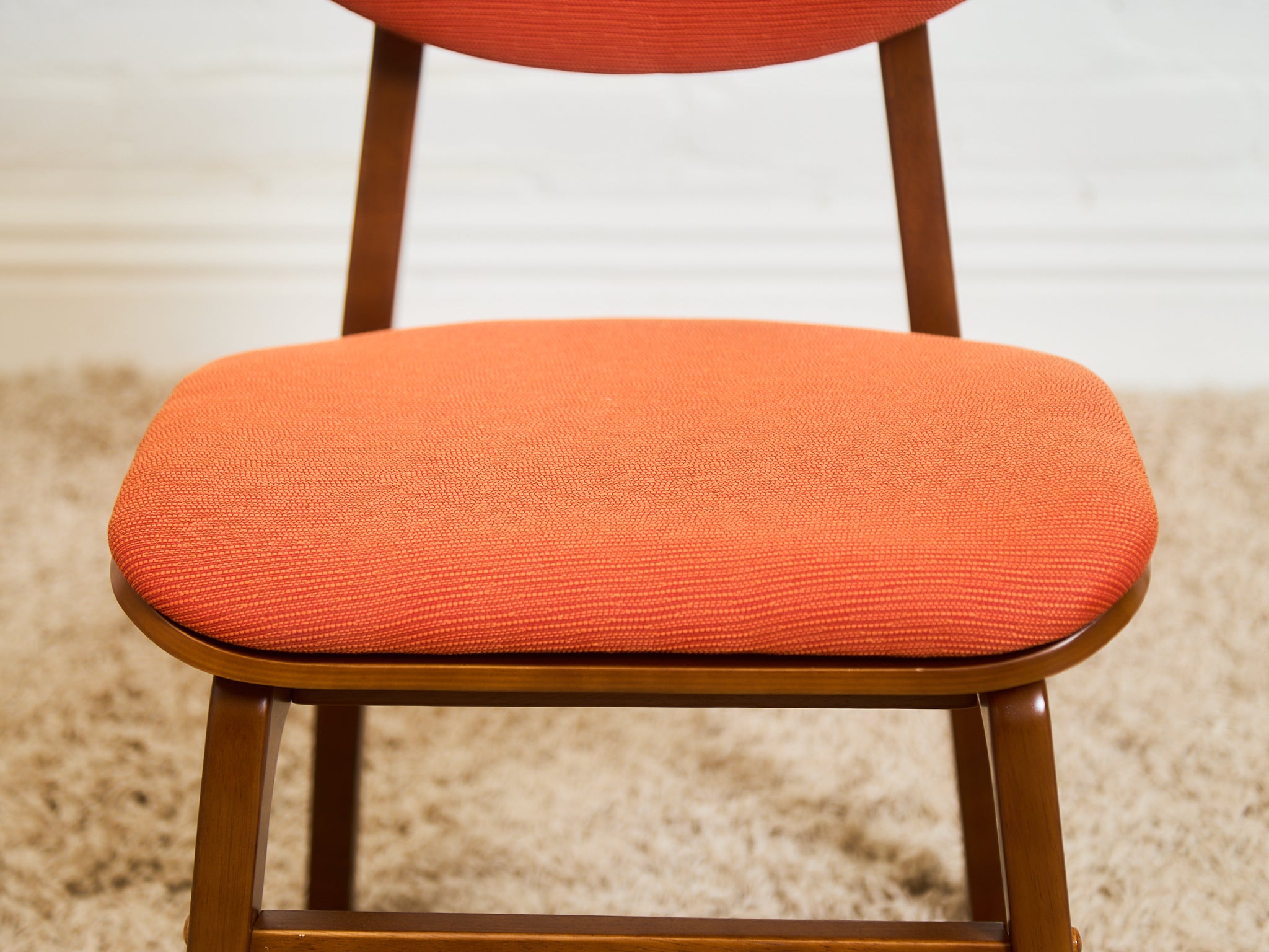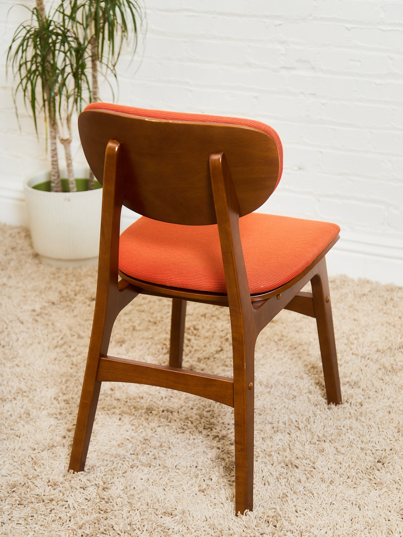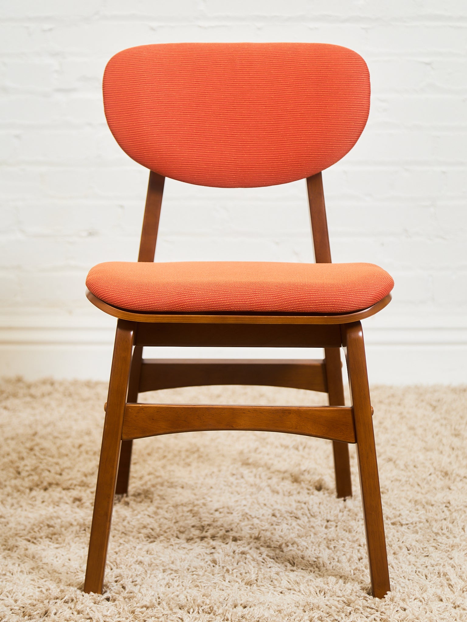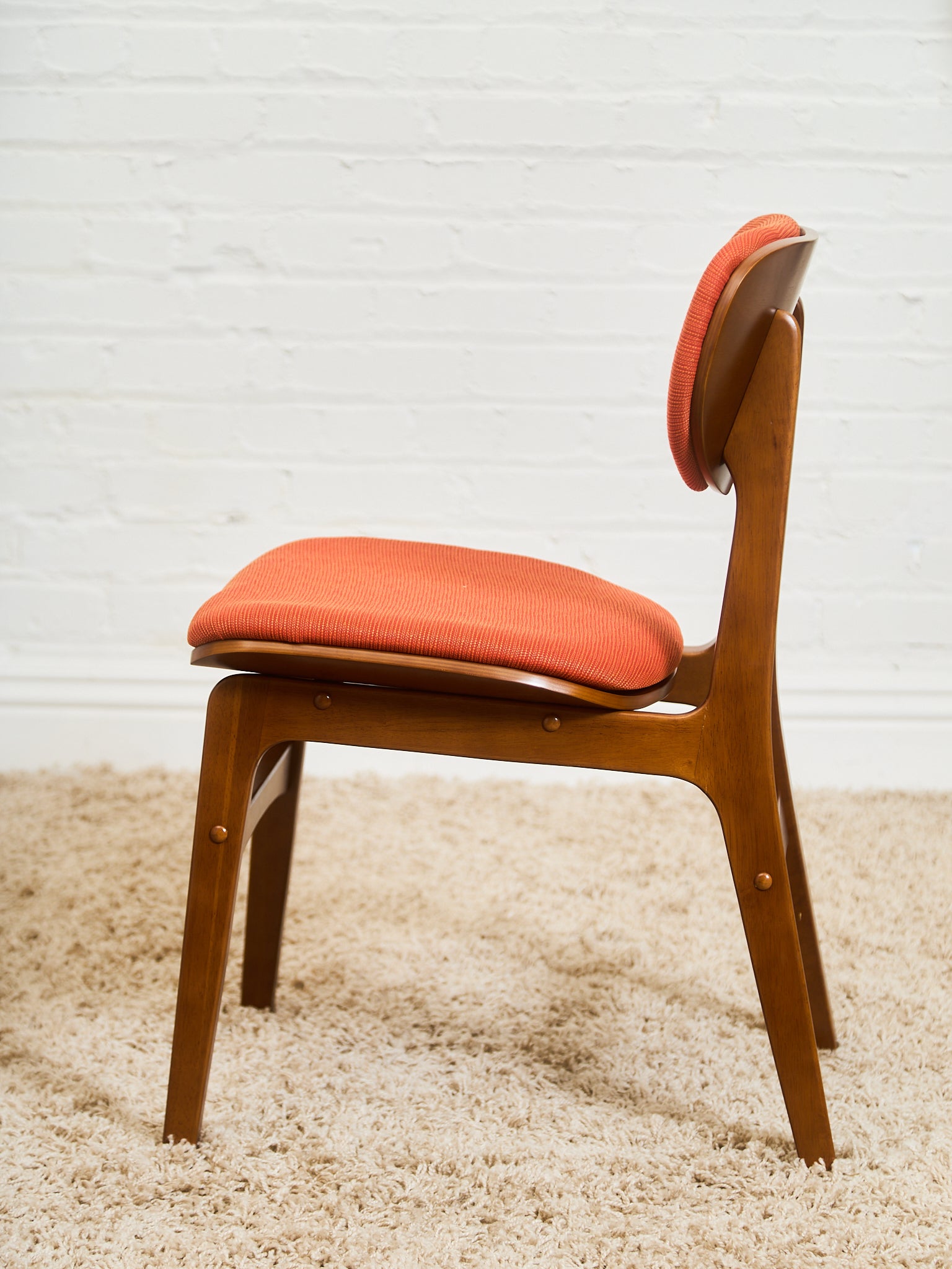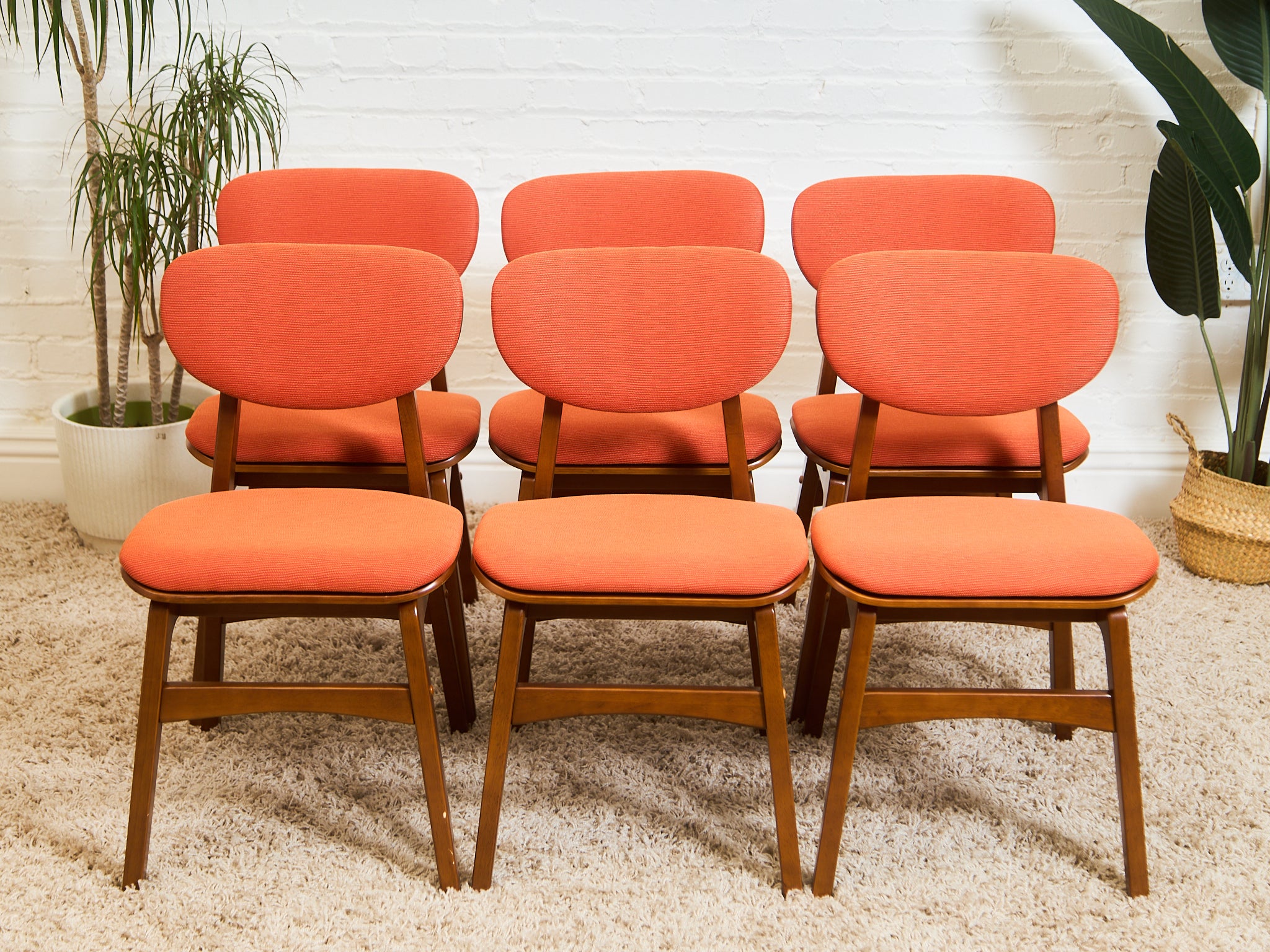 Set of 6 Mid-Century Modern Style Dining Chairs in Burnt Orange Upholstery