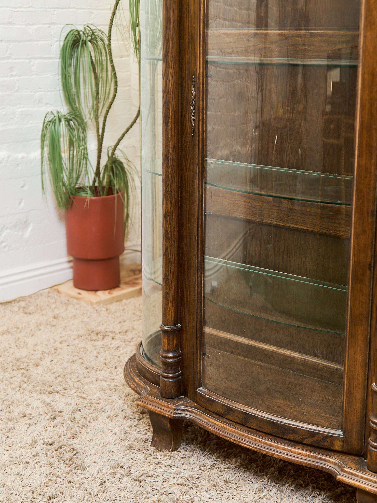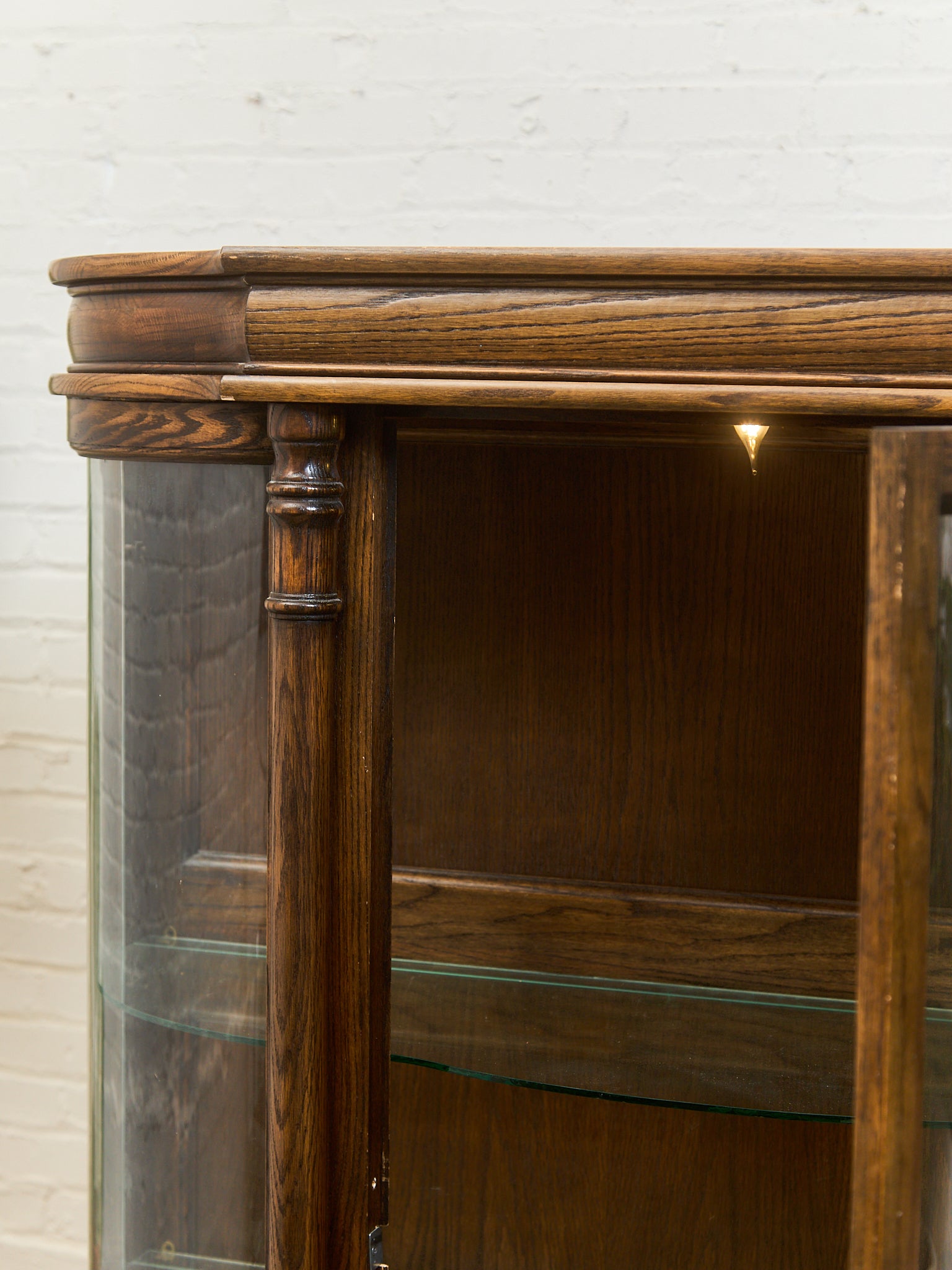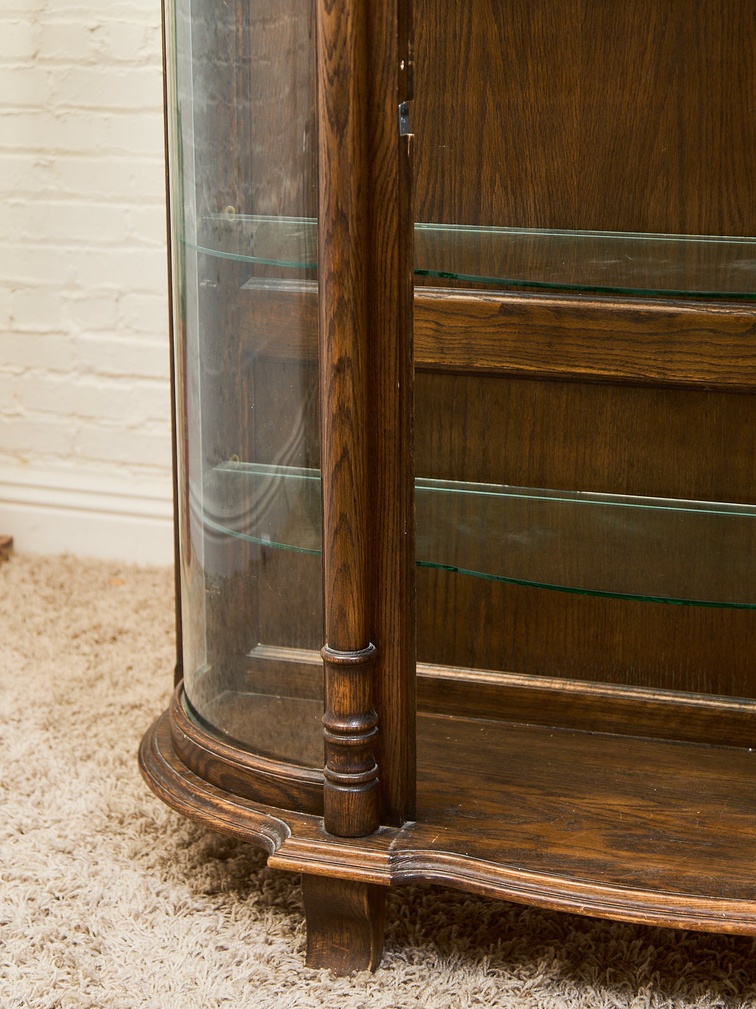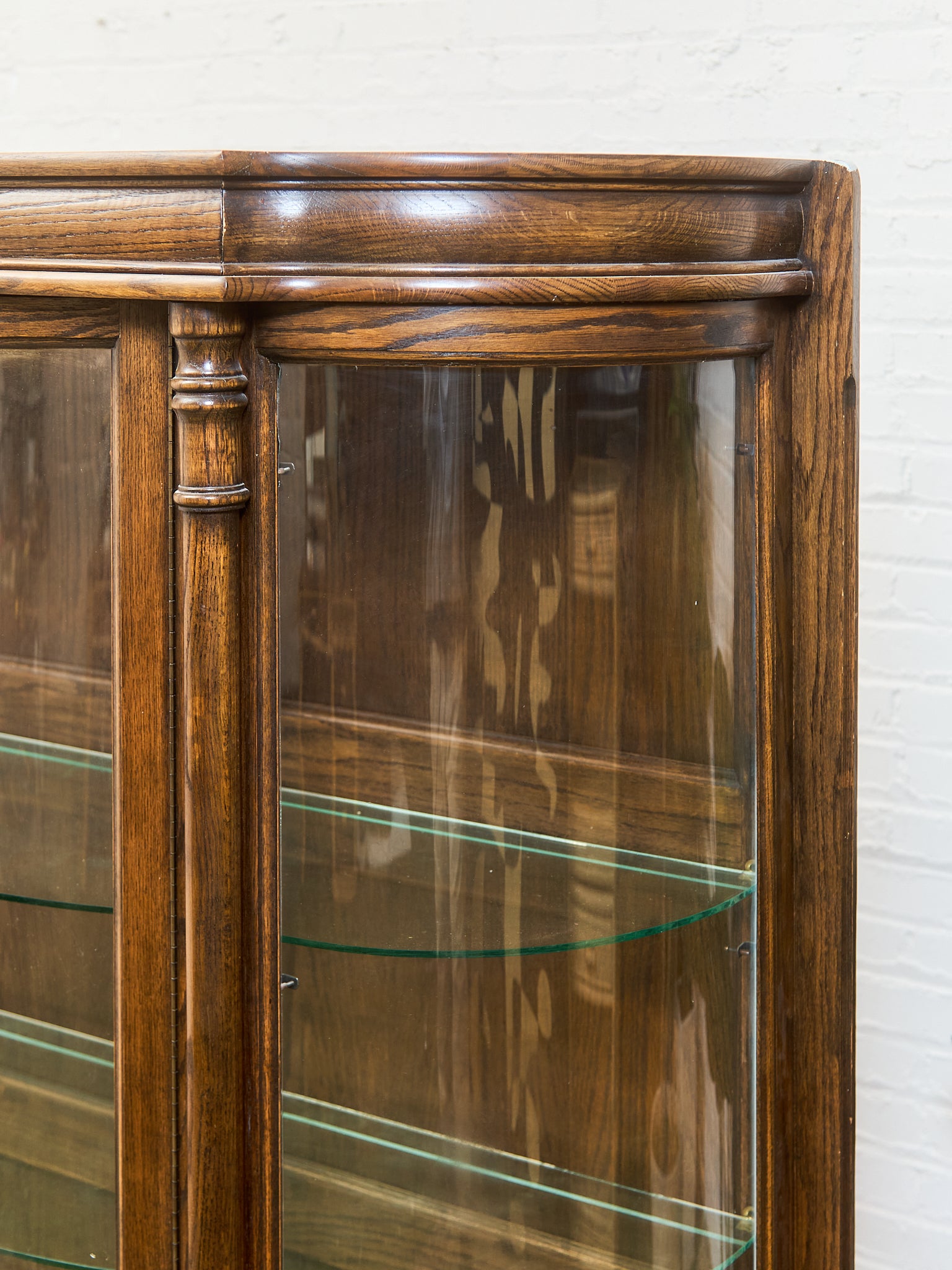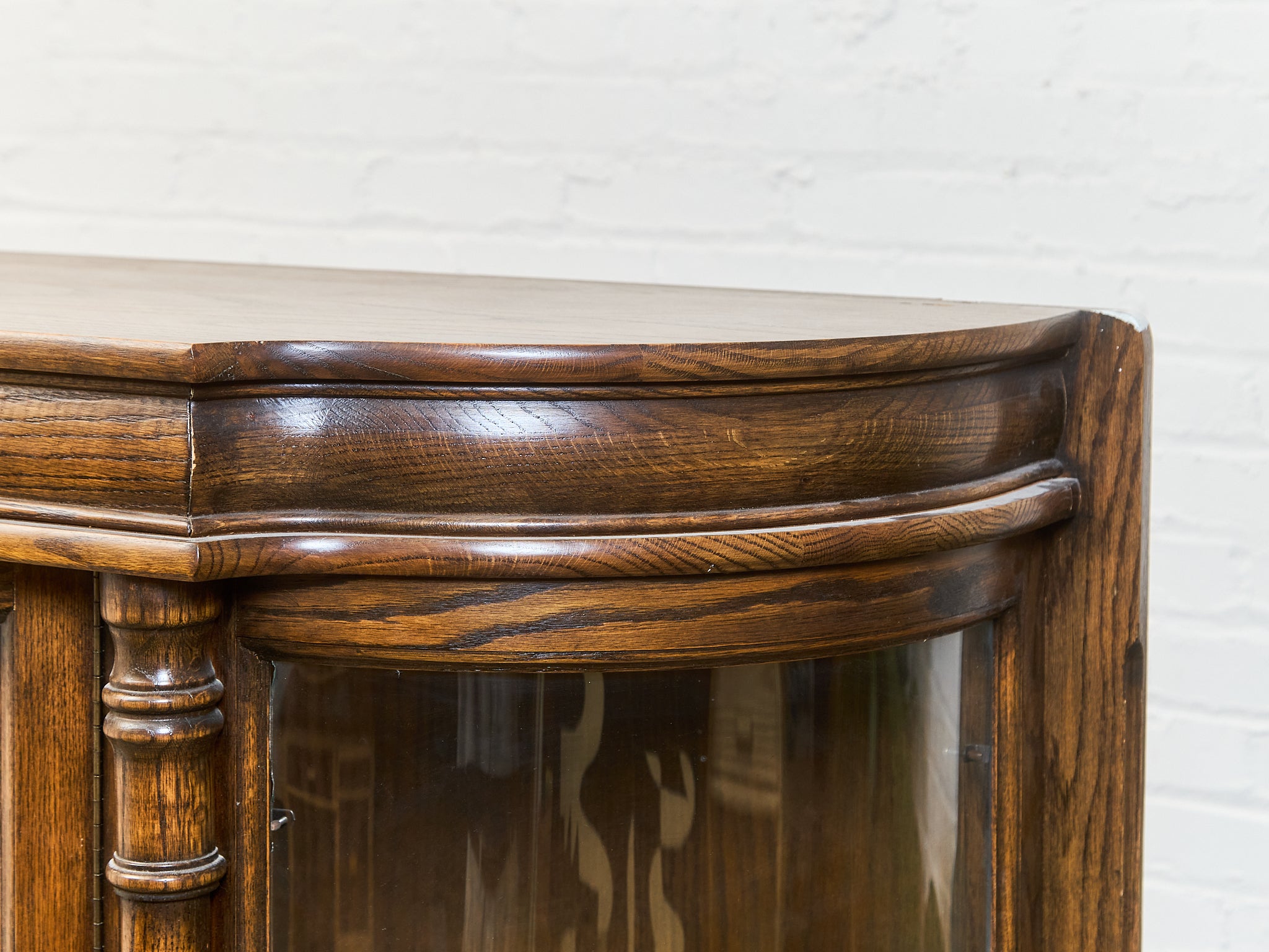 Antique Circa 1900 Bow Front Quarter Sawn Oak China Cabinet Hutch Display