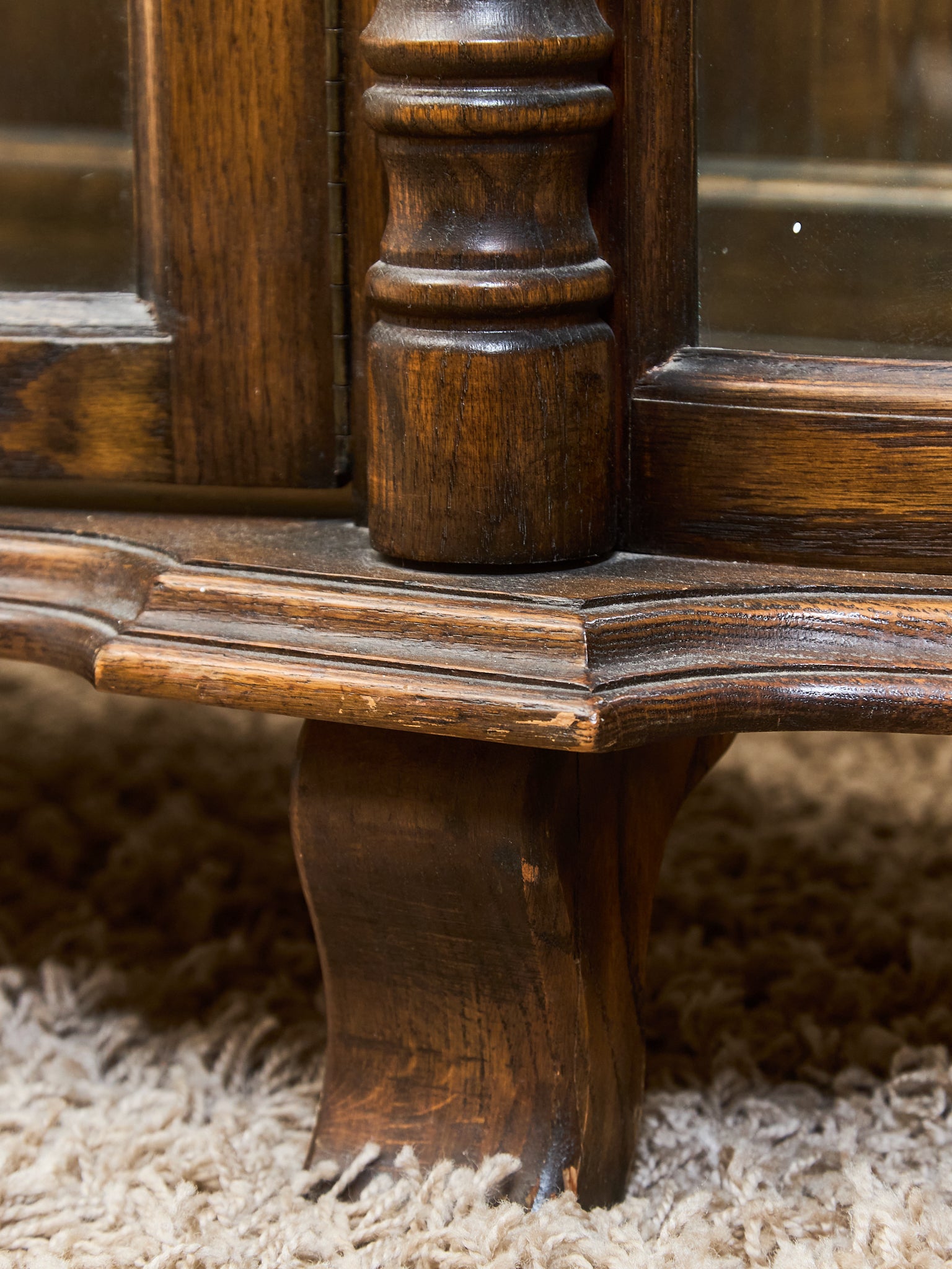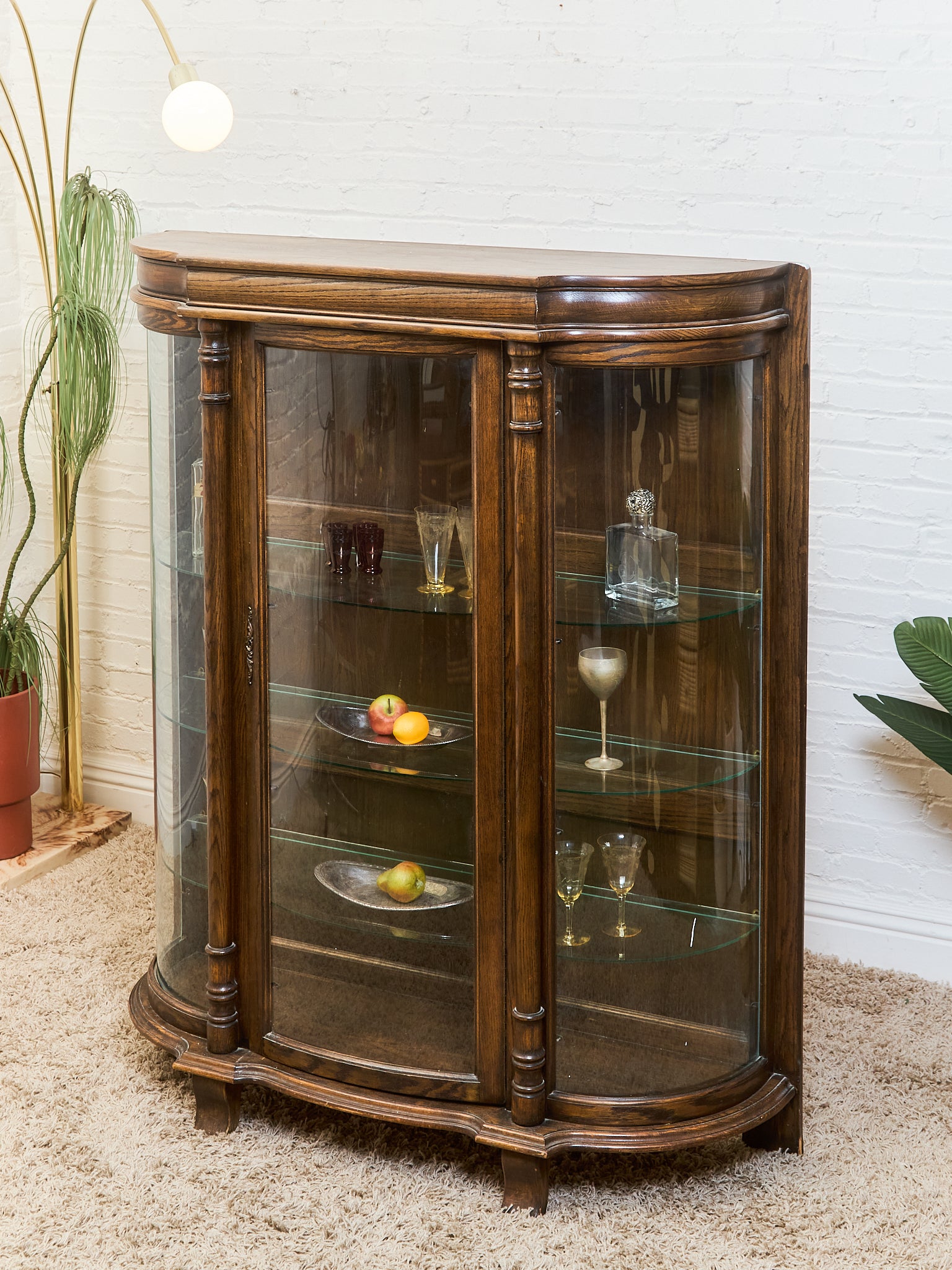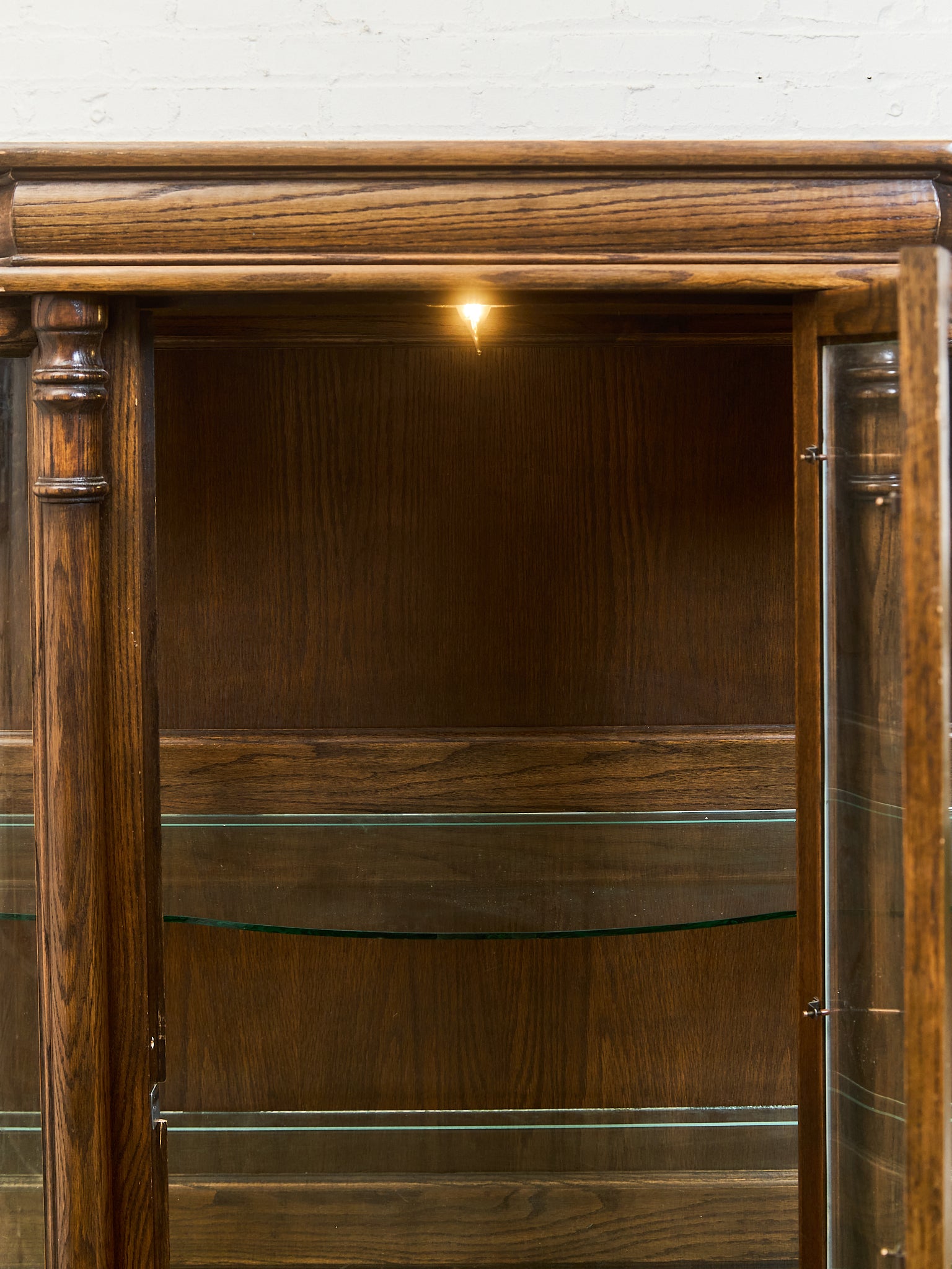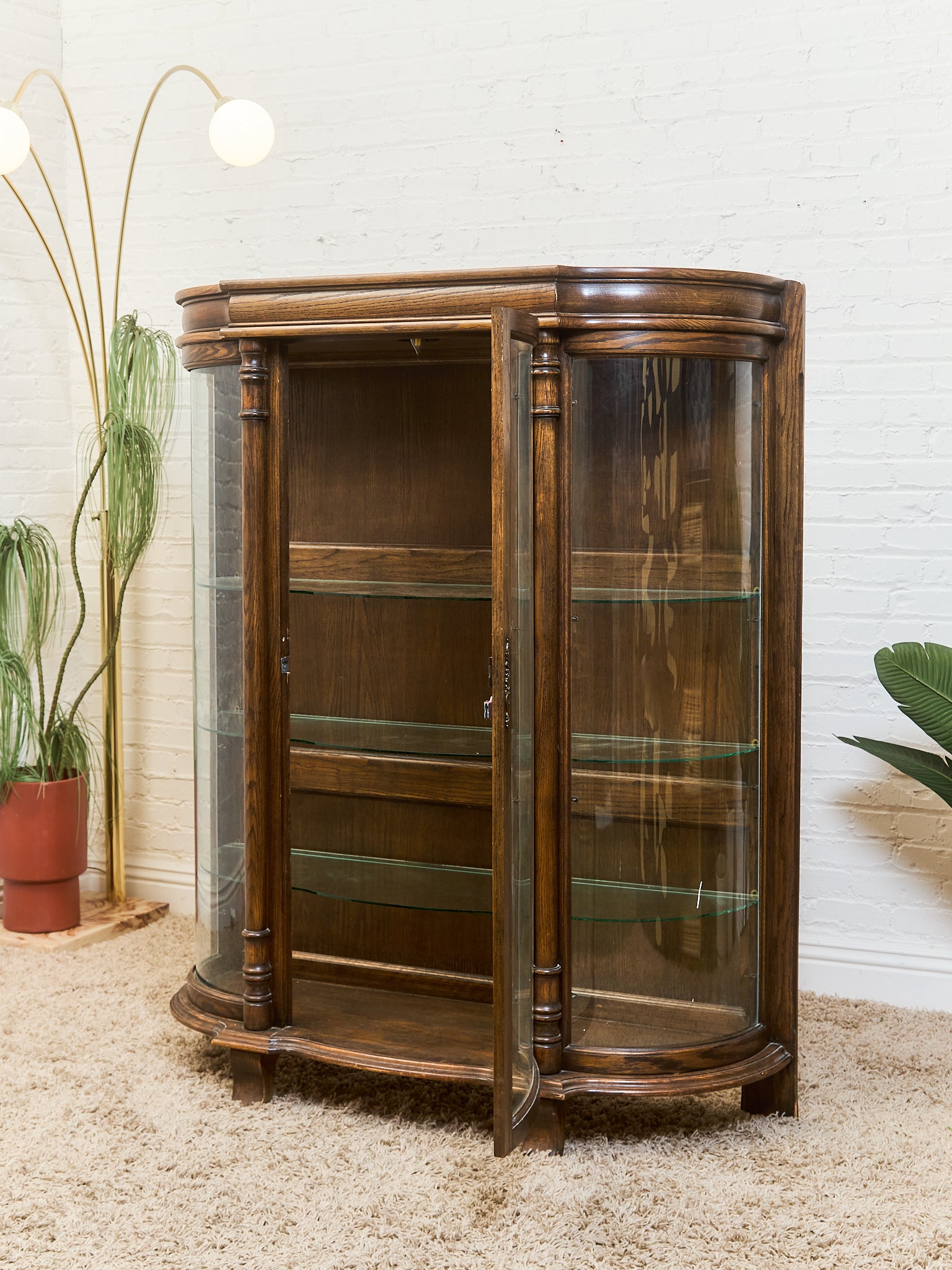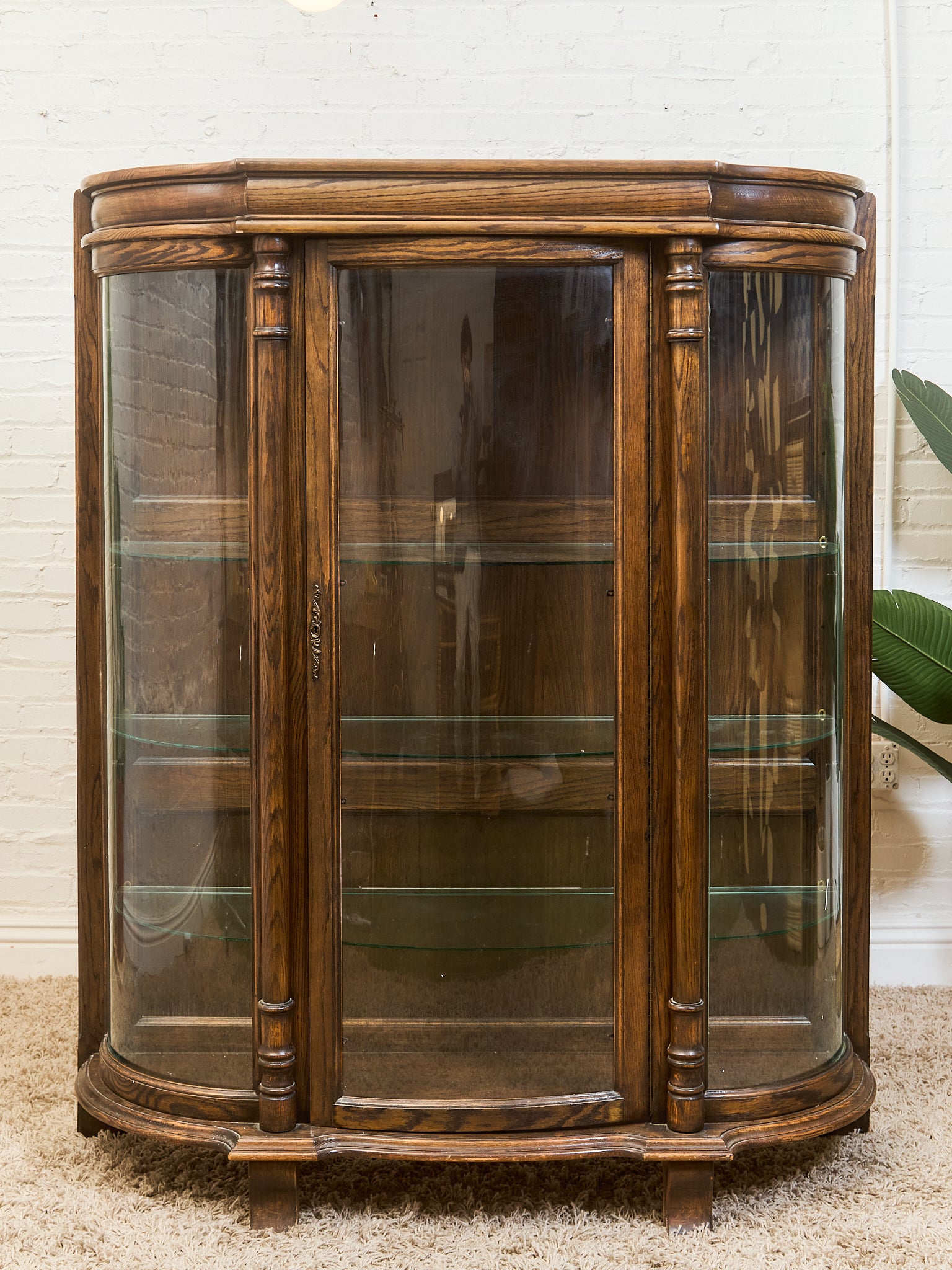 Antique Circa 1900 Bow Front Quarter Sawn Oak China Cabinet Hutch Display