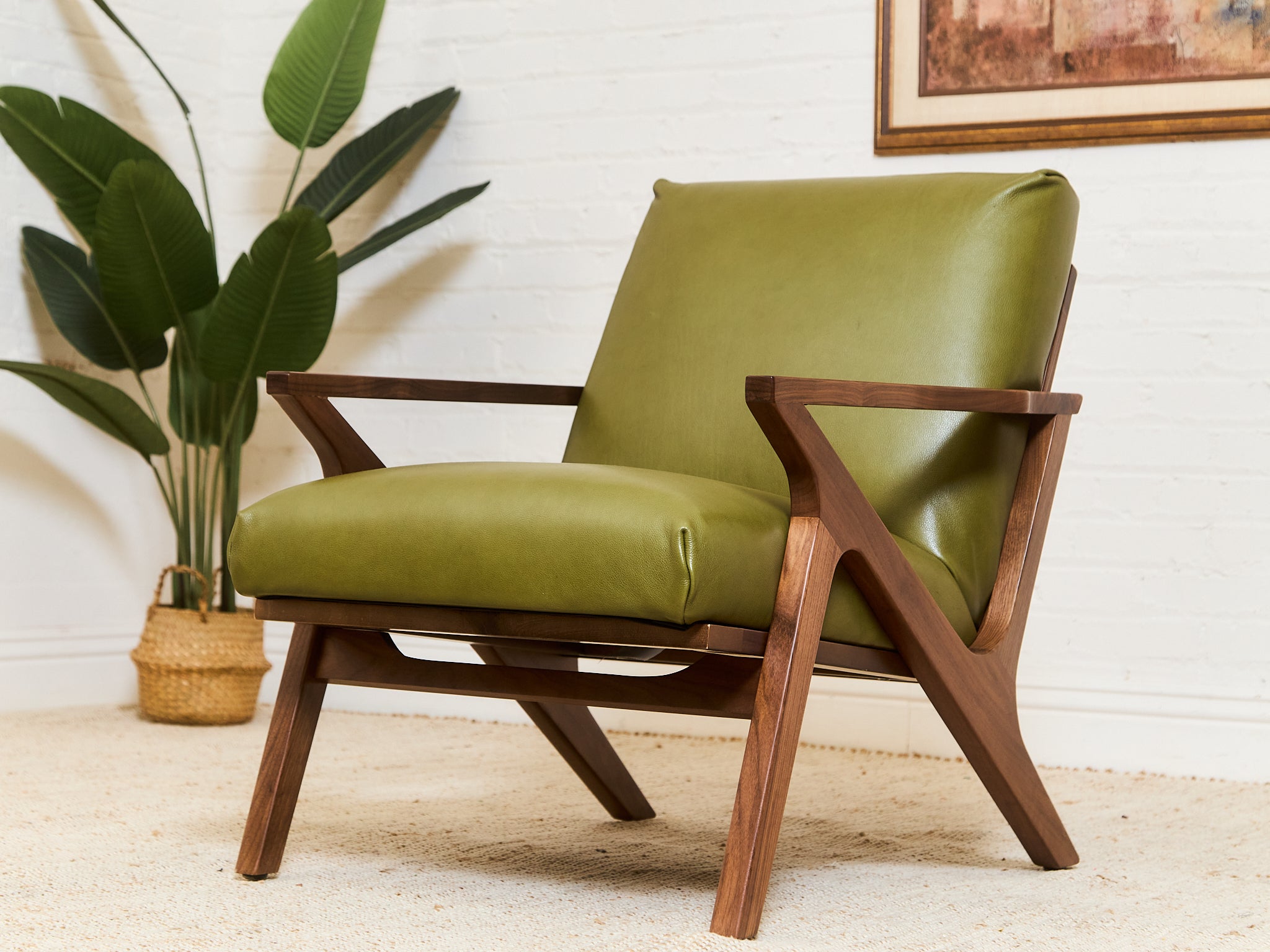 Zayden Lounge Chair in Green Leather