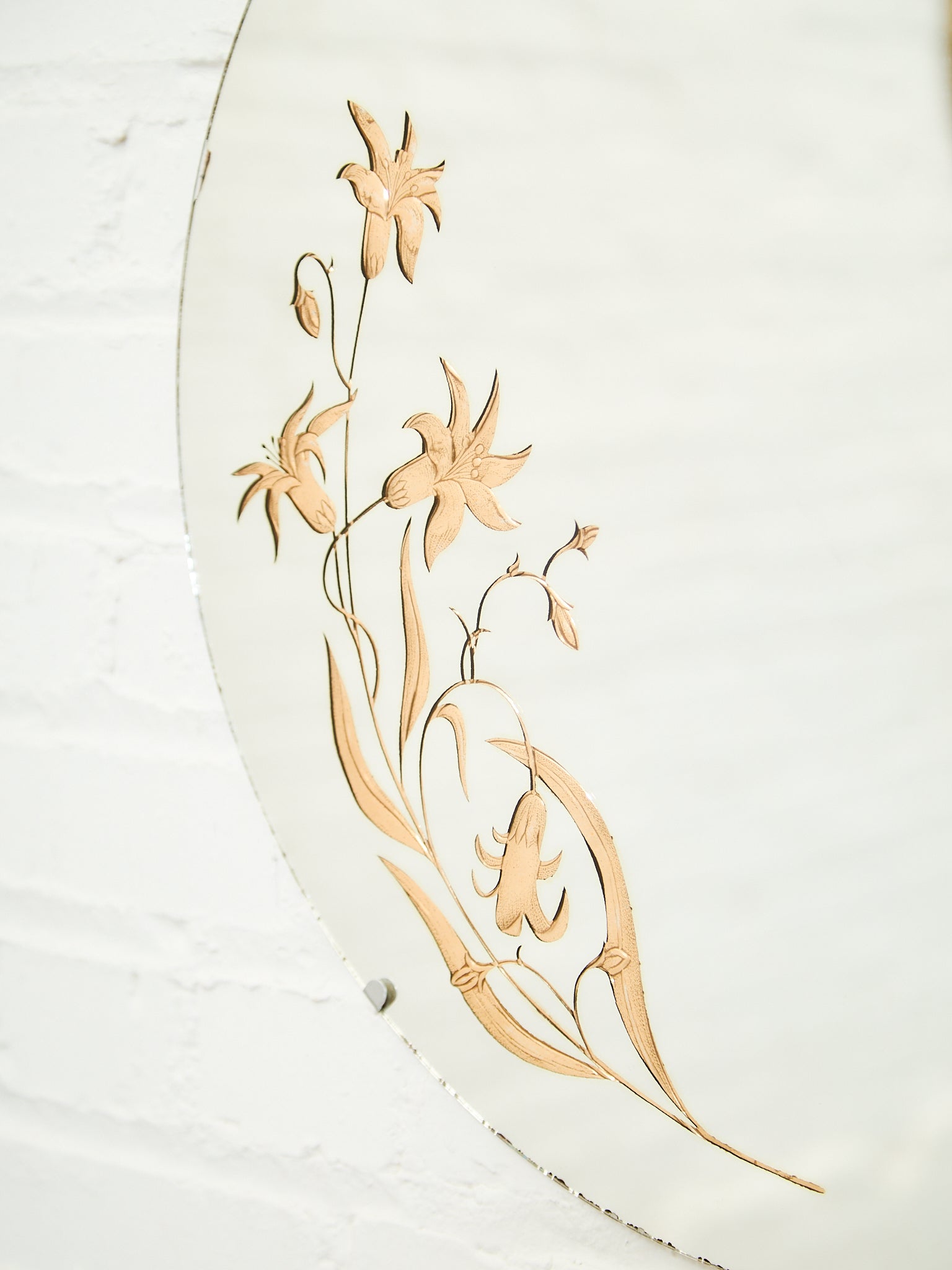 • Load image into Gallery viewer, Deco Etched Copper Beveled Mirror
