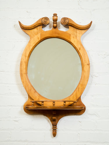Circa 1940 Edwardian Style Carved Maple Round Hall Mirror