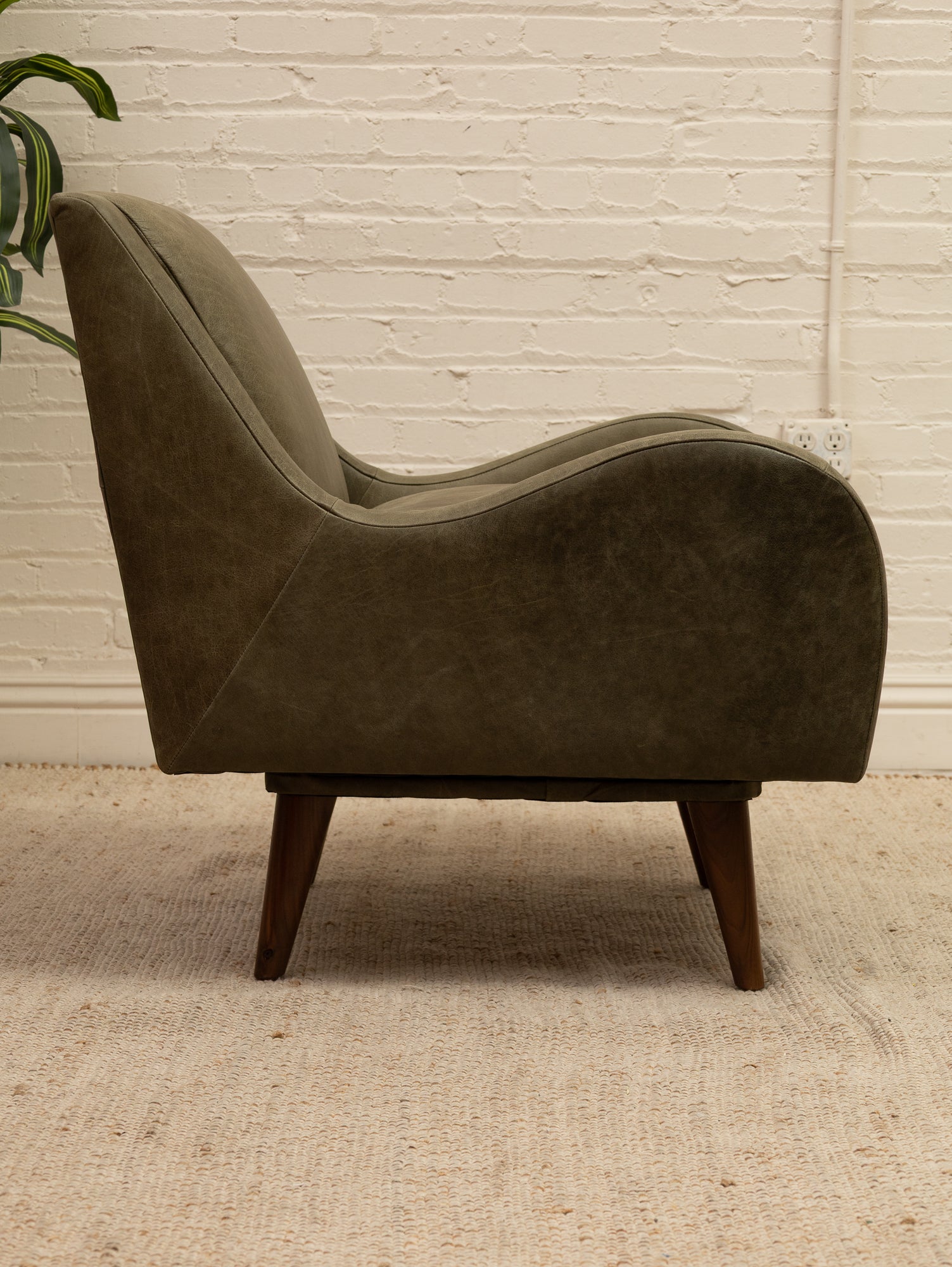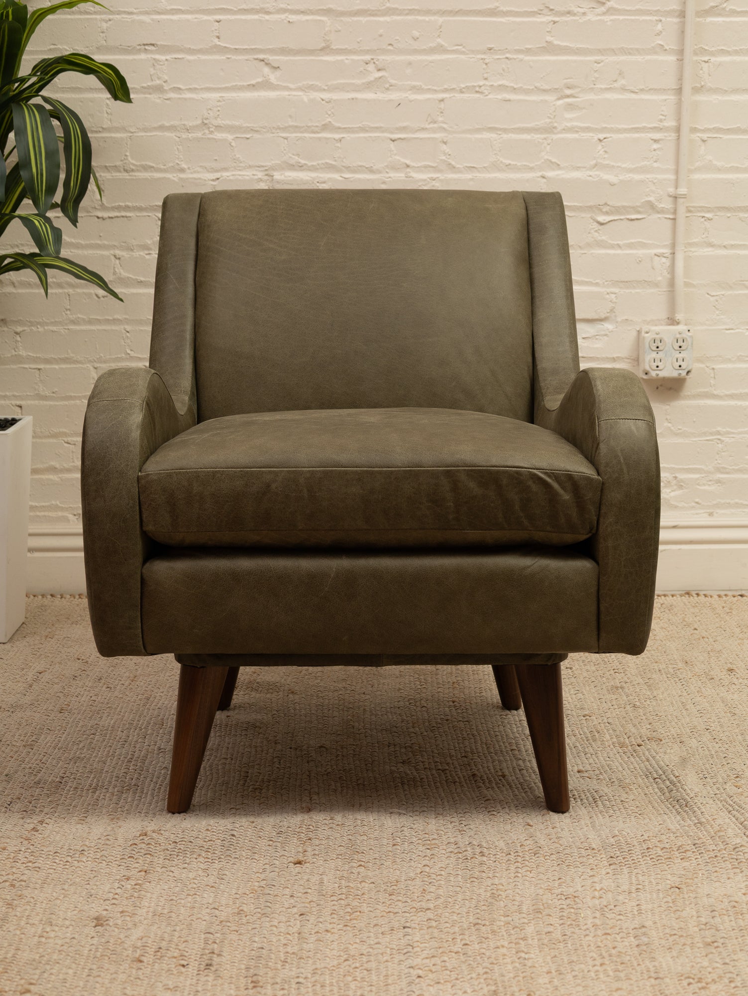 Wellington Leather Armchair in Olive