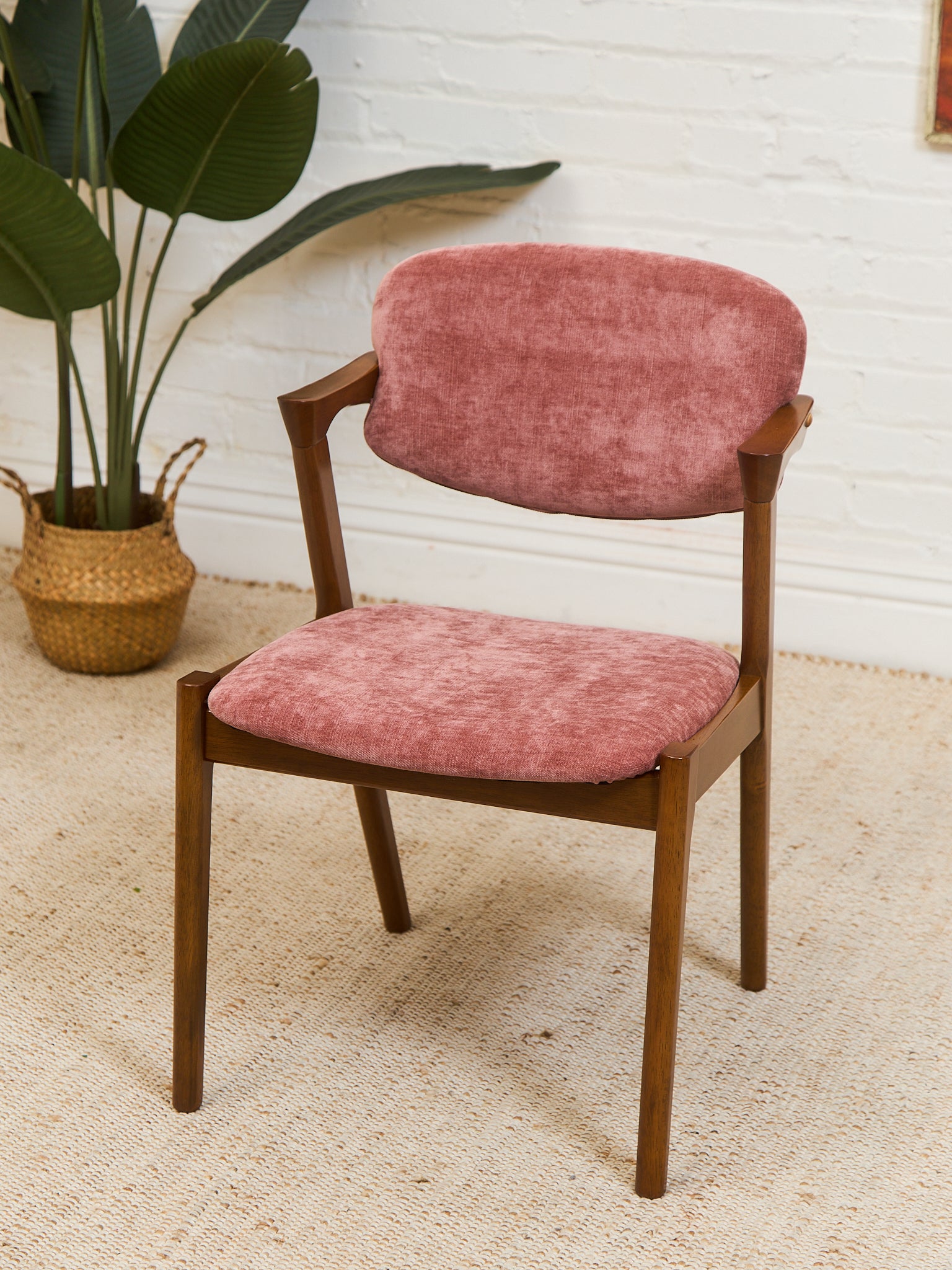 With its modern profile, natural wood legs, and stylish frame, this dining chair is sure to be an eye-catching piece for any style of interior looking to add modern flair. Use the Accent Chair in as a comfy dining chair or an eye-catching accent chair.